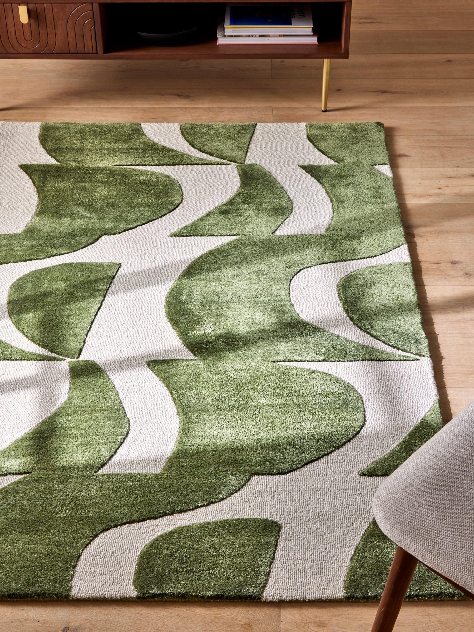 A retro-inspired option, we love the broken wave design of the Mellea rug. Crafted from a wool blend for warmth with nylon for a wonderfully sheen finish, this high density floor covering has a wonderful lustre and plush feeling underfoot.