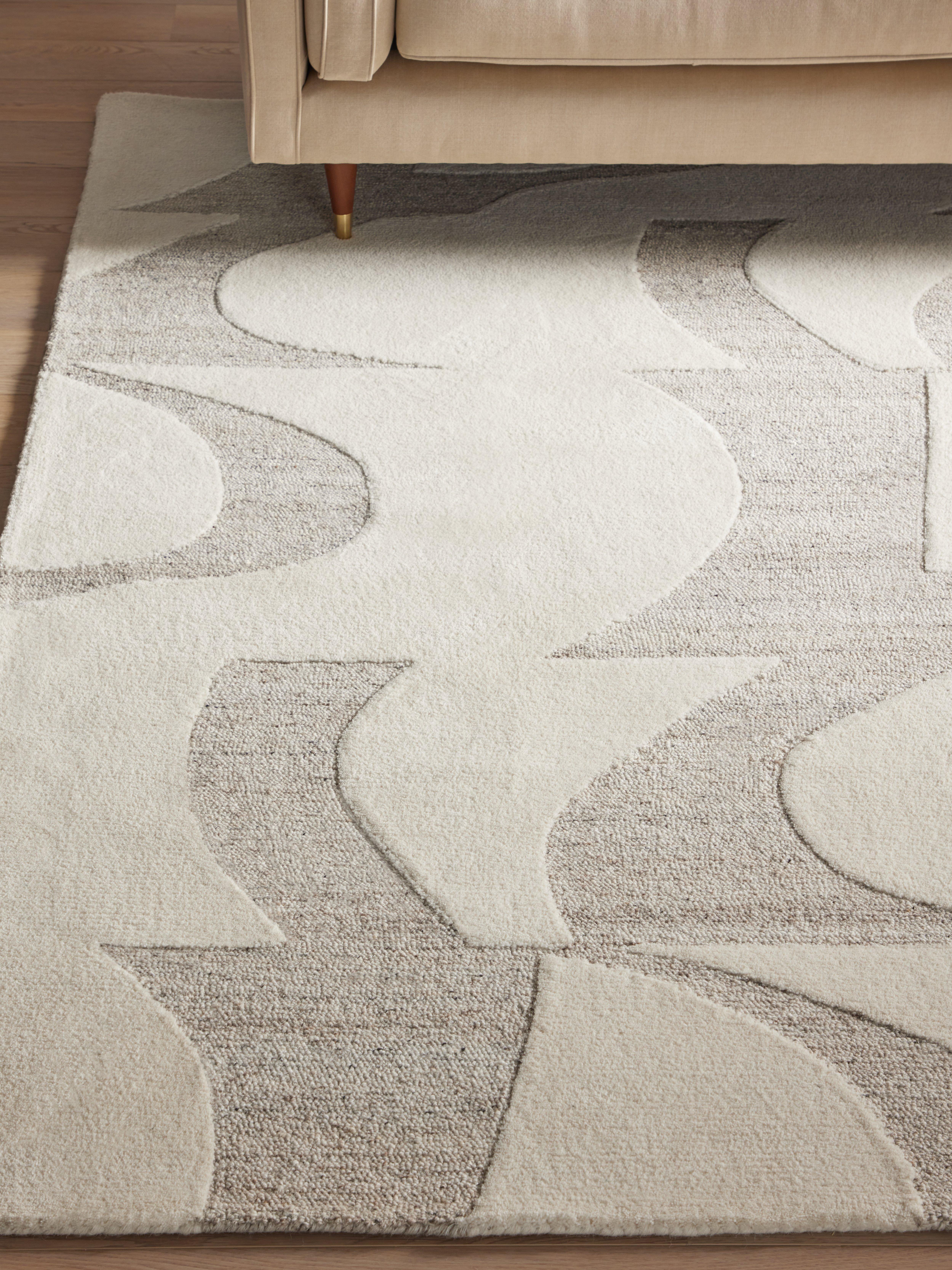 A retro-inspired option, we love the broken wave design of the Mellea rug. Crafted from a wool blend for warmth with nylon for a wonderfully sheen finish, this high density floor covering has a wonderful lustre and plush feeling underfoot.