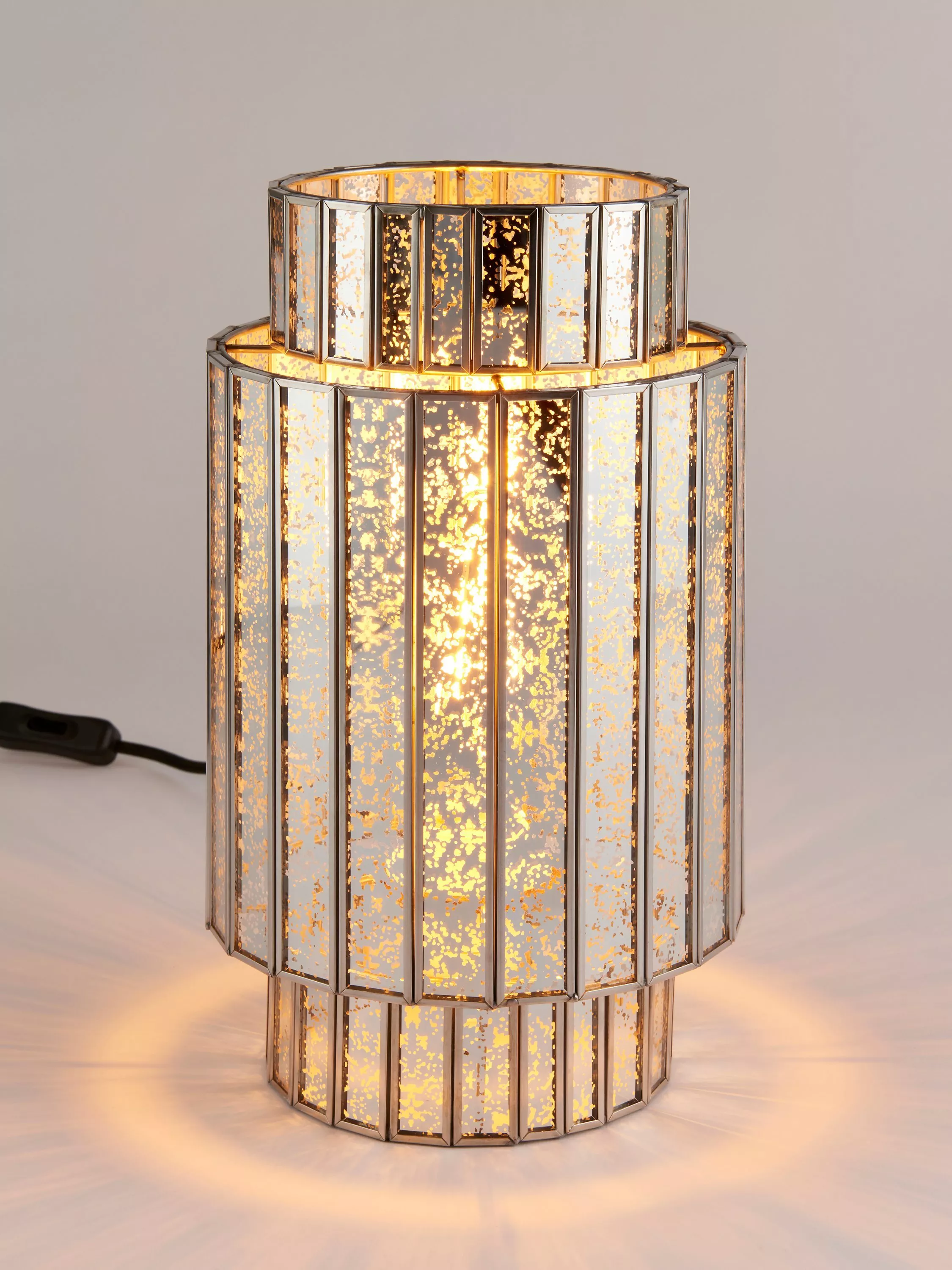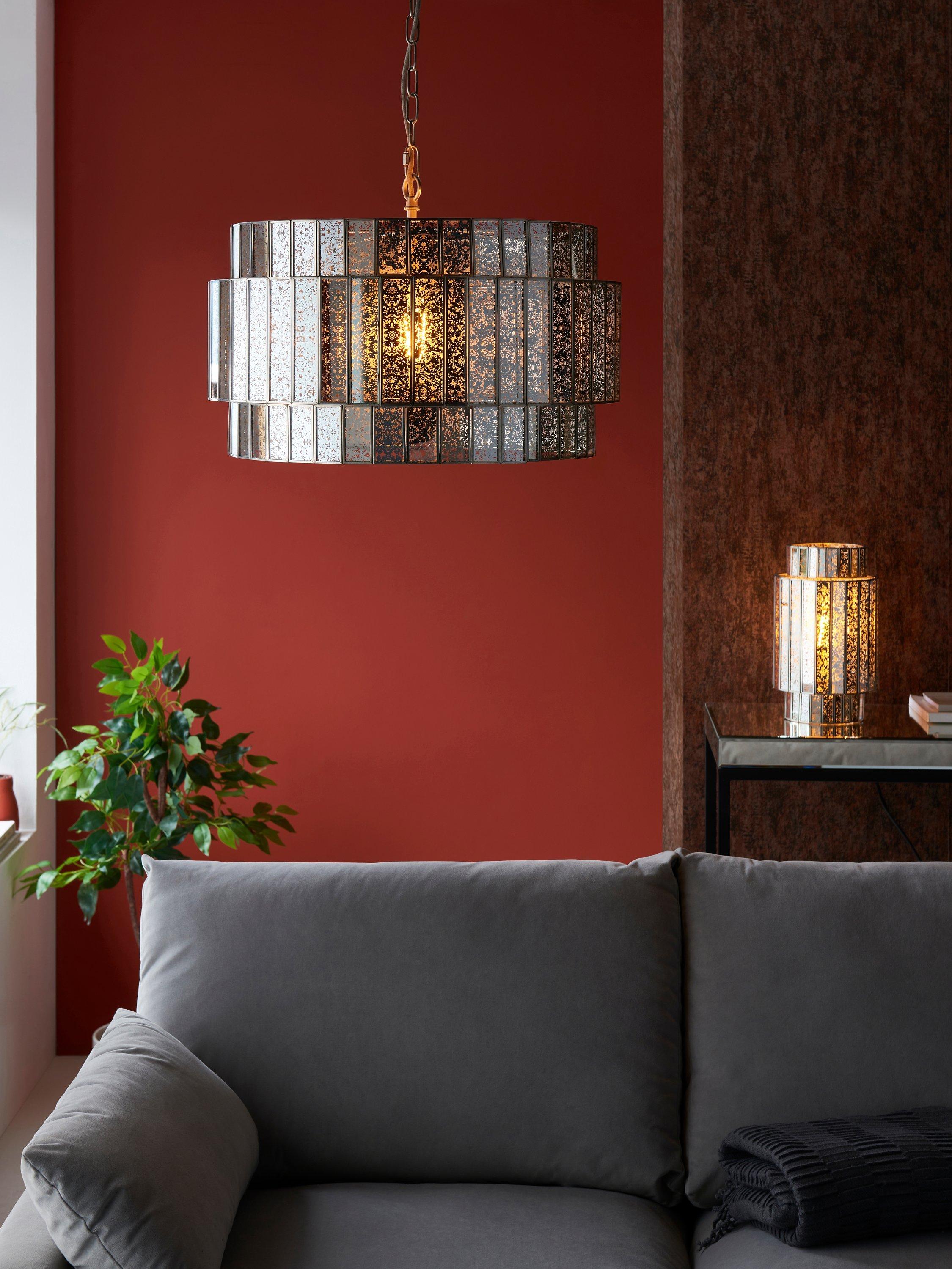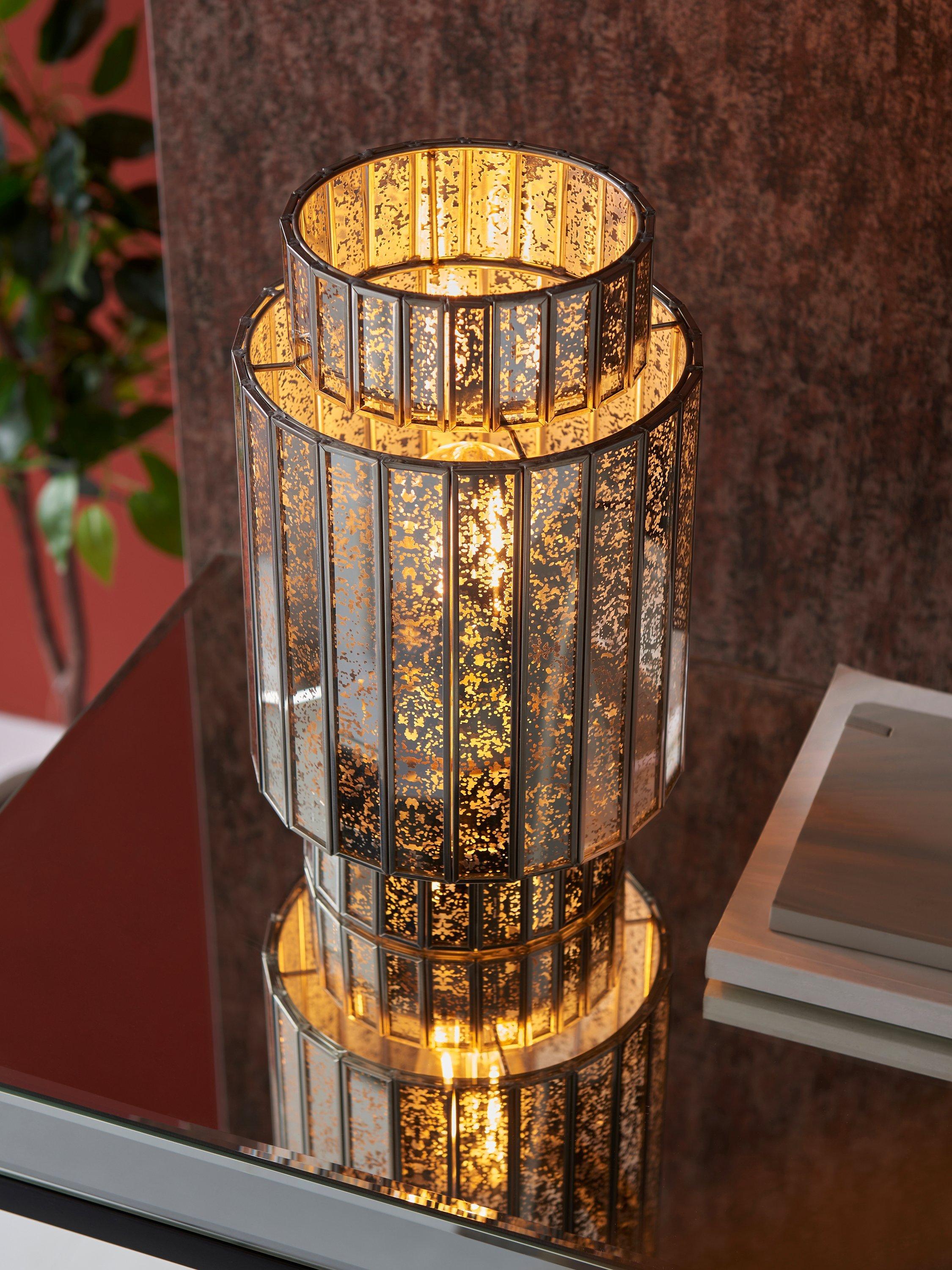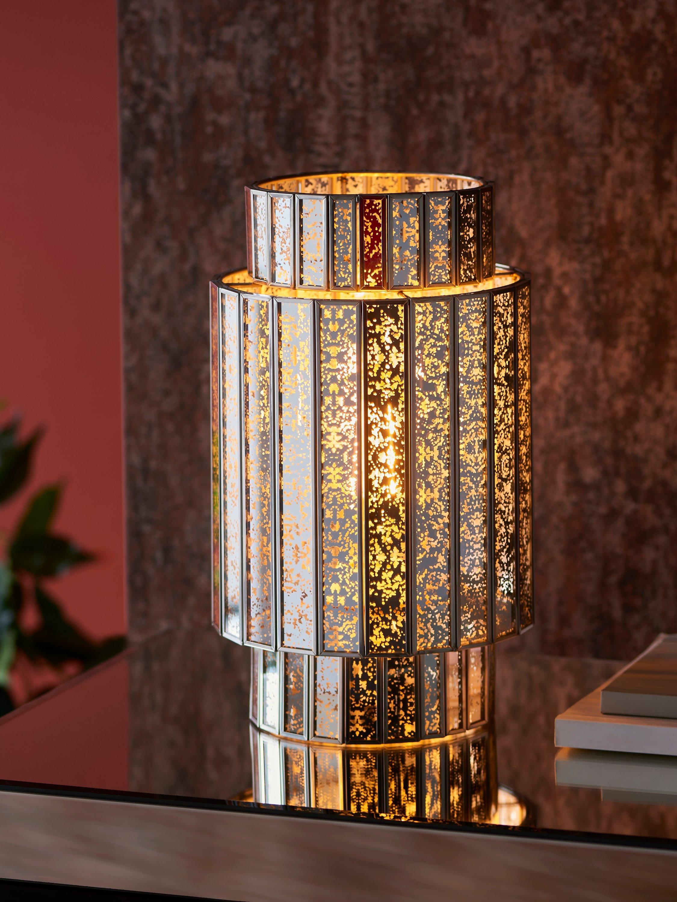 A symphony of light projects across the room with our Mercury Tune table lamp. The nickel-effect finish is mirrored in the lamp's glass panels neatly fitted into a sturdy frame. These faceted panels allow the light to cascade around your room, creating a striking centrepiece for both classic and contemporary interiors.