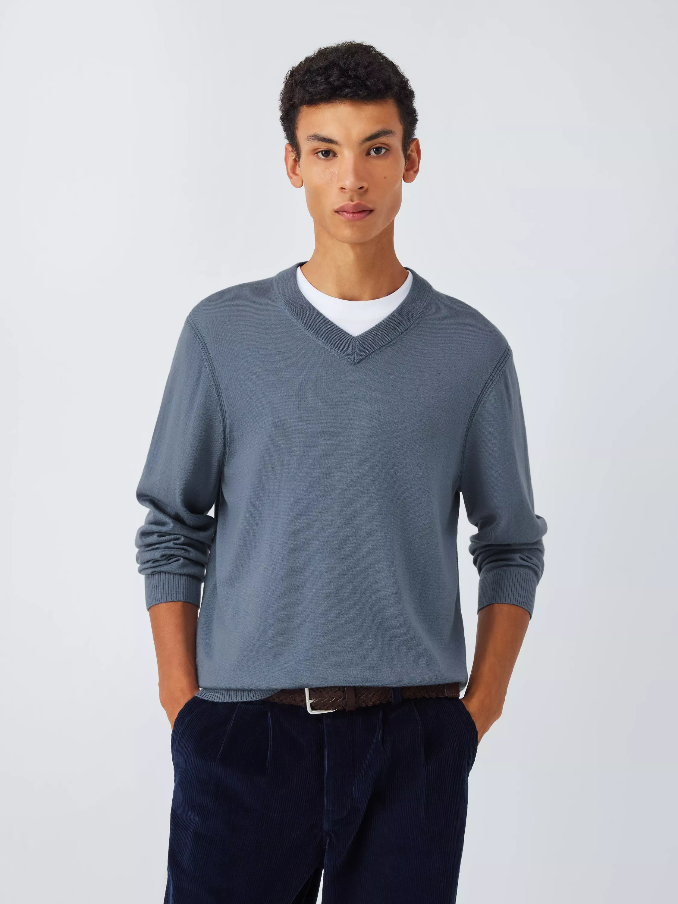 Our pure merino wool jumper has been updated with a slightly relaxed fit, making it a true wardrobe staple. Its natural temperature-regulating properties make it comfortable for all-day wear. The V-neckline sits perfectly over a collared shirt or a T-shirt, and its machine-washable fabric makes it ideal for practical, everyday use. Finished with a ribbed knit on the neckline, hem, and cuffs.