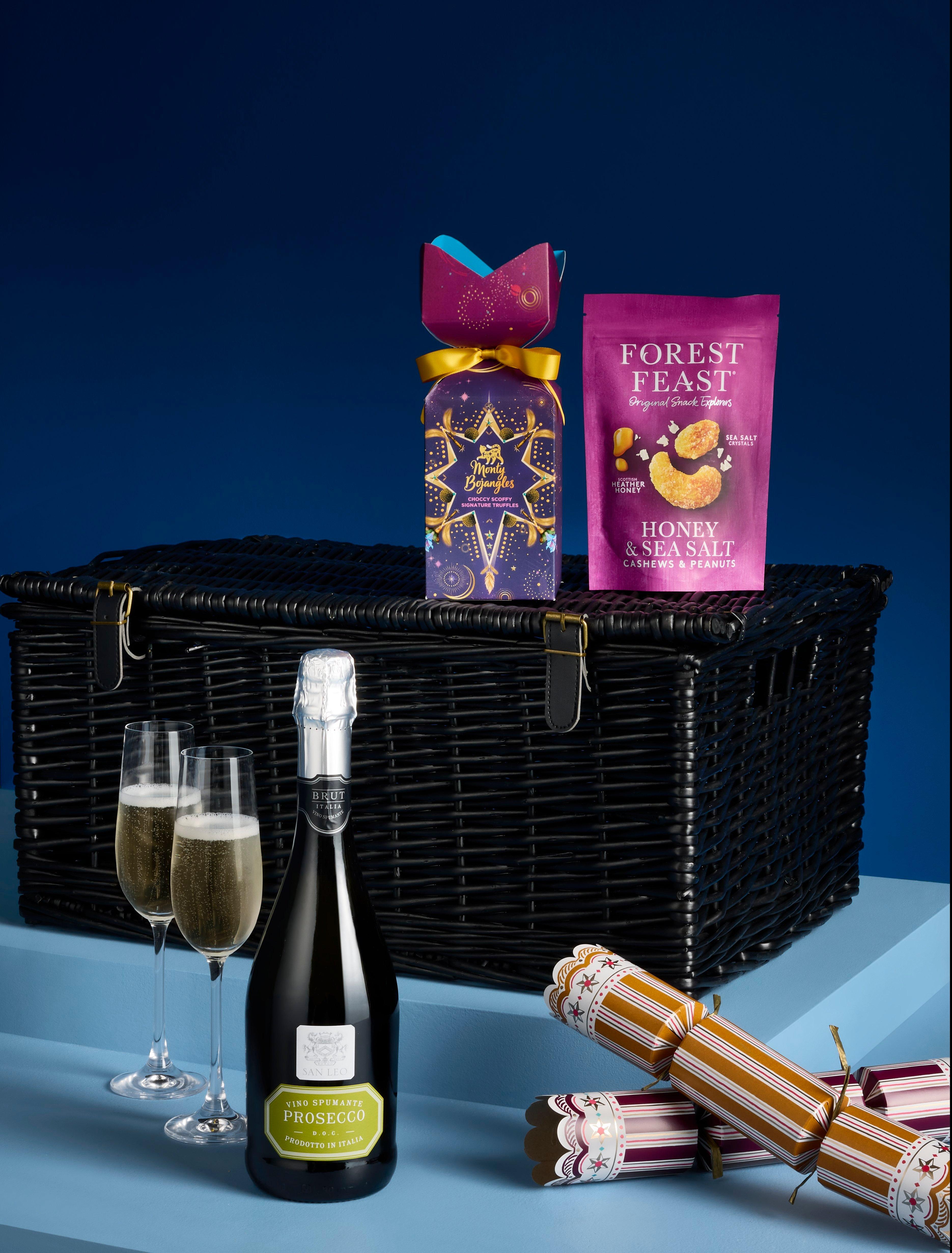 Make Christmas extra merry and bright with this indulgent Christmas hamper, packed full of delicious delights. Discover wine and fizz, along with Christmas Crackers and a collection of moreish sweet and savoury treats.
