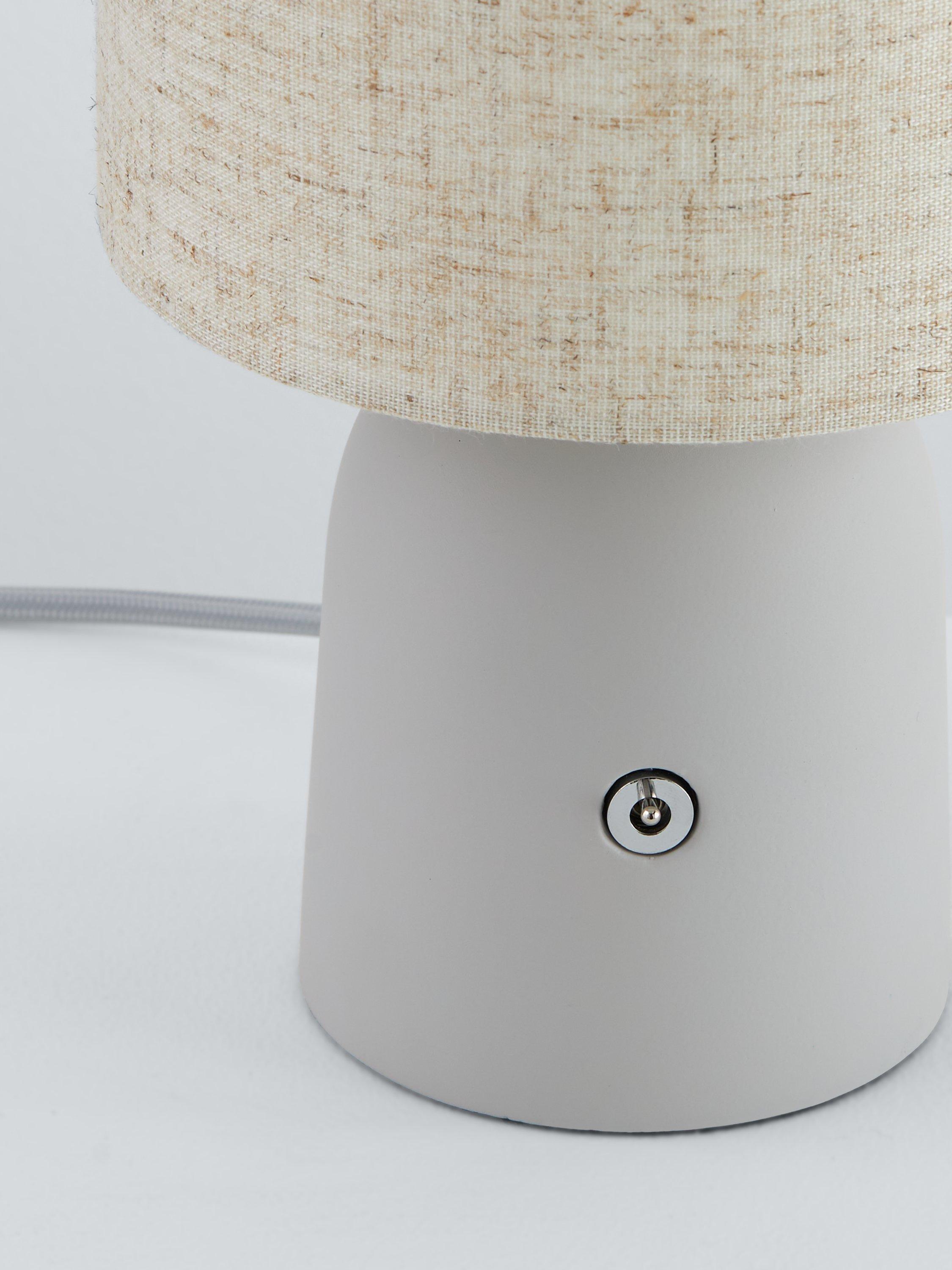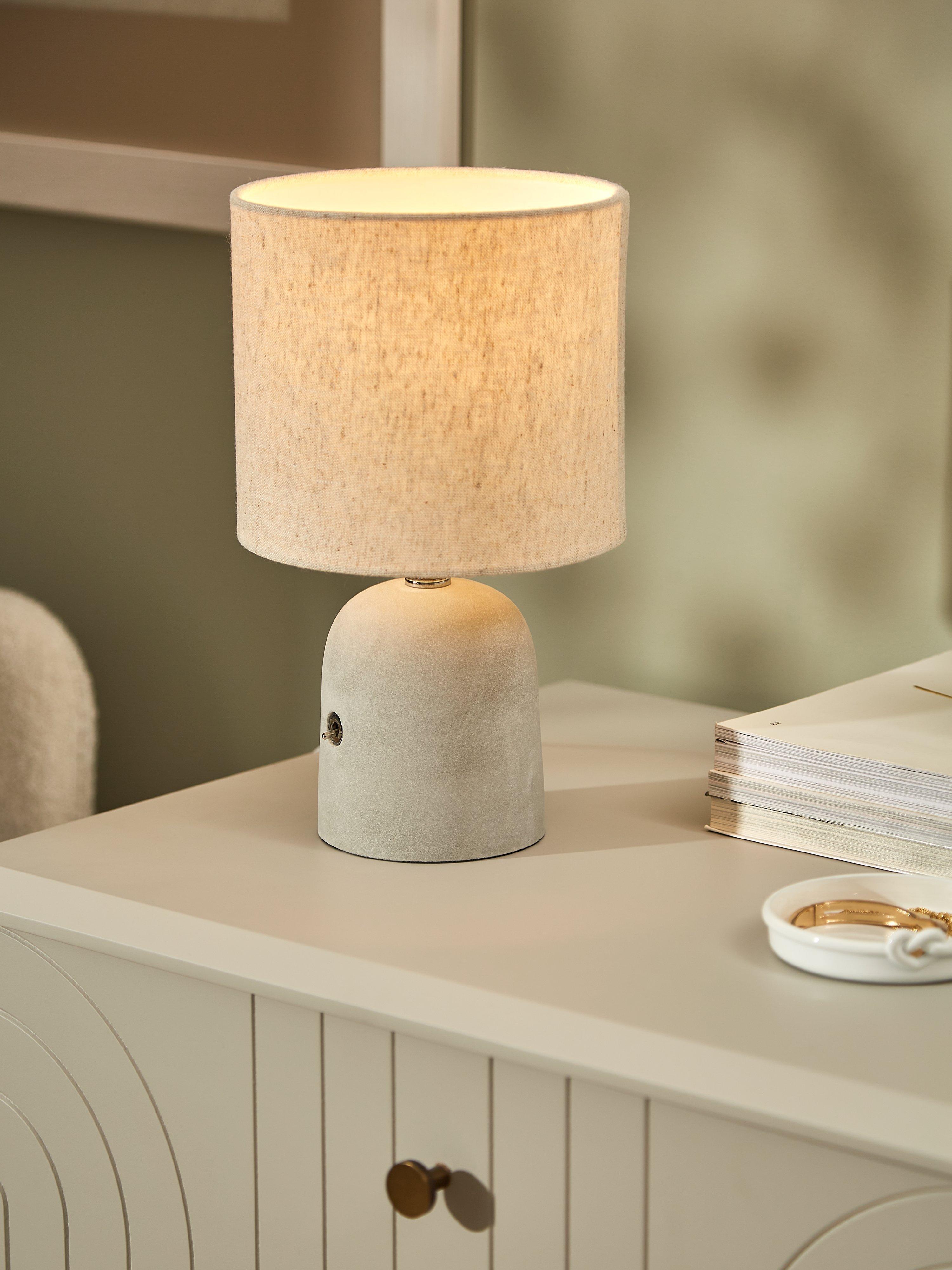 The dome-shaped base of this table lamp is made from concrete and finished without any mould or line marks which gives it a wonderfully sleek and smooth look. We've paired it with a linen shade to enhance a warm glow of light in your space and there's a simple toggle switch on the base for easy operation.