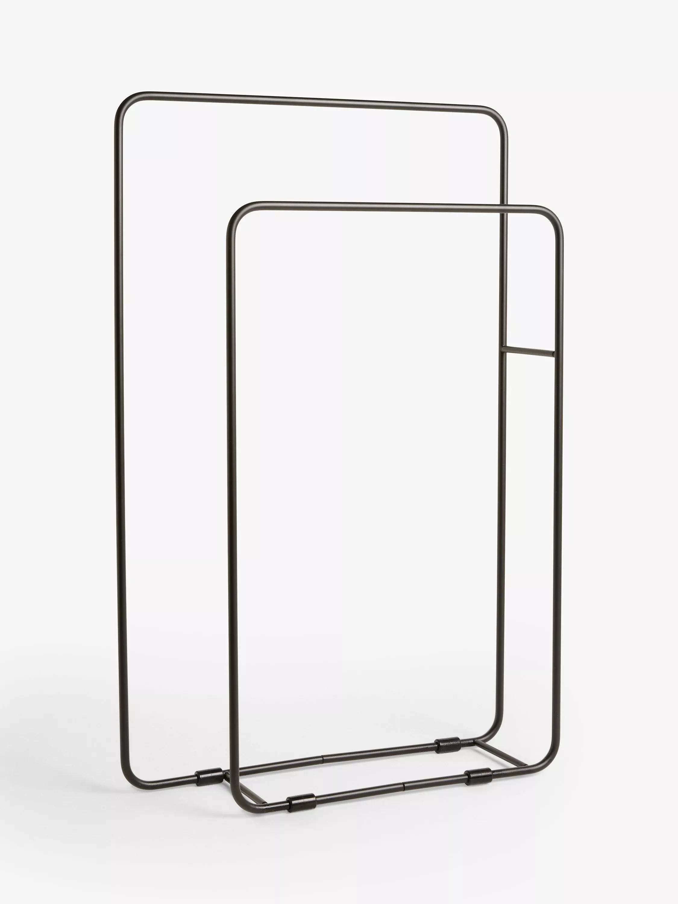Made from thin metal rods this modern-look, freestanding 2-tier towel rail comes fully assembled so it's ready to be placed in your bathroom as a new place to hang your towels.