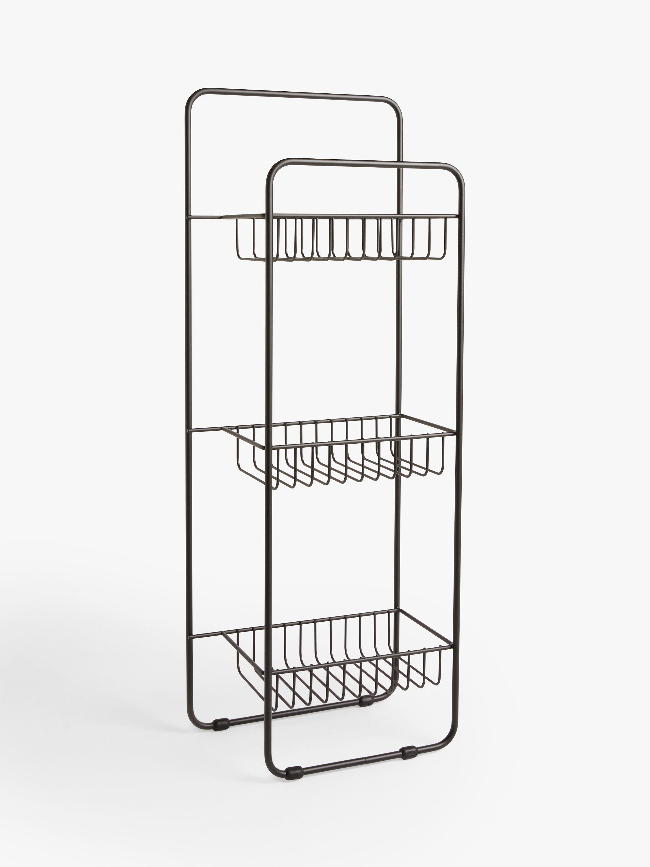 Made from thin metal rods this modern-look, freestanding 3-tier bathroom storage unit comes fully assembled.