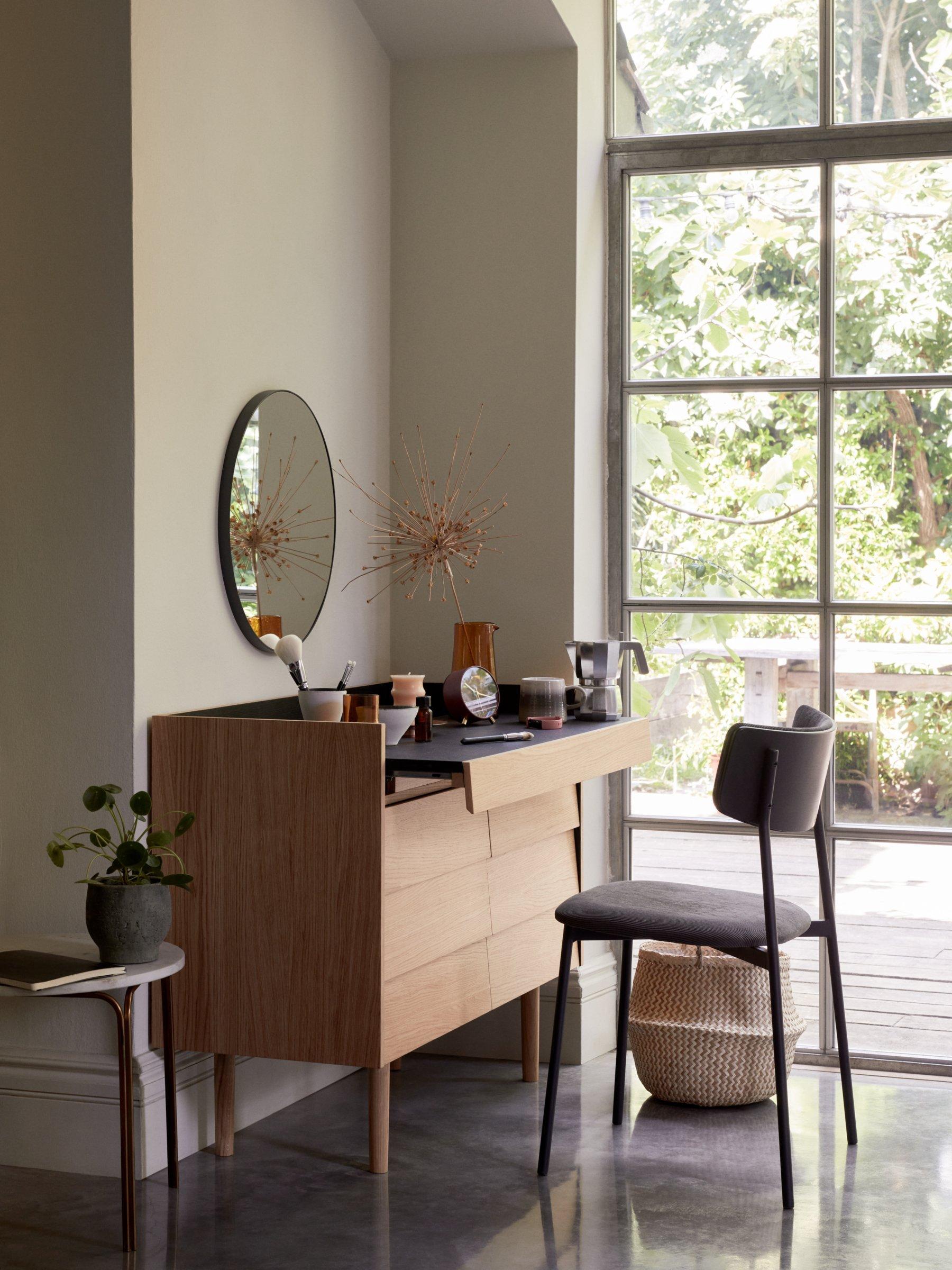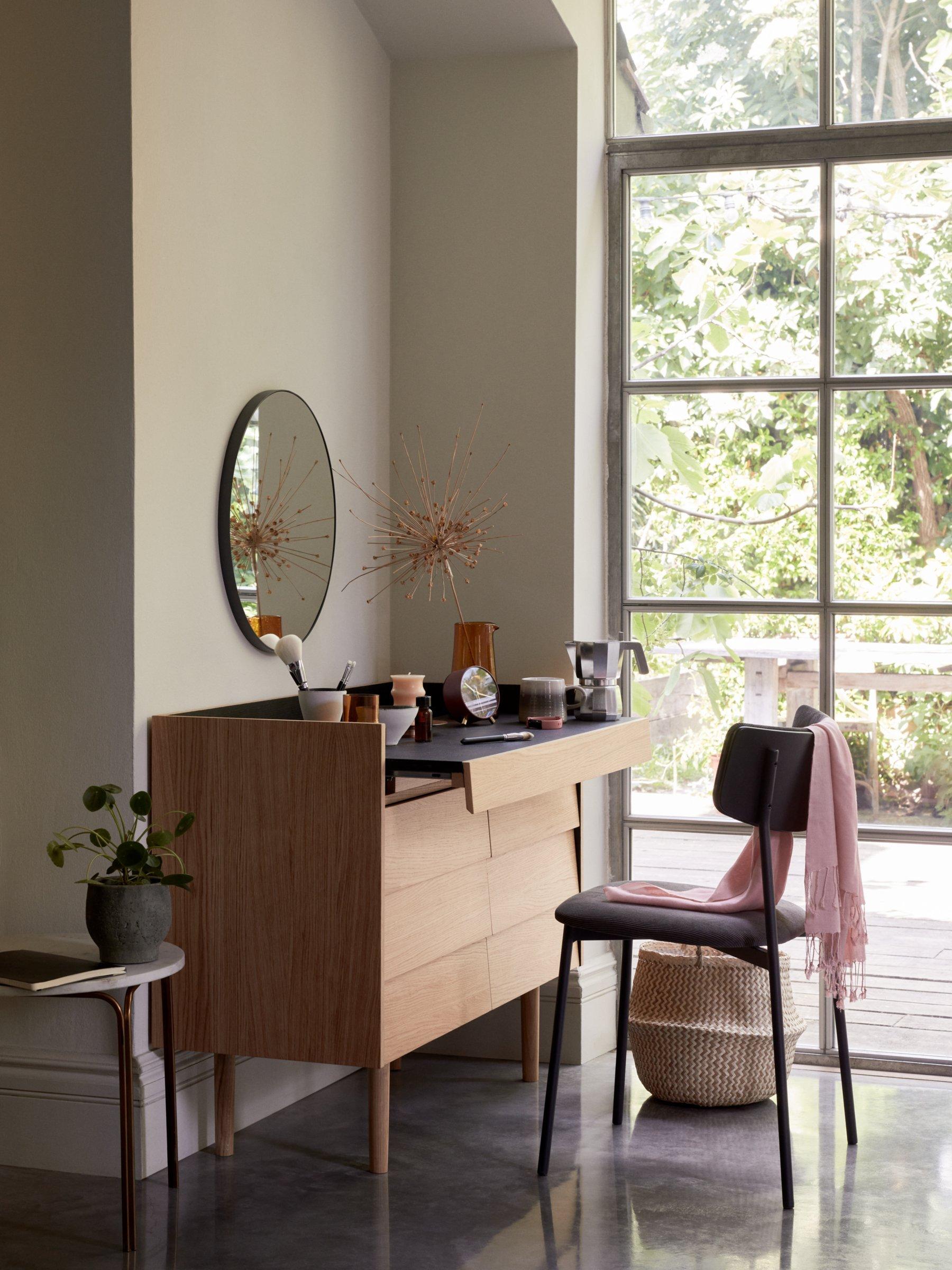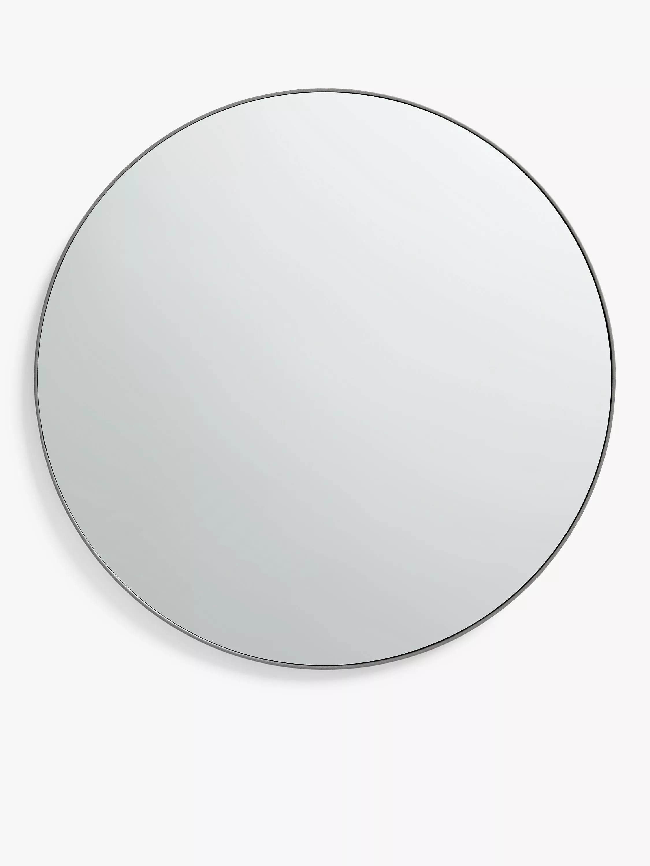 Framed by a metal rim, this small round Scandi mirror adds contemporary style to a room. Wall mount using the keyhole fitting on the reverse side.