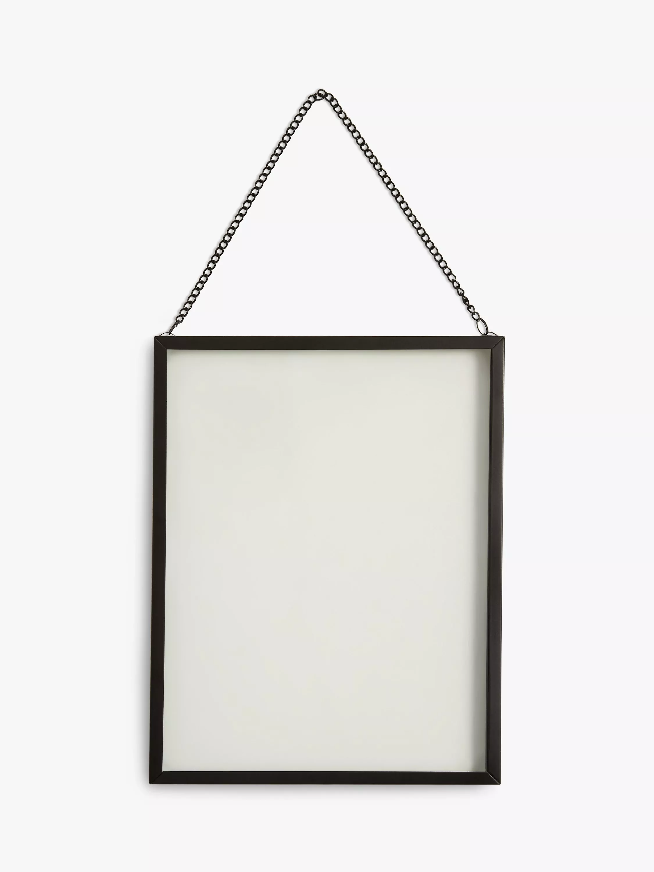 A contemporary and stylish frame that allows your photo or artwork to be held "floating" in between the two glass panes. The frame is suspended by a chain to create a standout piece of artwork to suit any home.