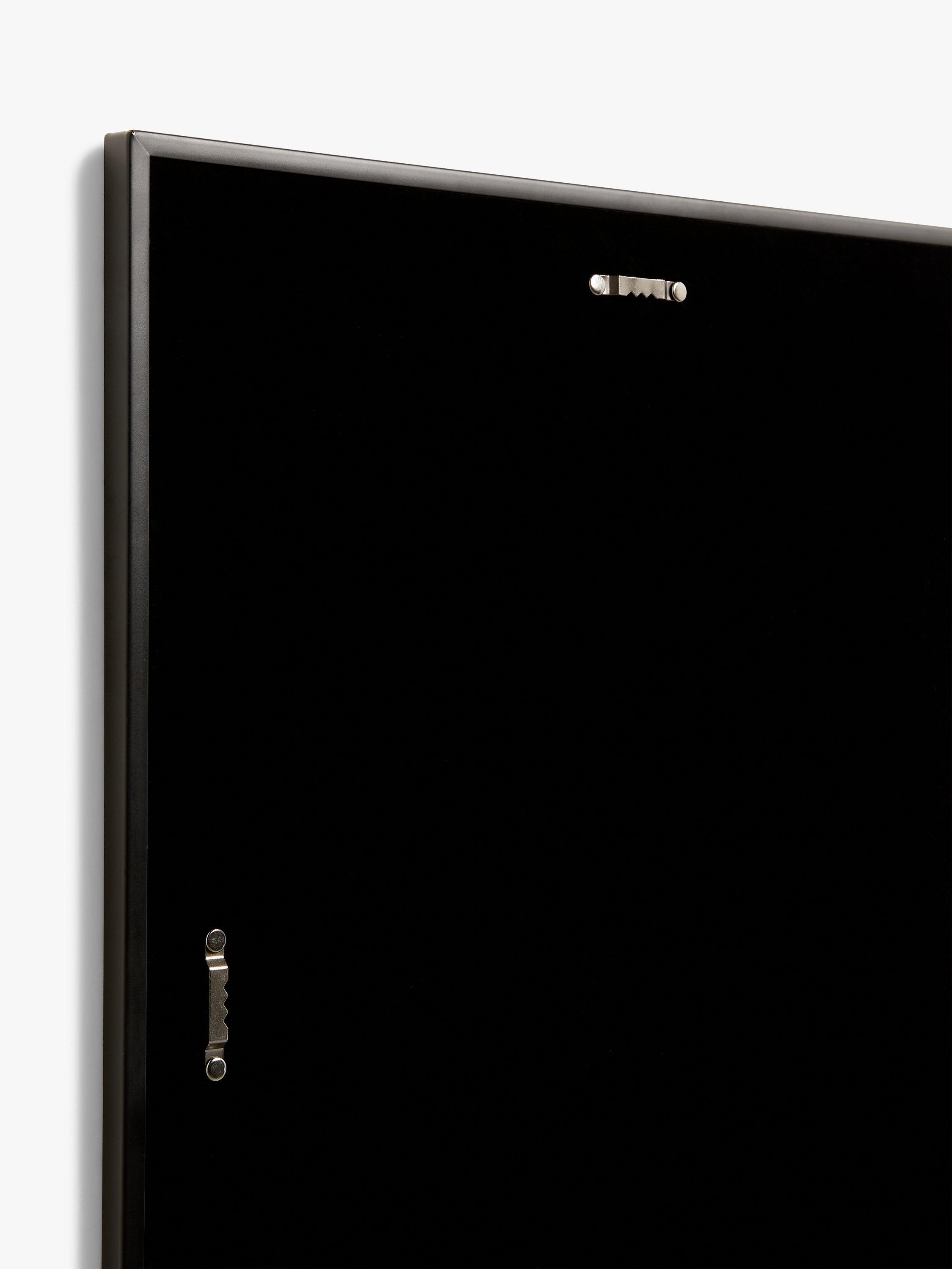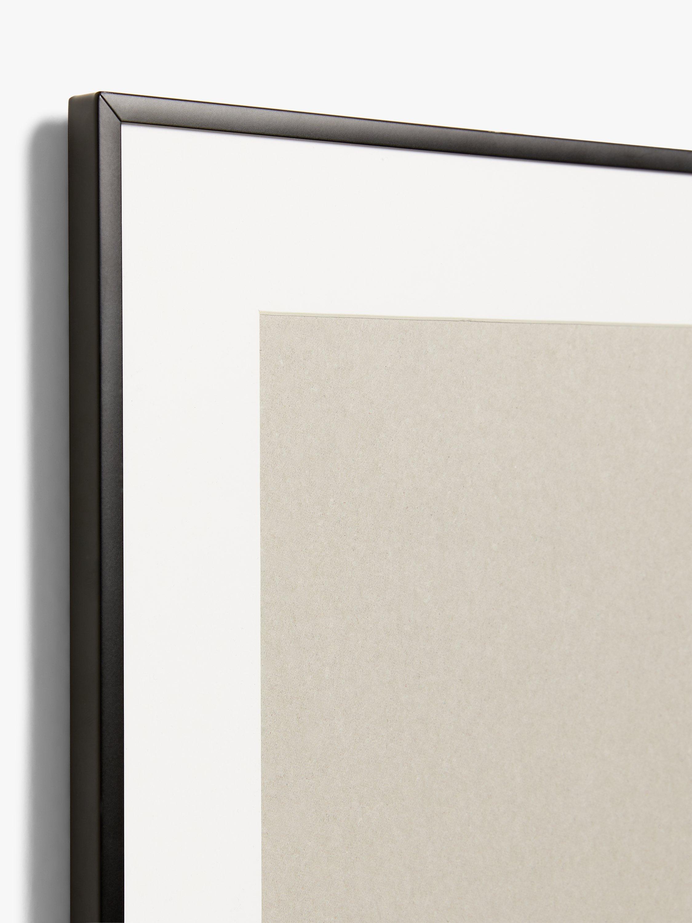 A contemporary slimline metal poster frame in a matt finish with a removable window mount included. The front is made of glass. The thoughtful design keeps the focus on the image. Wall mount, vertically or horizontally, using the fittings on the reverse side.