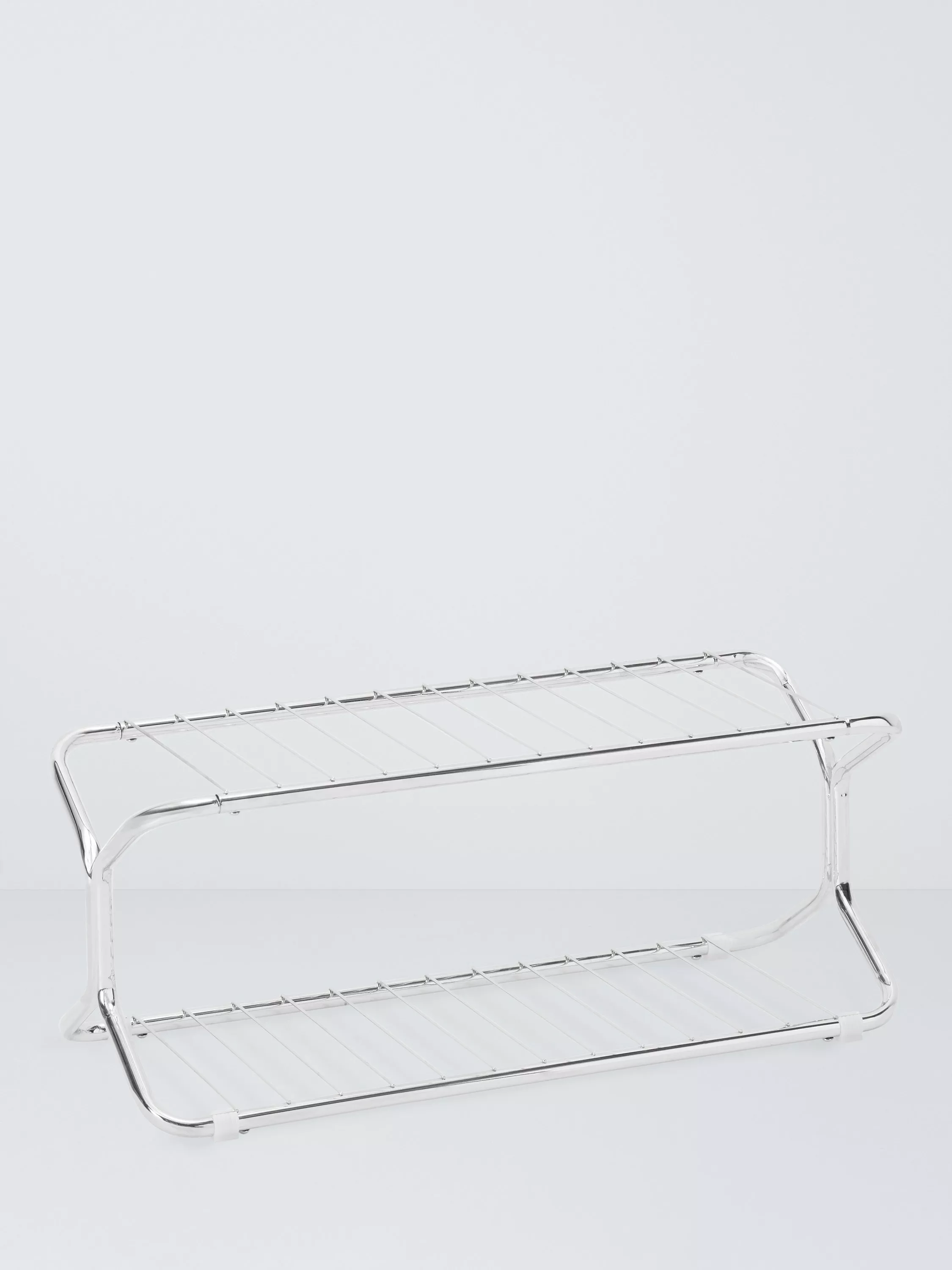 This chrome shoe rack makes a useful storage solution for your hallway while keeping everything light and bright.