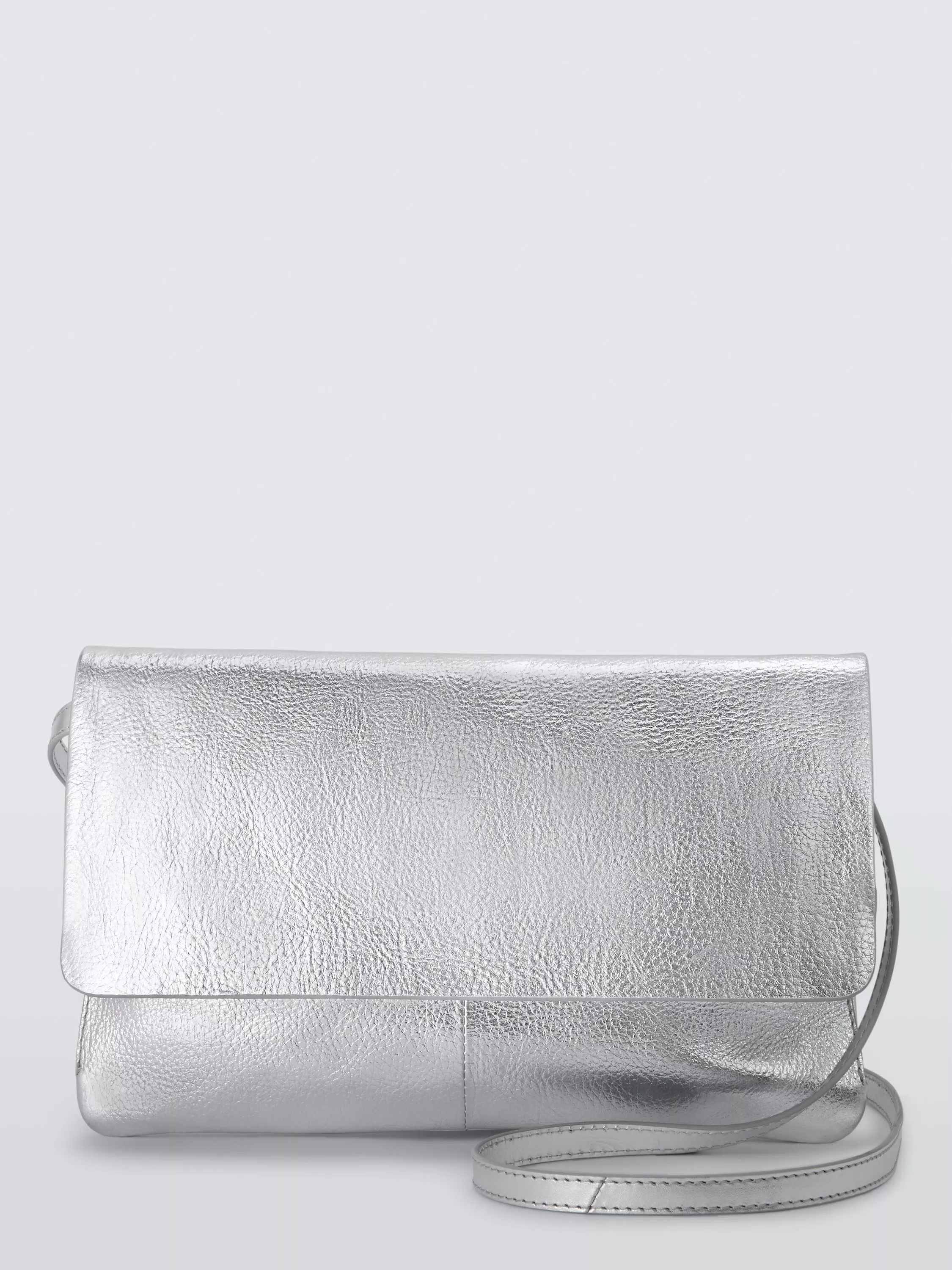 Cleverly crafted from smooth leather, this fold over clutch offers an adjustable strap for versatility and a secure magnetic closure. Designed for evenings when you want practicality without sacrificing personality in a metallic finish.