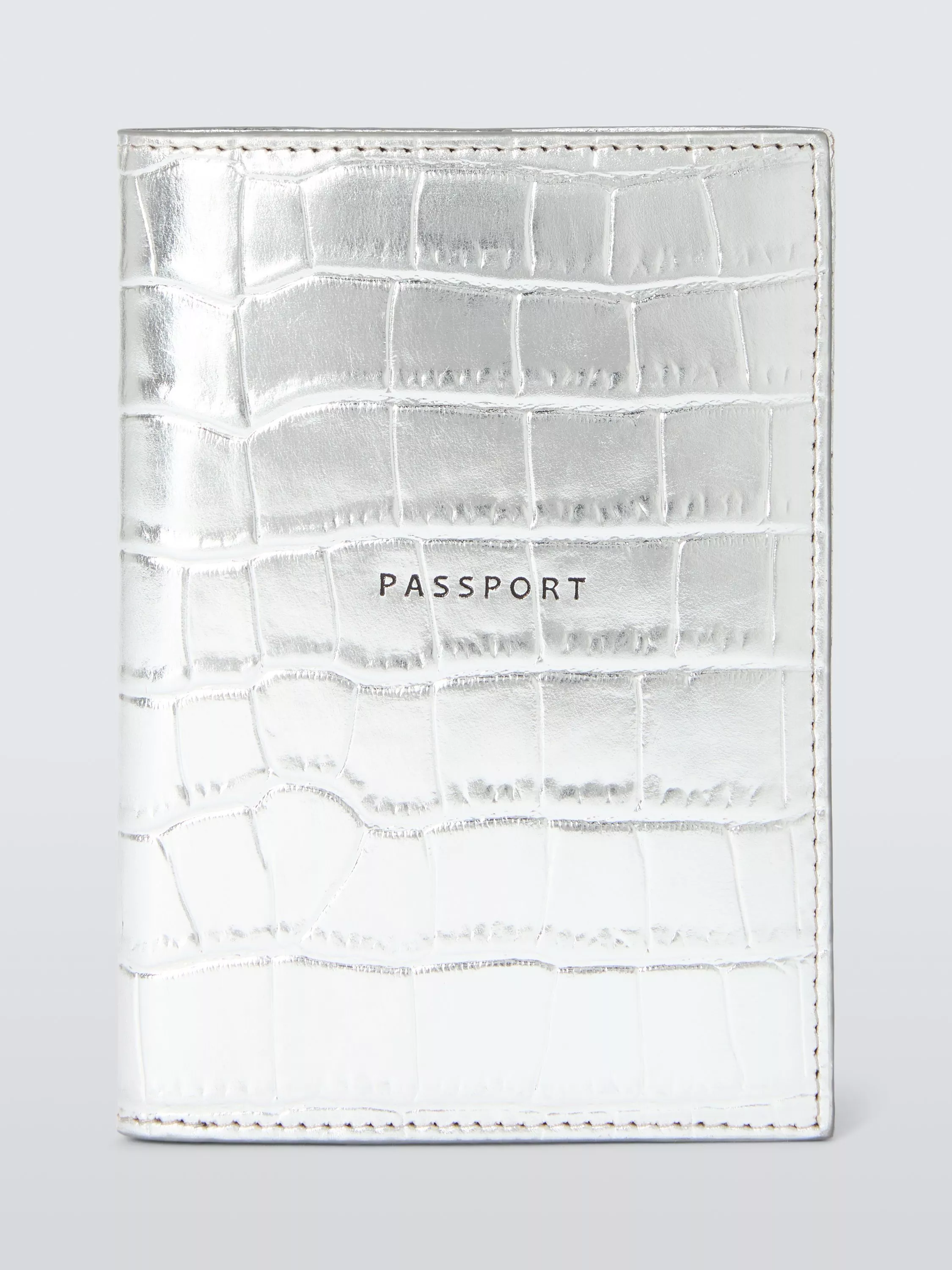 A passport holder, made from croc-effect metallic leather. Designed to fit standard-sized passports, it features three card slots, meaning you can keep not only your passport, but your travel cards and essentials all in one place.