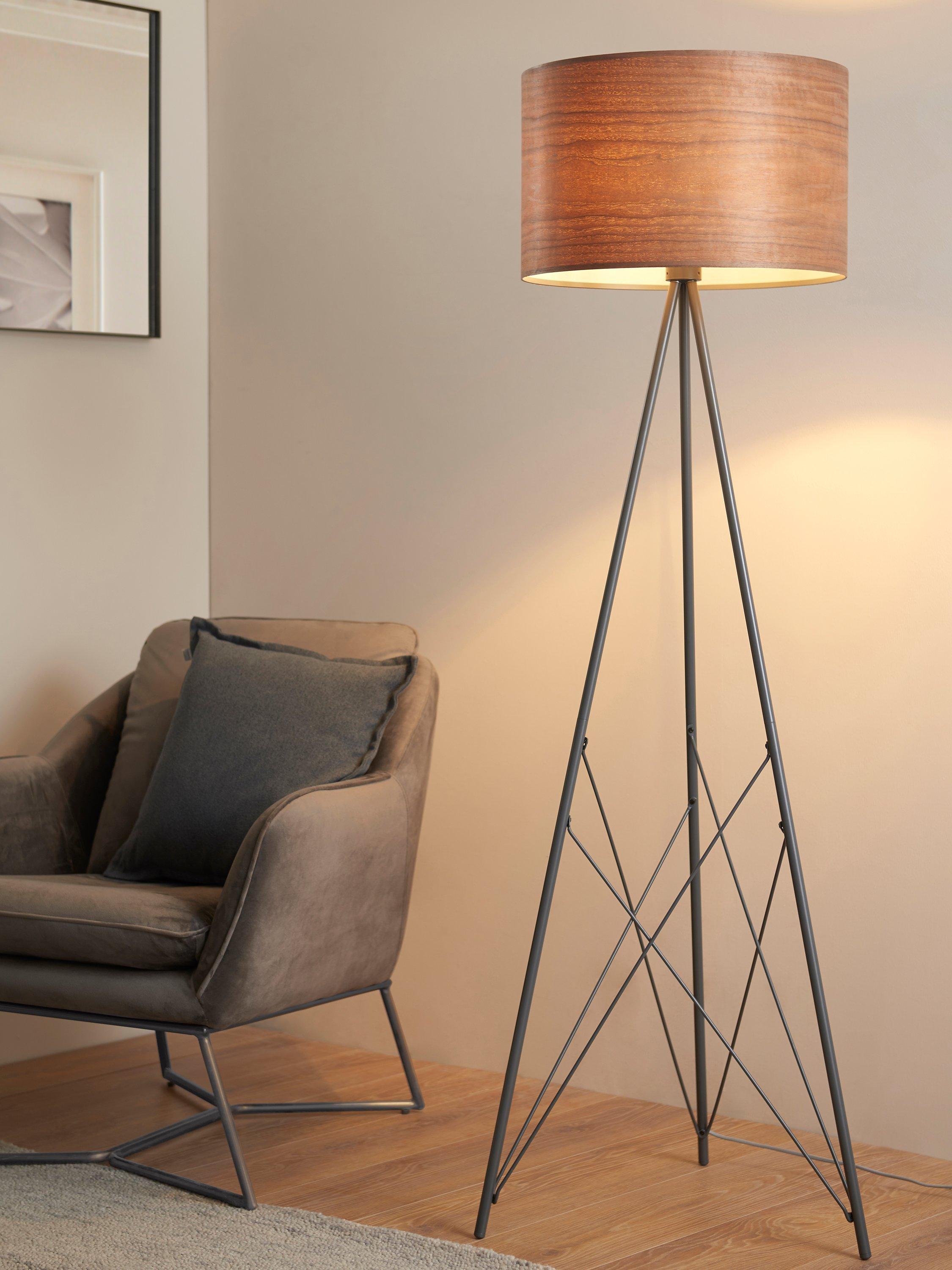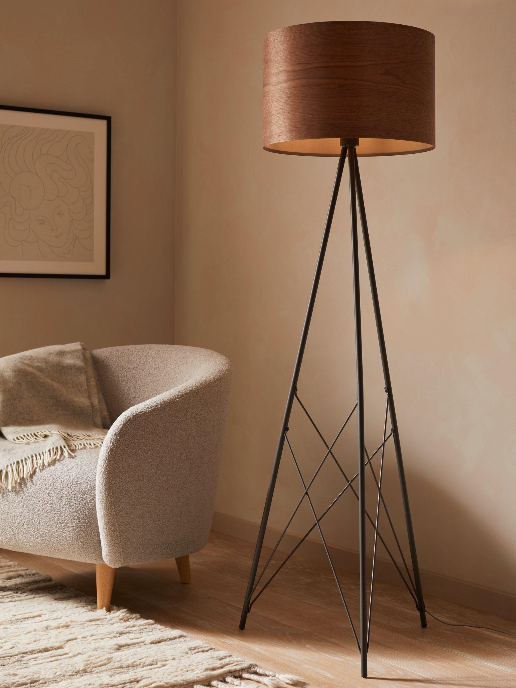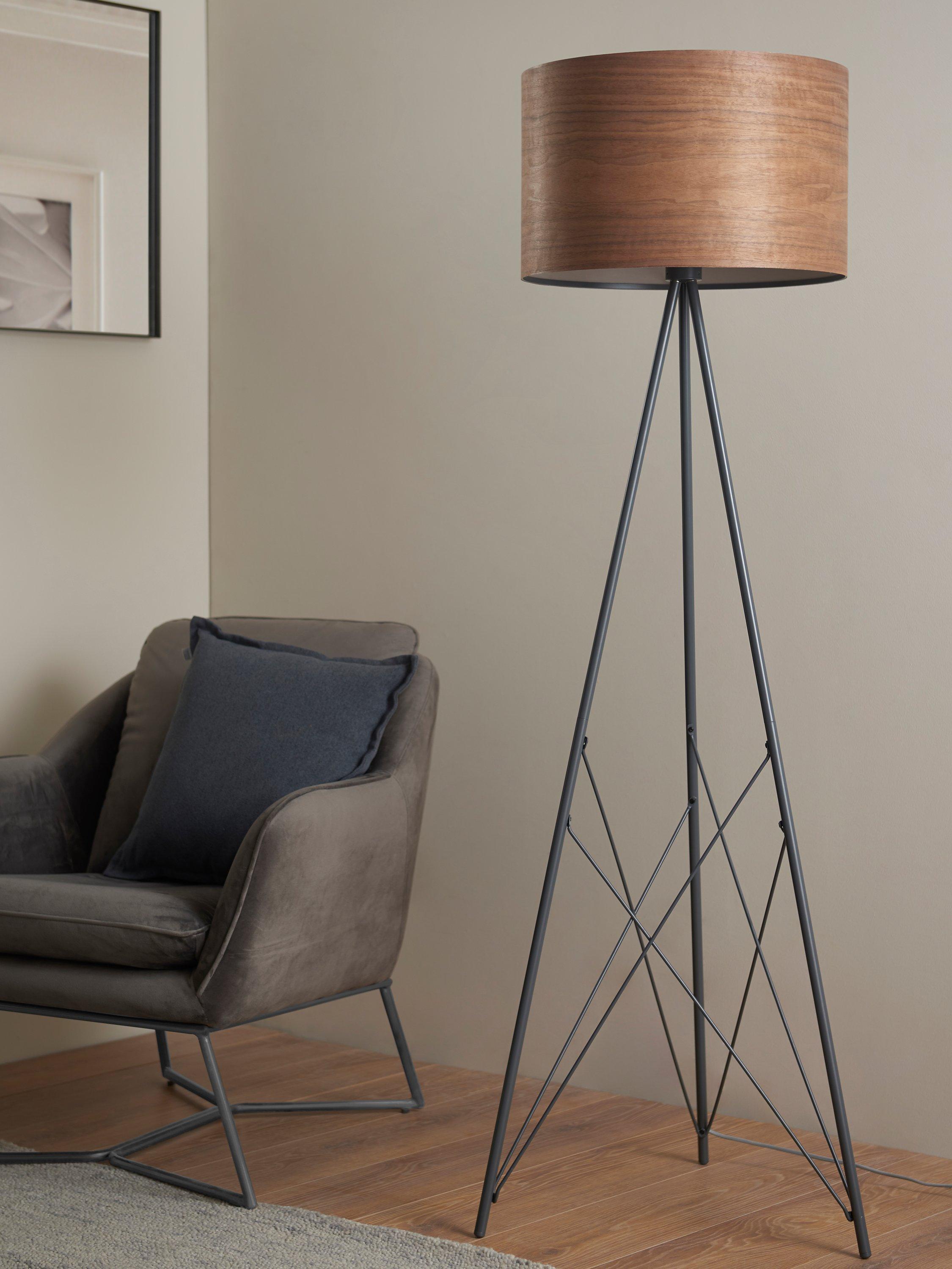 Lending natural appeal to sleek design, our Mia floor lamp boasts a dark walnut wood shade and a contemporary tripod base. Its versatile design will suit an array of interior styles, whiles its veneer finish highlights its natural construction. Coordinate your home decor with our Mia ceiling light.