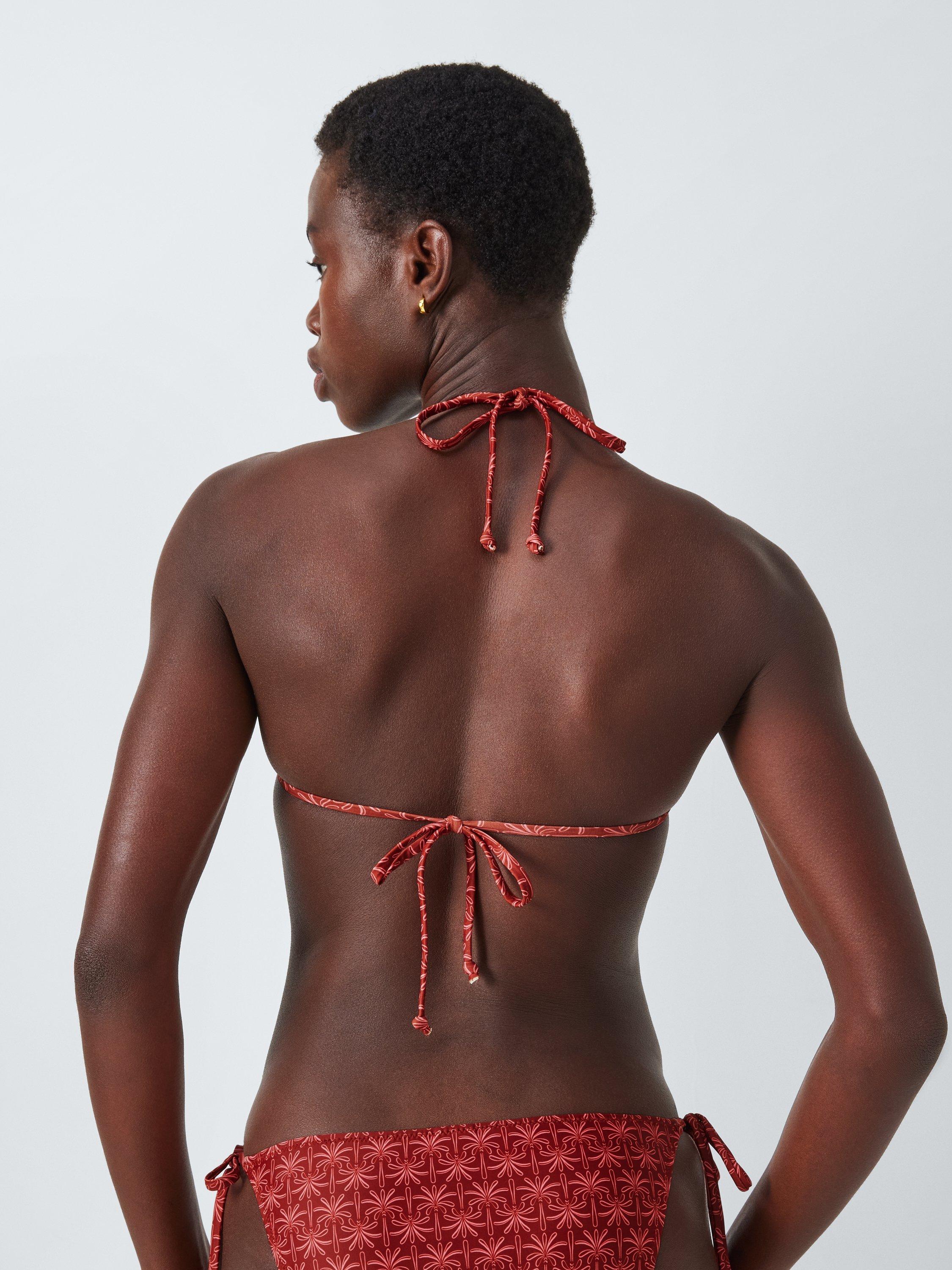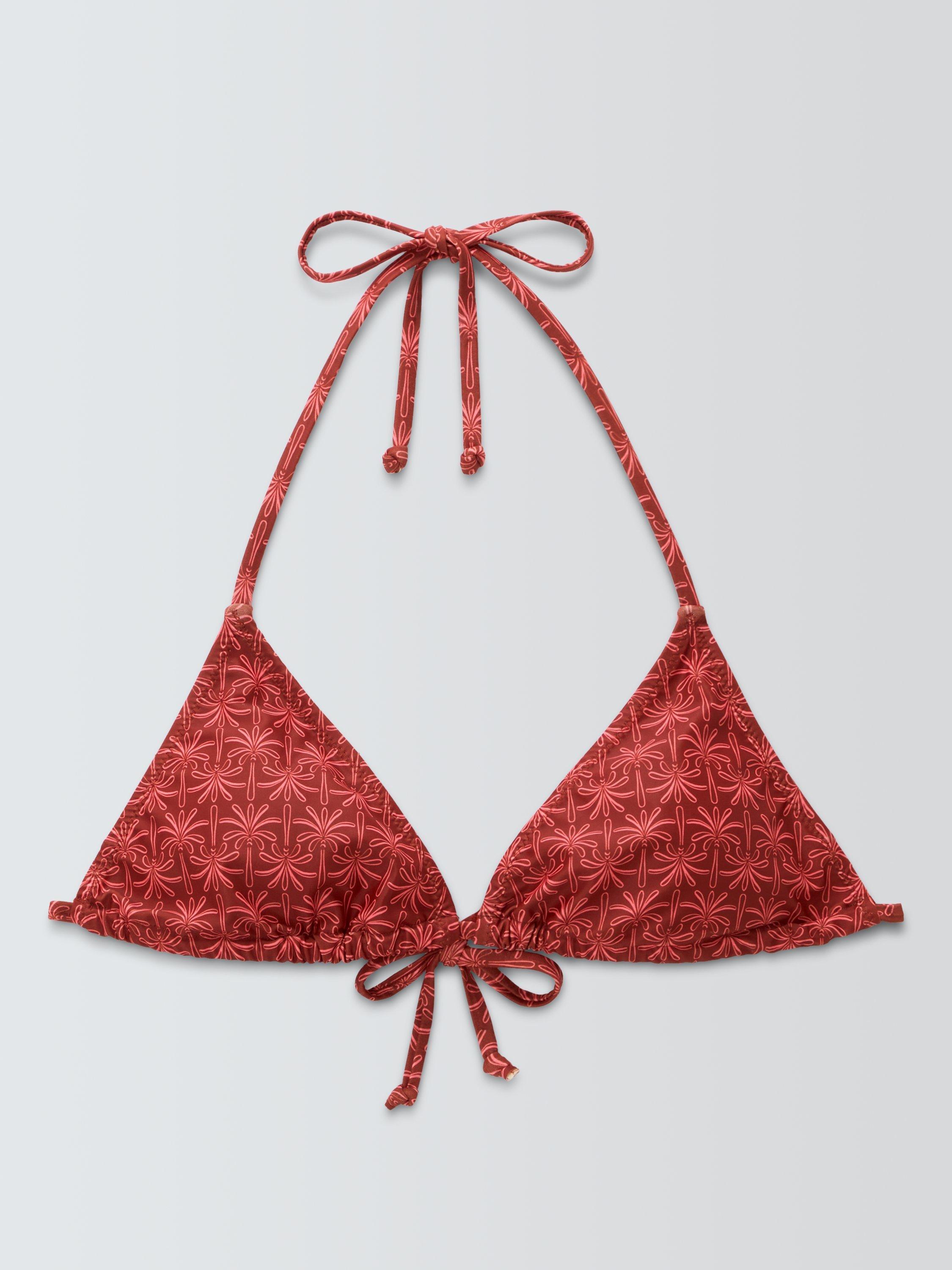 Featuring a modern palm tree motif our Miami Beach bikini top has a triangle shape with self-tie string straps.