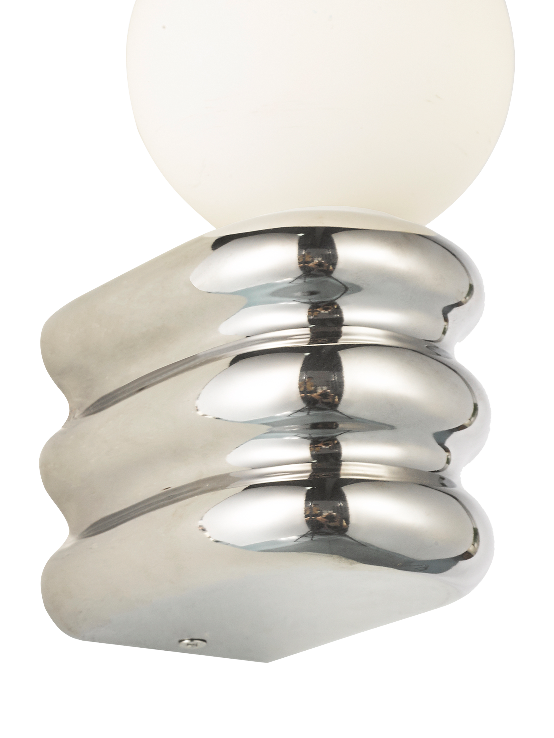 Create a statement hotel bathroom vibe with our stunning chunky ribbed wall light finished with an opal white glass globe shade.