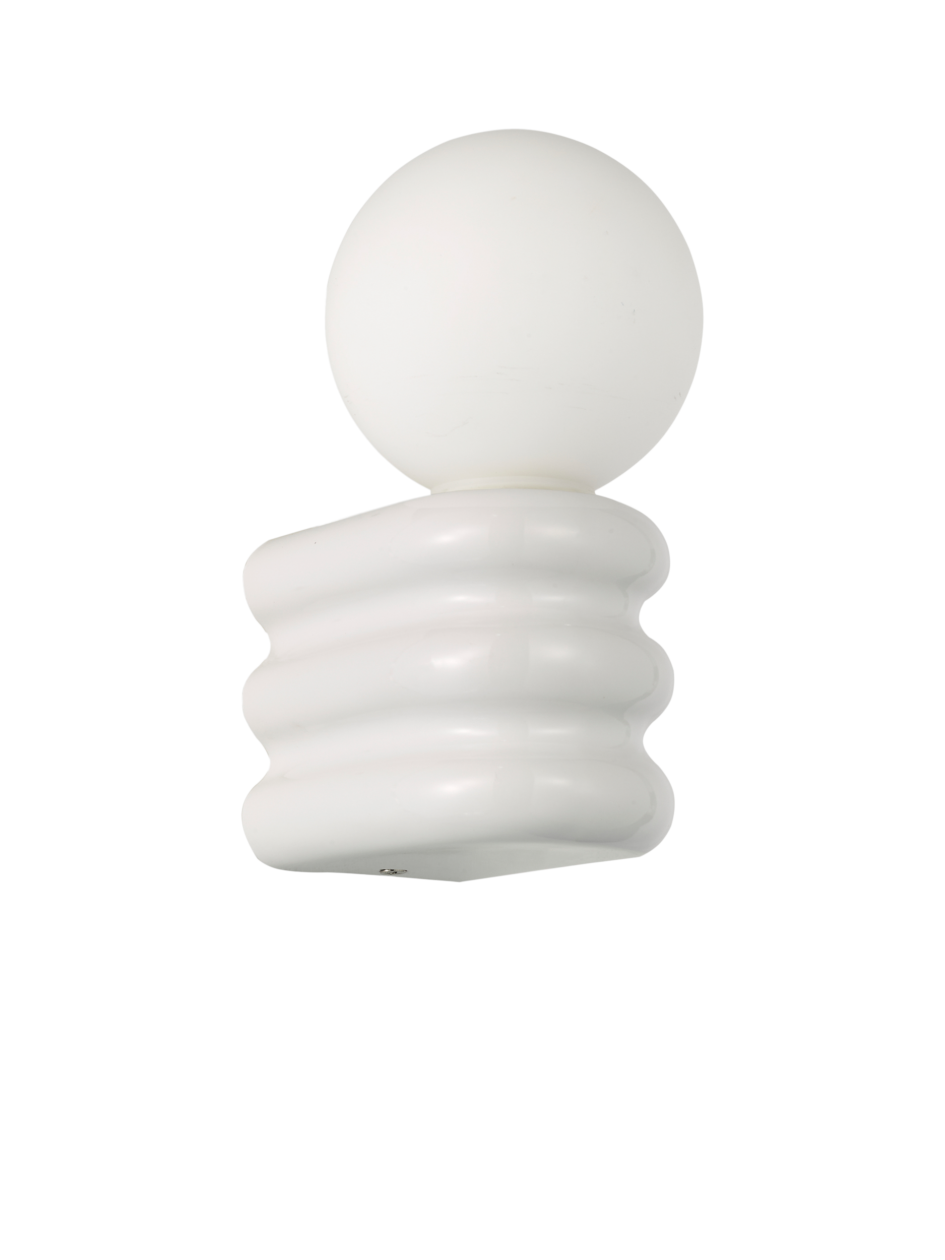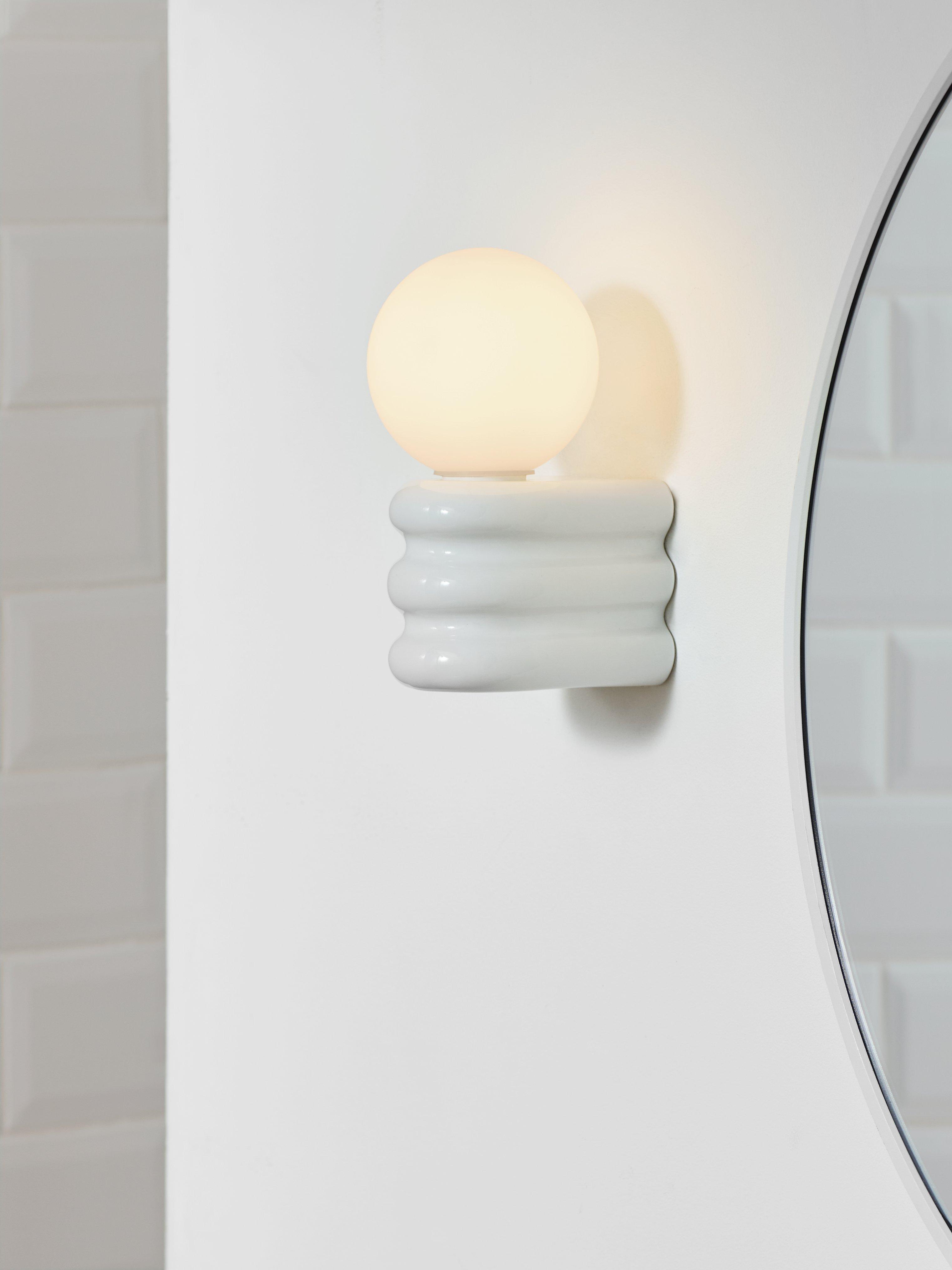Create a statement hotel bathroom vibe with our stunning chunky ribbed wall light finished with an opal white glass globe shade.