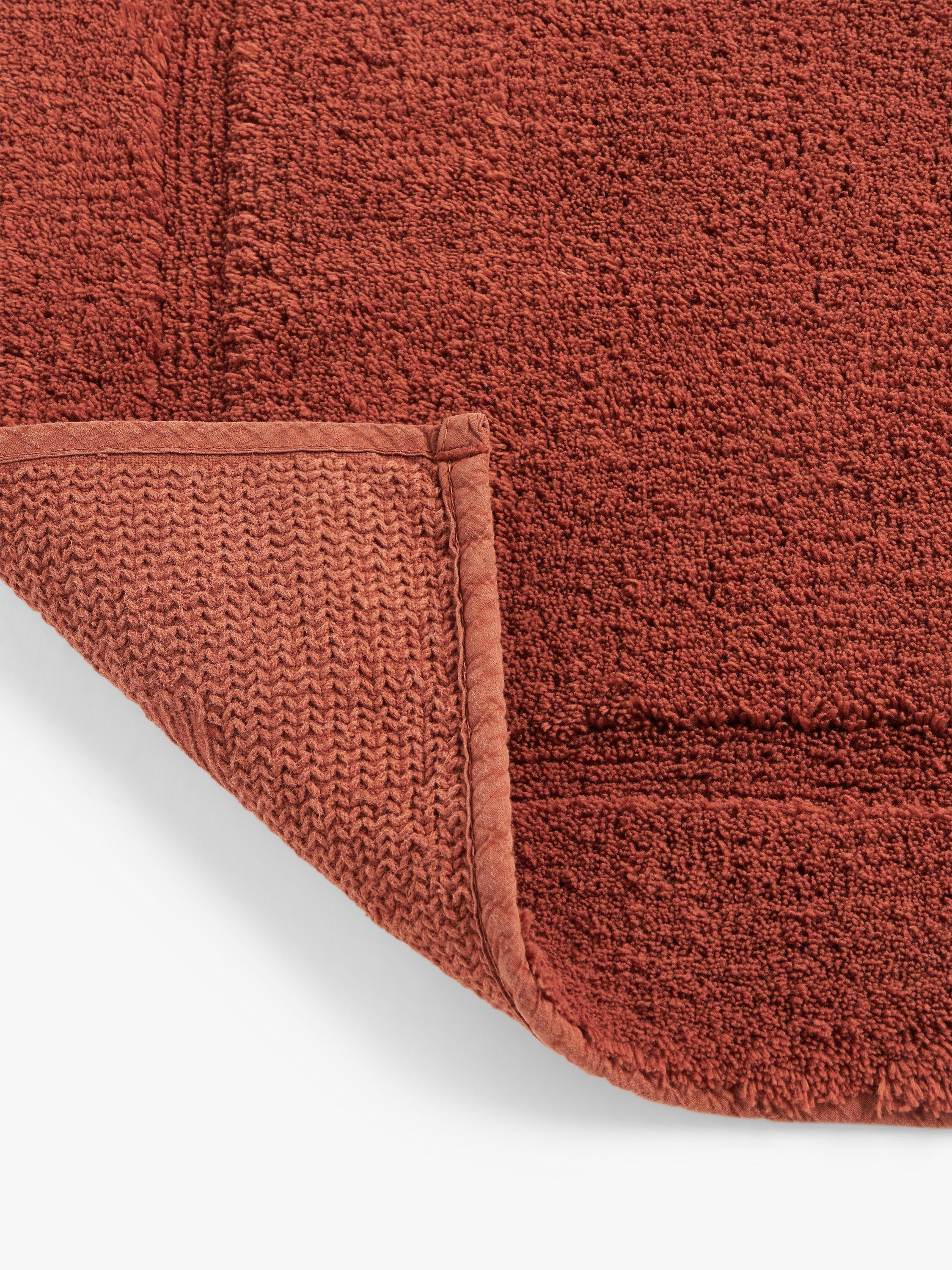 Pleasantly weighty and naturally plush, this cotton bath mat has a deep, cut pile with a higher density of longer loops than the average bath mat, giving it a wonderfully soft feel. It also has a slip-resistant backing to keep it in place on your bathroom floor.