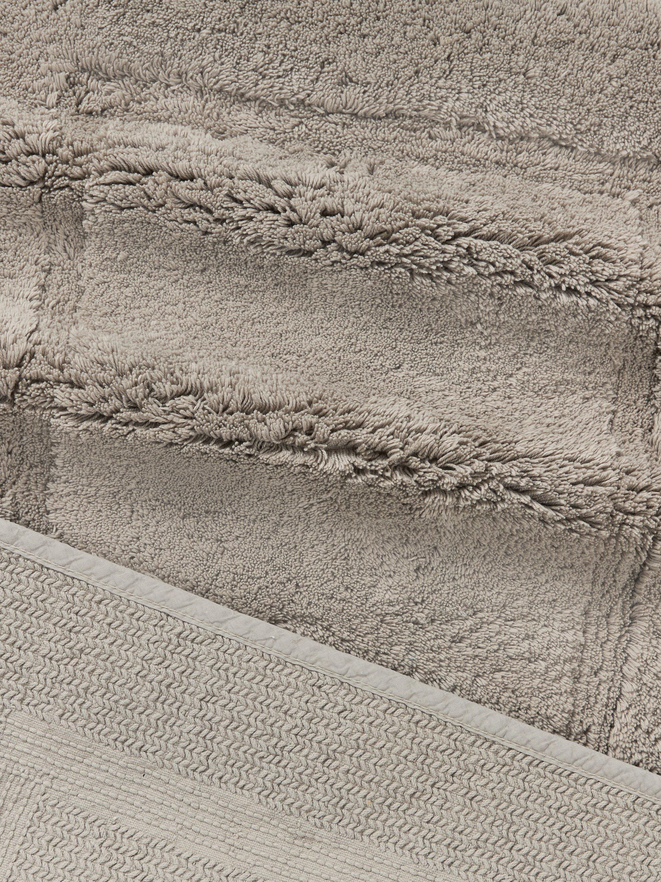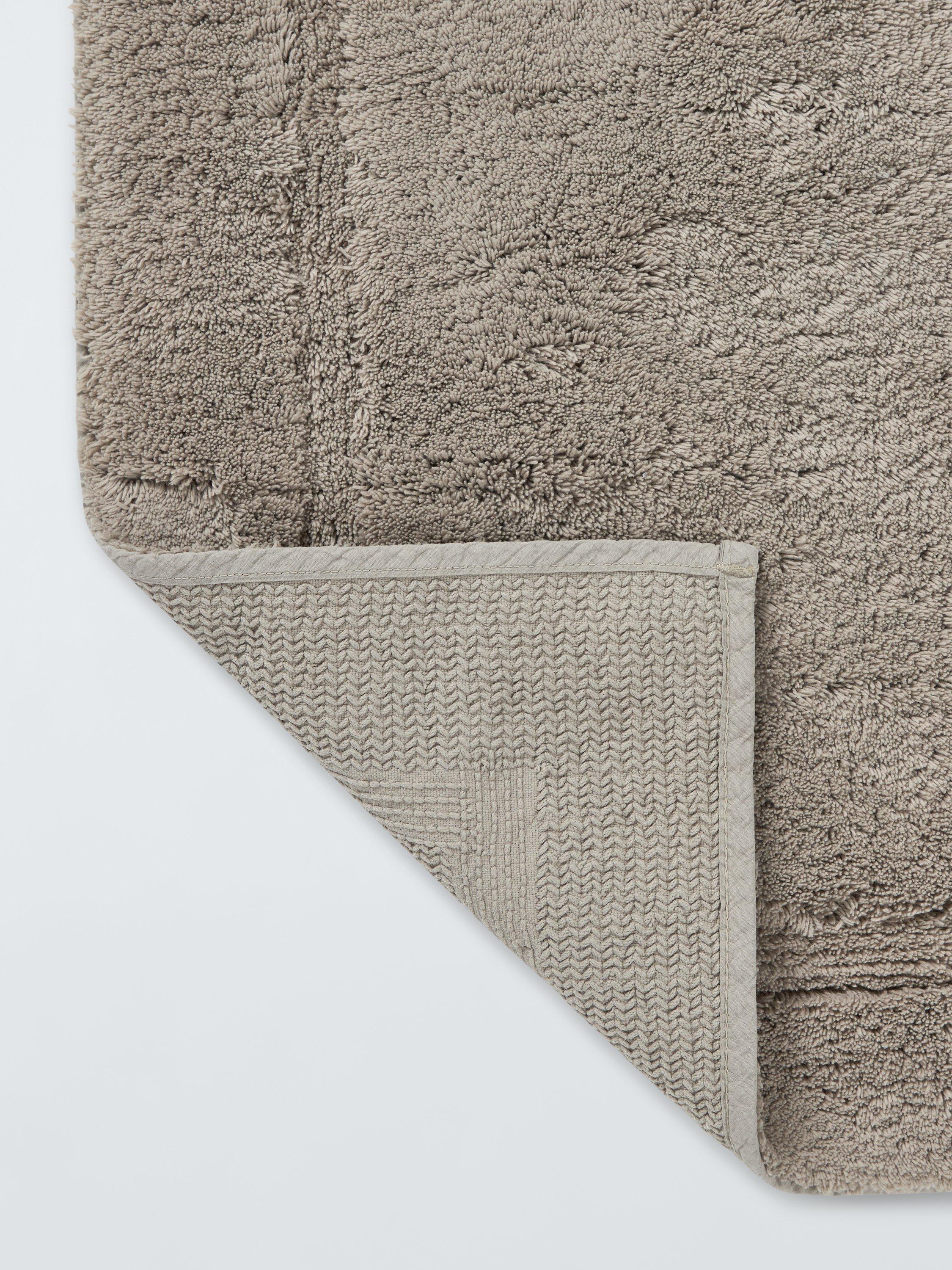 Pleasantly weighty and naturally plush, this cotton bath mat has a deep, cut pile with a higher density of longer loops than the average bath mat, giving it a wonderfully soft feel. It also has a slip-resistant backing to keep it in place on your bathroom floor.
