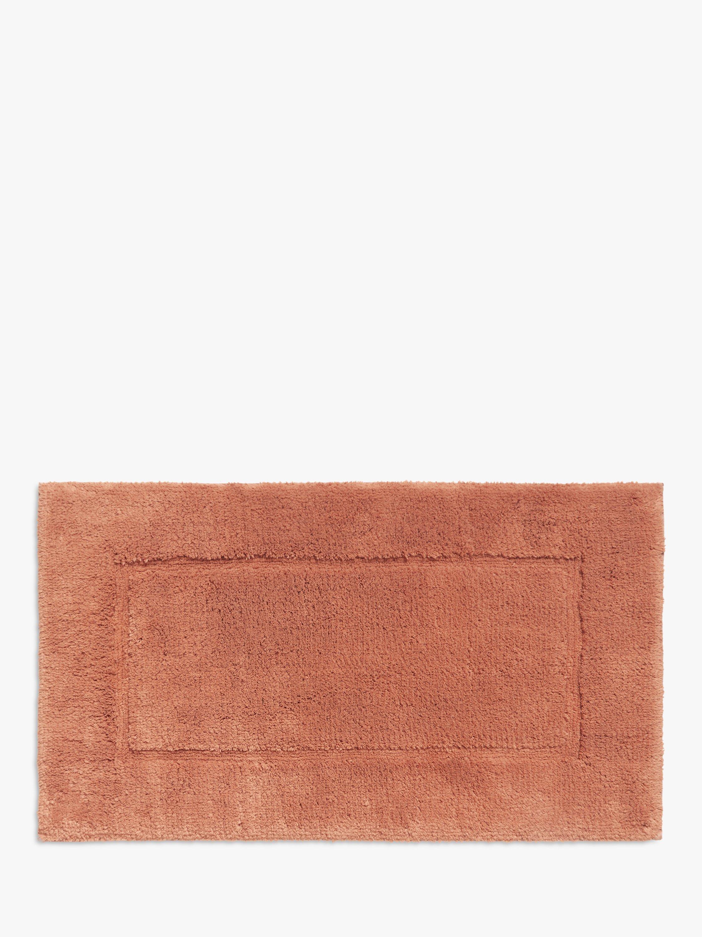 Pleasantly weighty and naturally plush, this cotton bath mat has a deep, cut pile with a higher density of longer loops than the average bath mat, giving it a wonderfully soft feel. It also has a slip-resistant backing to keep it in place on your bathroom floor.