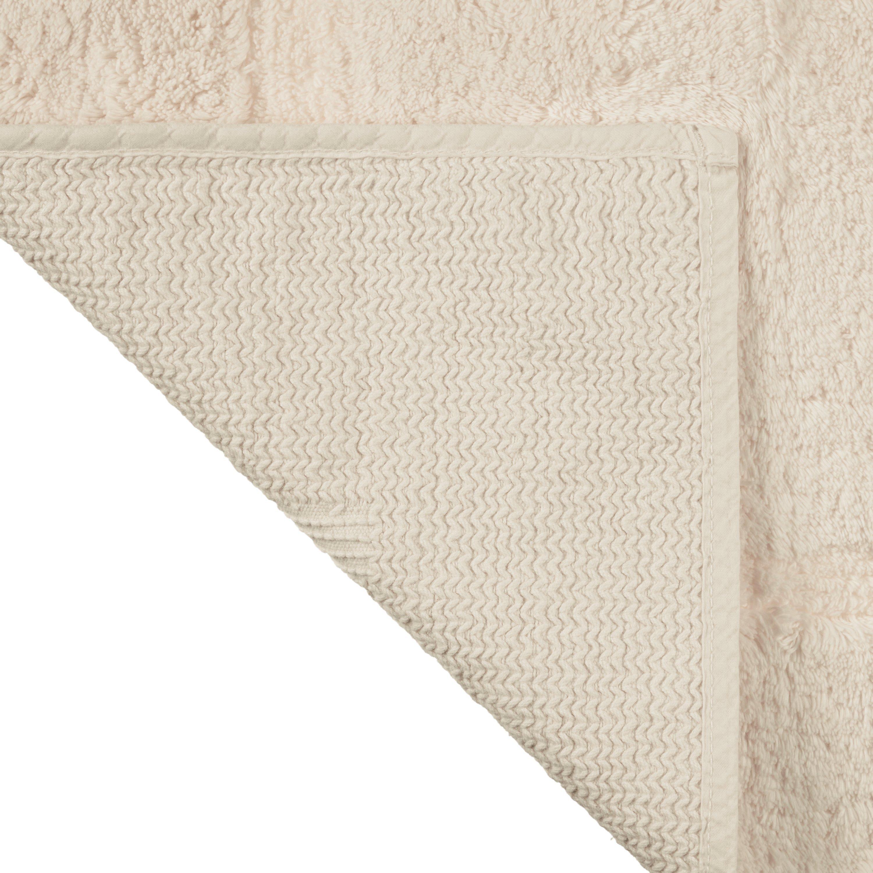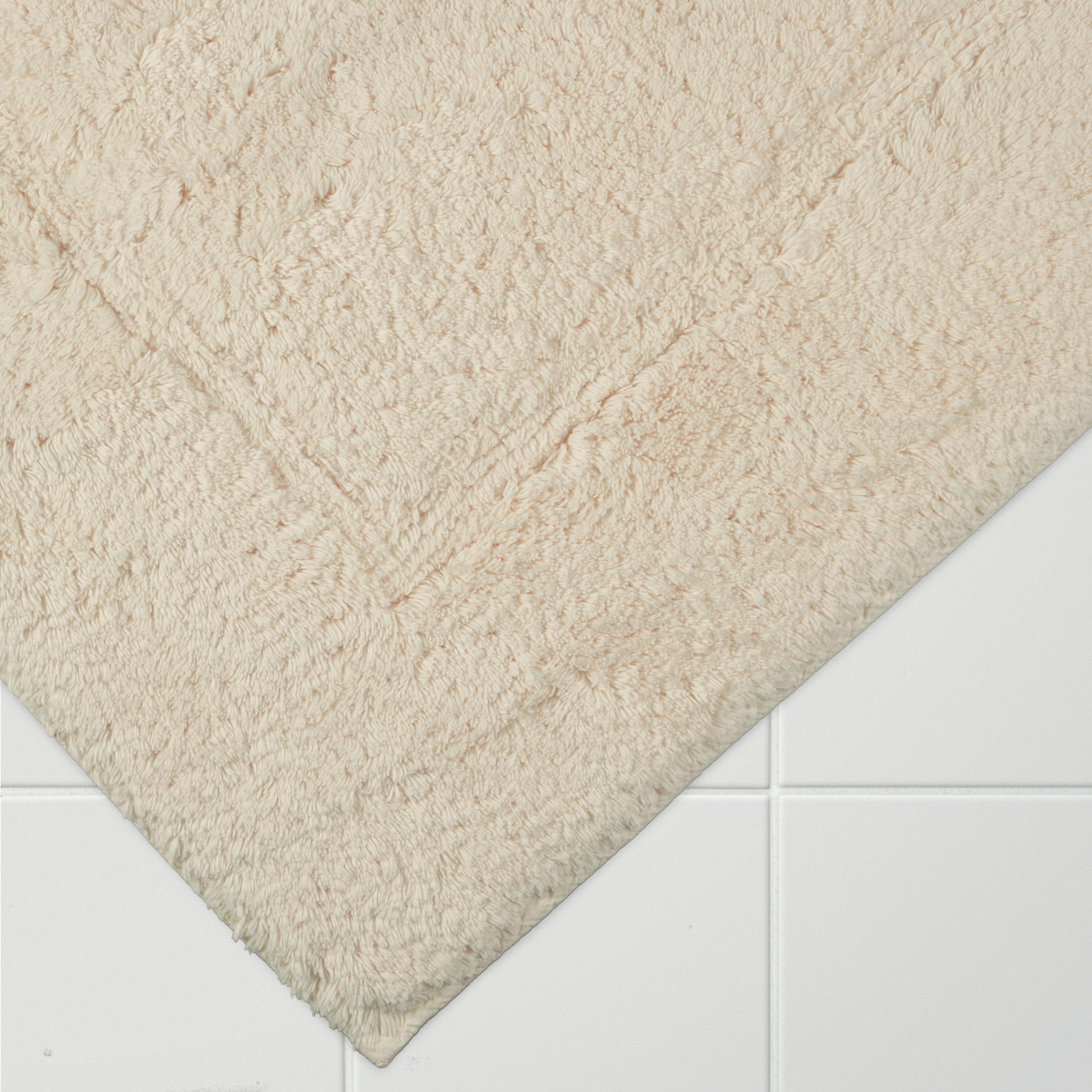Pleasantly weighty and naturally plush, this cotton shower mat has a deep, cut pile with a higher density of longer loops than the average bath mat, giving it a wonderfully soft feel. It also has a slip-resistant backing to keep it in place on your bathroom floor.