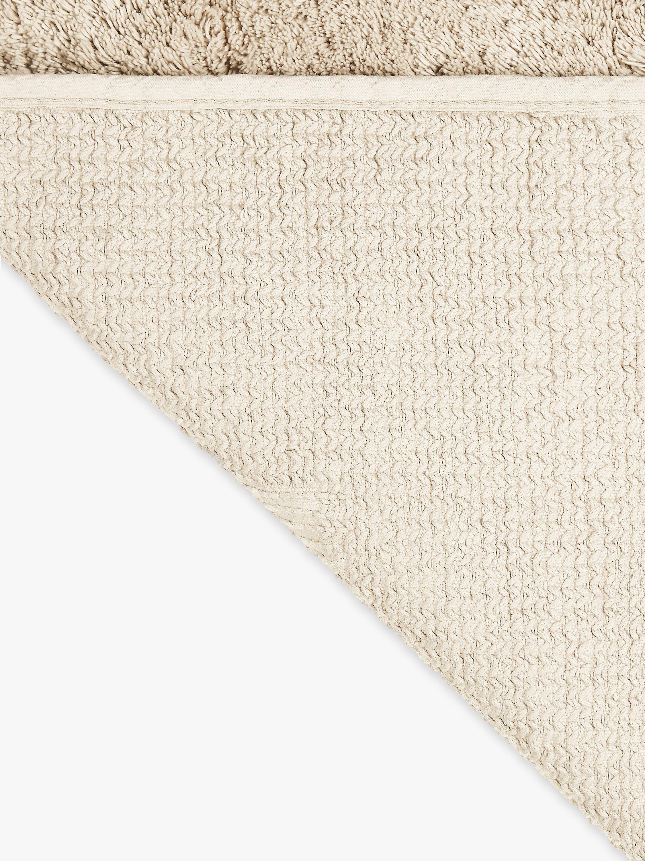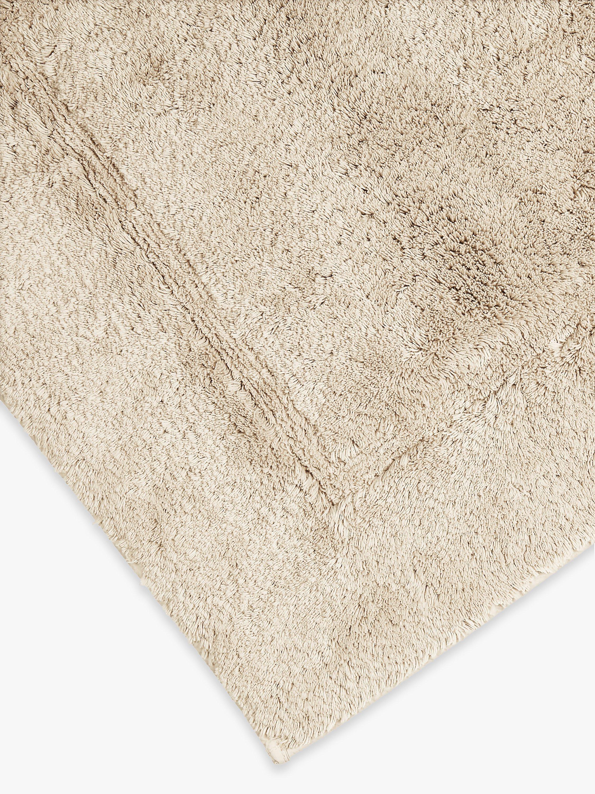 Pleasantly weighty and naturally plush, this cotton bath mat has a deep, cut pile with a higher density of longer loops than the average bath mat, giving it a wonderfully soft feel. It also has a slip-resistant backing to keep it in place on your bathroom floor.
