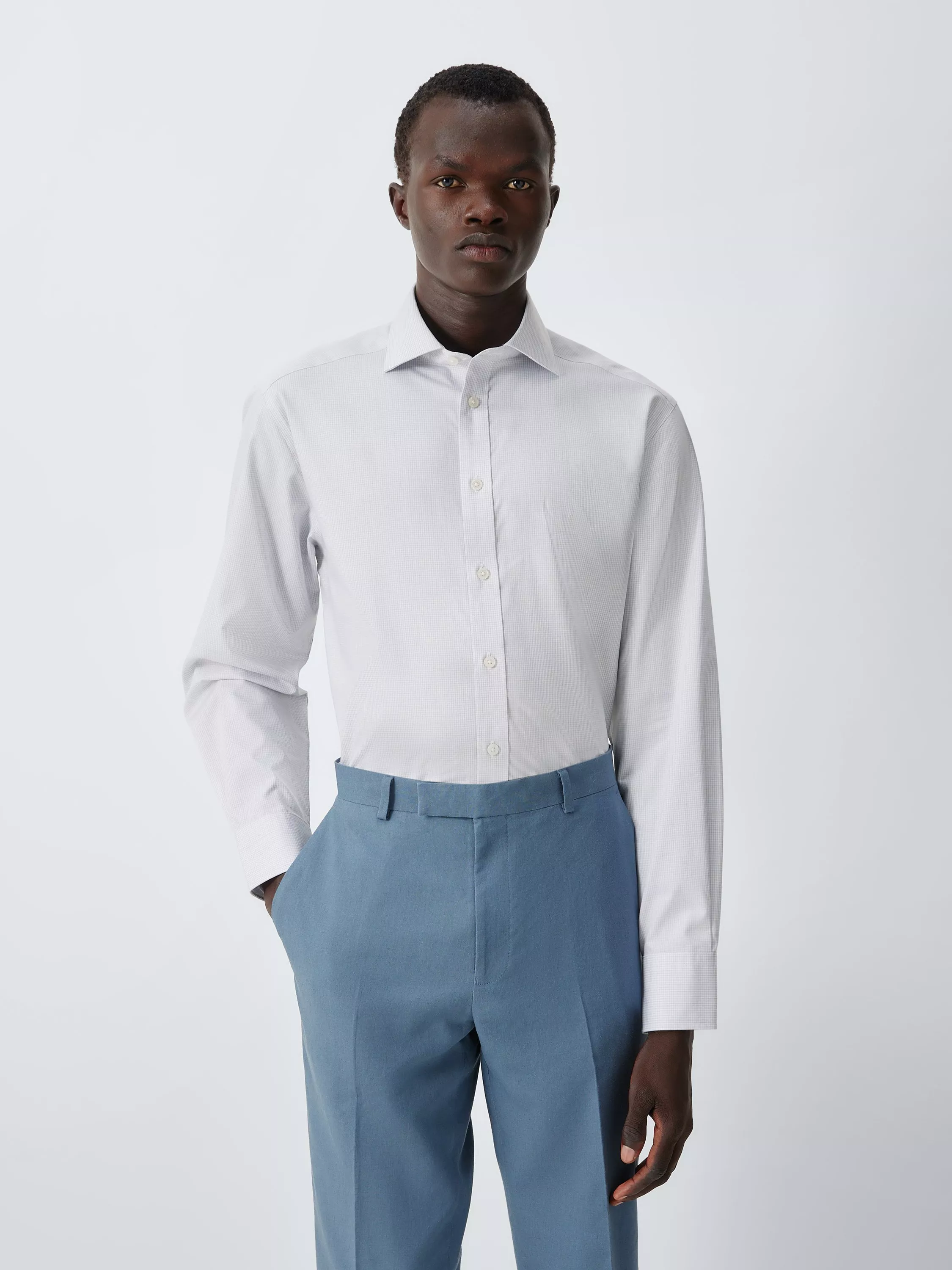 John LewisMicro Gingham Regular Fit Crease Resistant Cotton Shirt