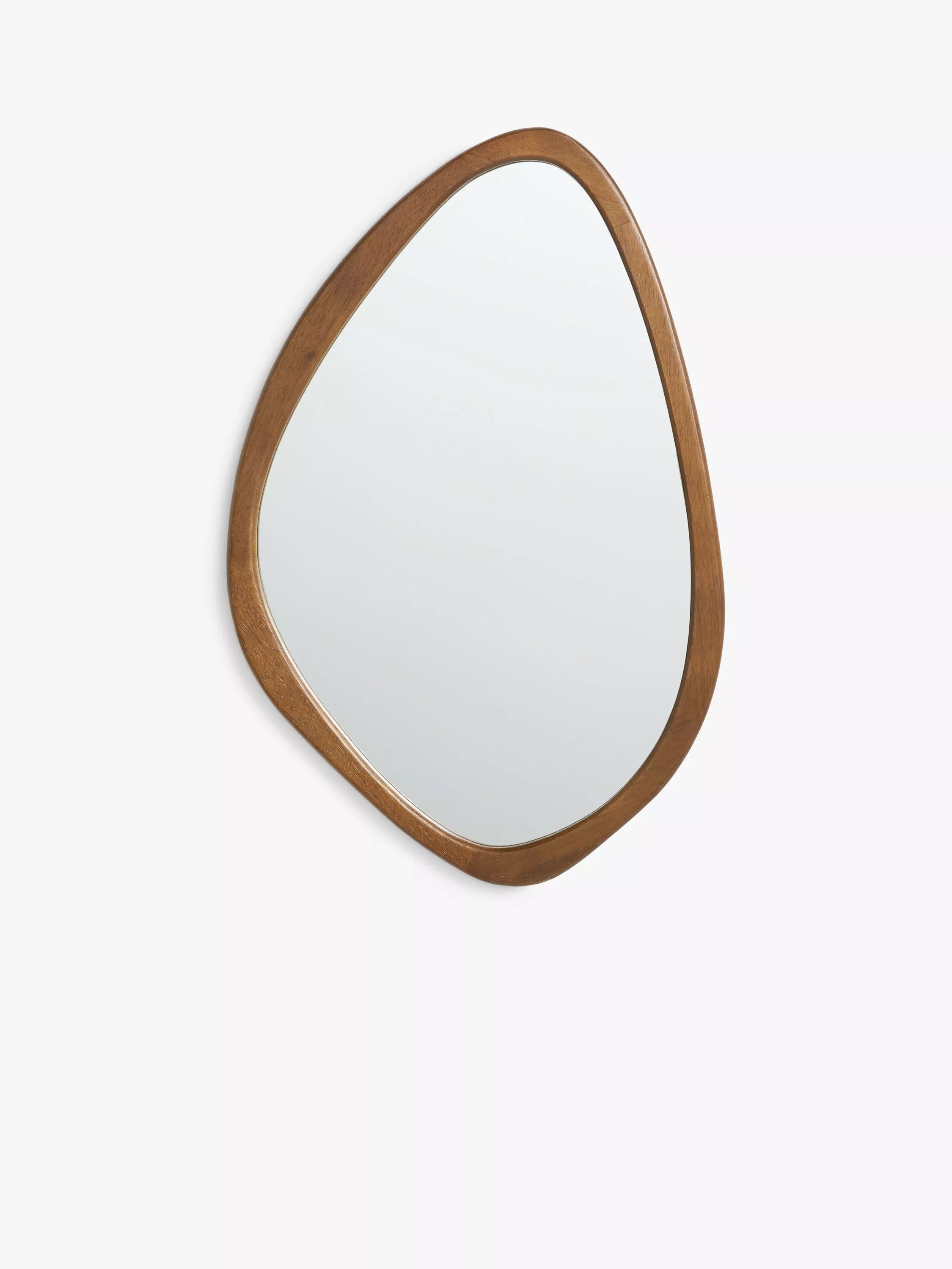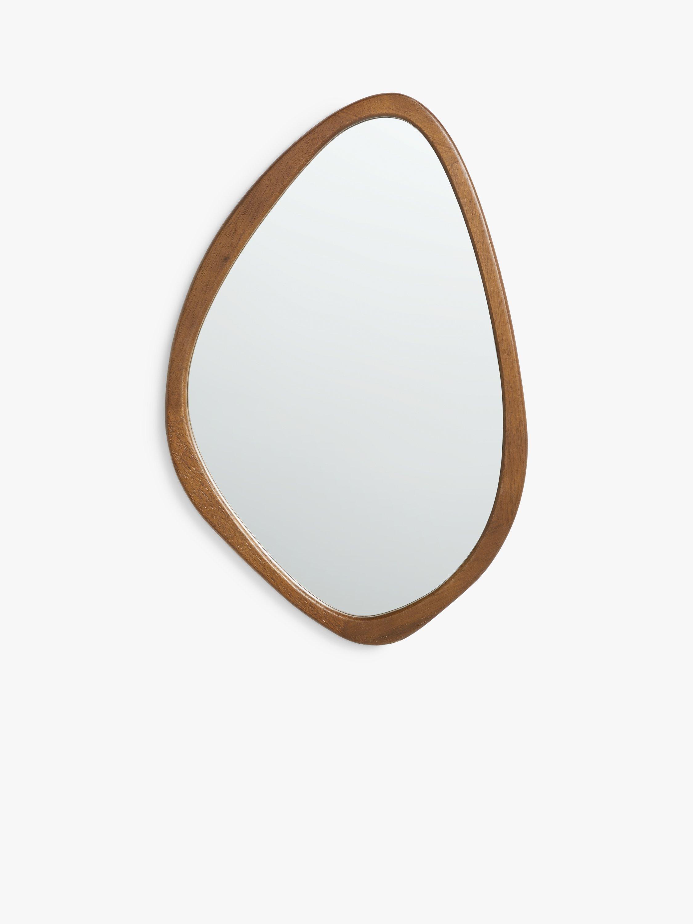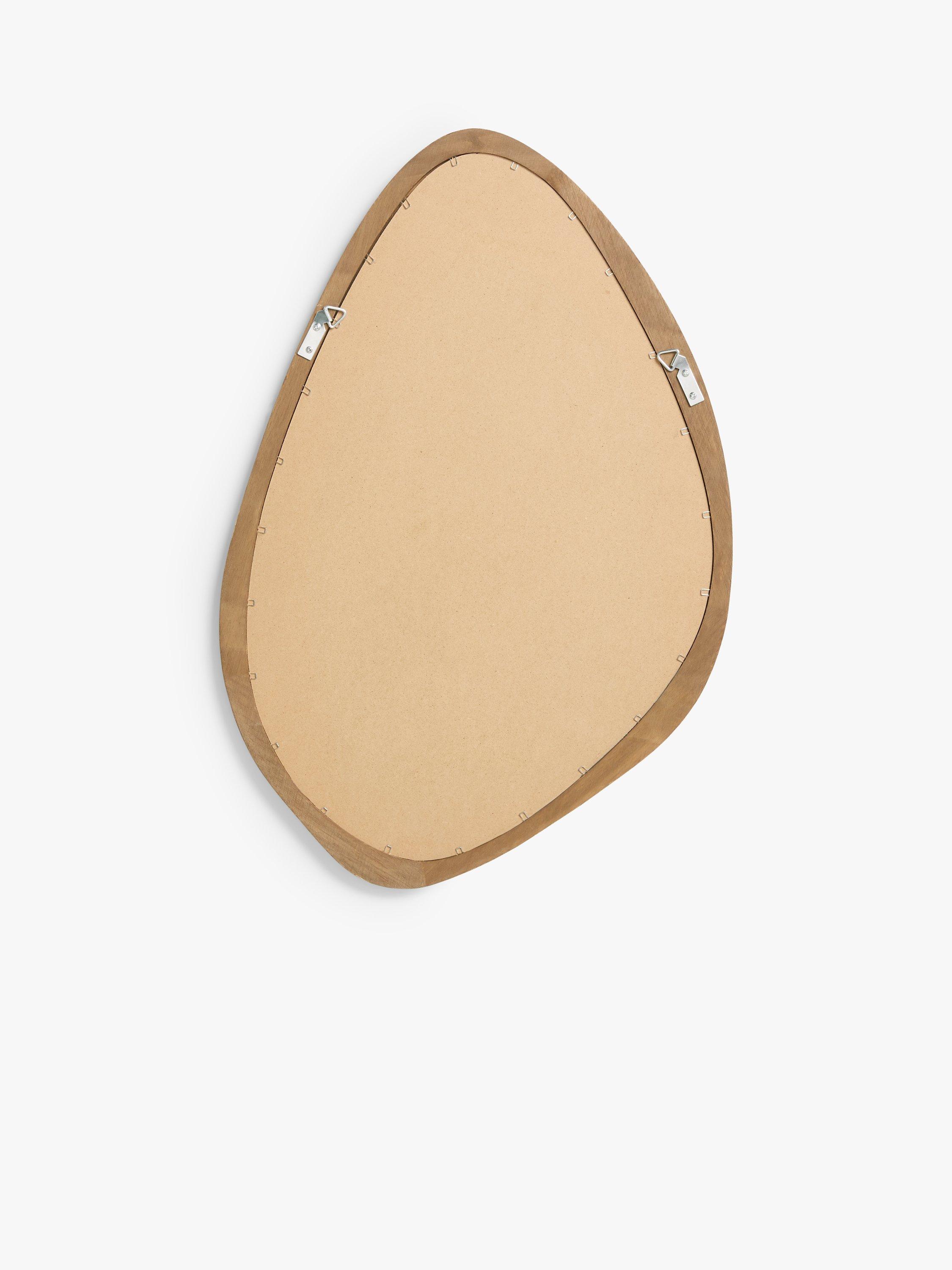 Straight out of the Mid-century playbook, this wall mirror has an organic oval shape that let its deep wood frame shine. The frame is made of oak wood with a warm-toned walnut finish. It's ready to wall-mount using the D-ring fittings on the back.