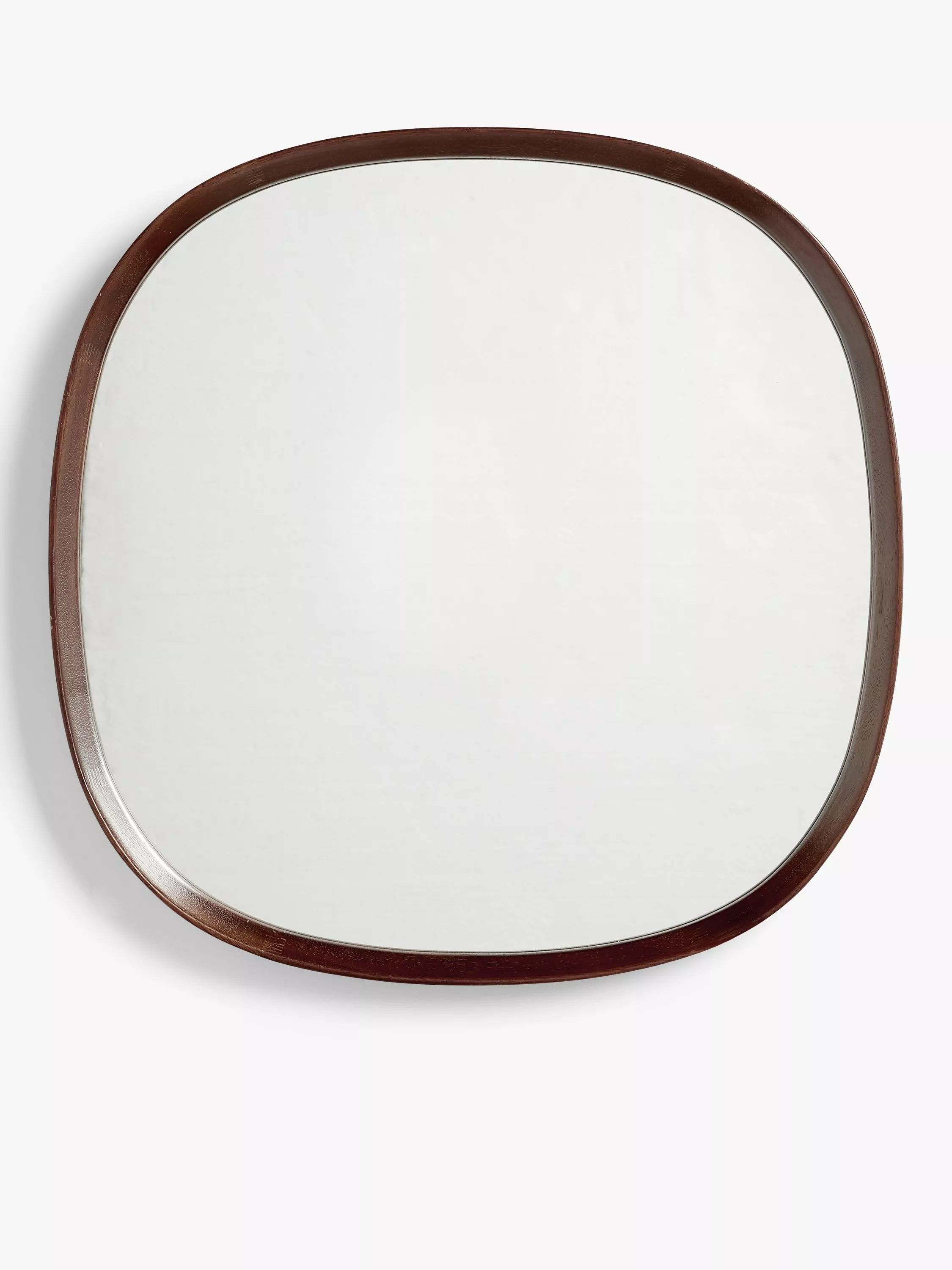 Making the most of its warm wood tones, made of oak in a walnut finish, this wall mirror is straight out of the Mid-century Modern playbook. Just like that era's much-loved and enduring designs, this piece celebrates the natural material and attractive wood grain with a retro shape of softly rounded corners and a wide border.