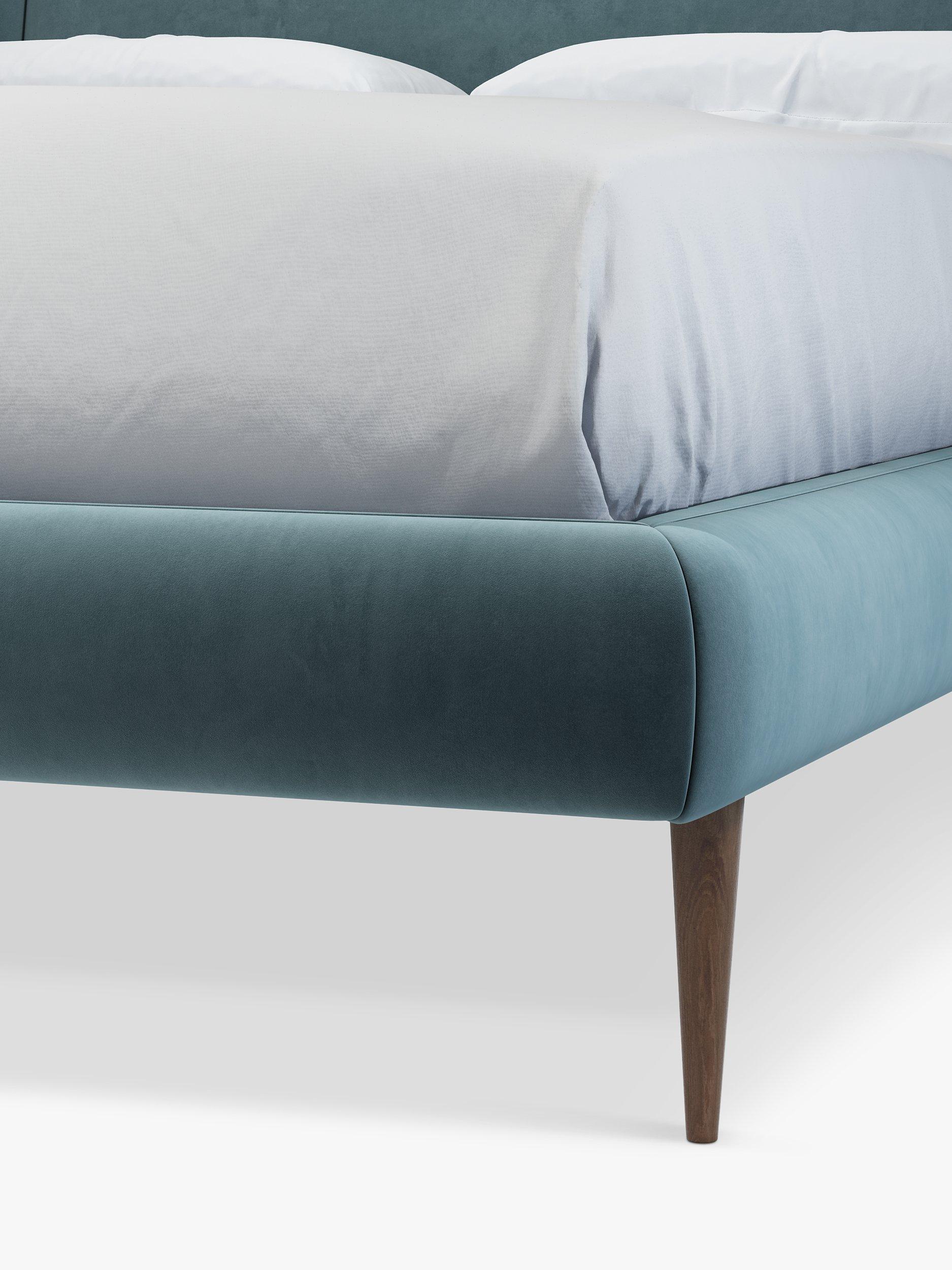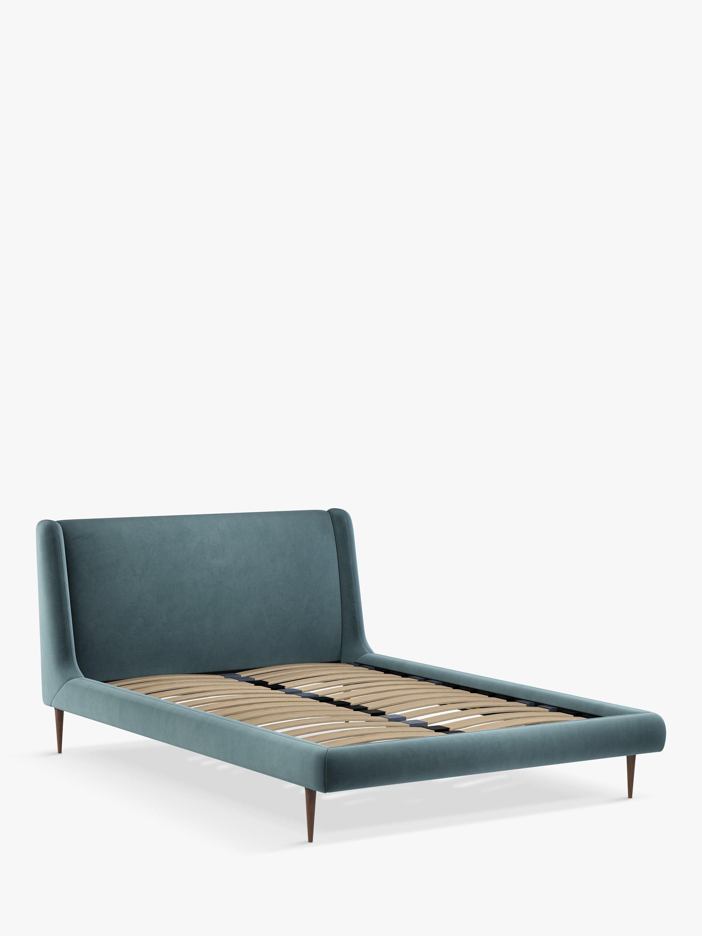 Our Mid-Century Sweep bed frame has a sleek, retro-inspired shape. Its streamlined profile marries soft curves and sharp lines, resting on tapered wooden legs. Sprung slats in the base provide additional support for you and your mattress.