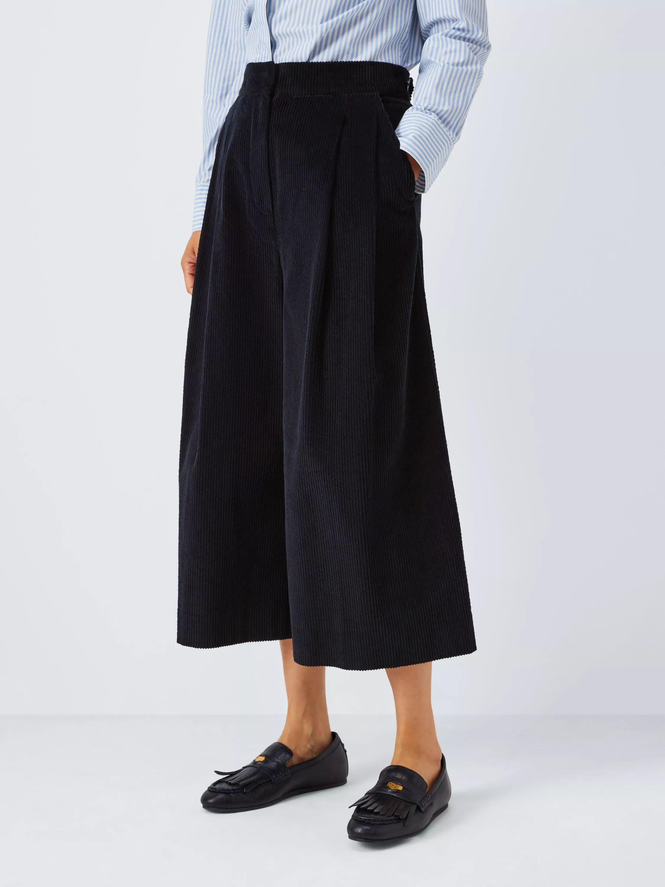 Cotton corduroy takes centre in these free-flowing culottes.