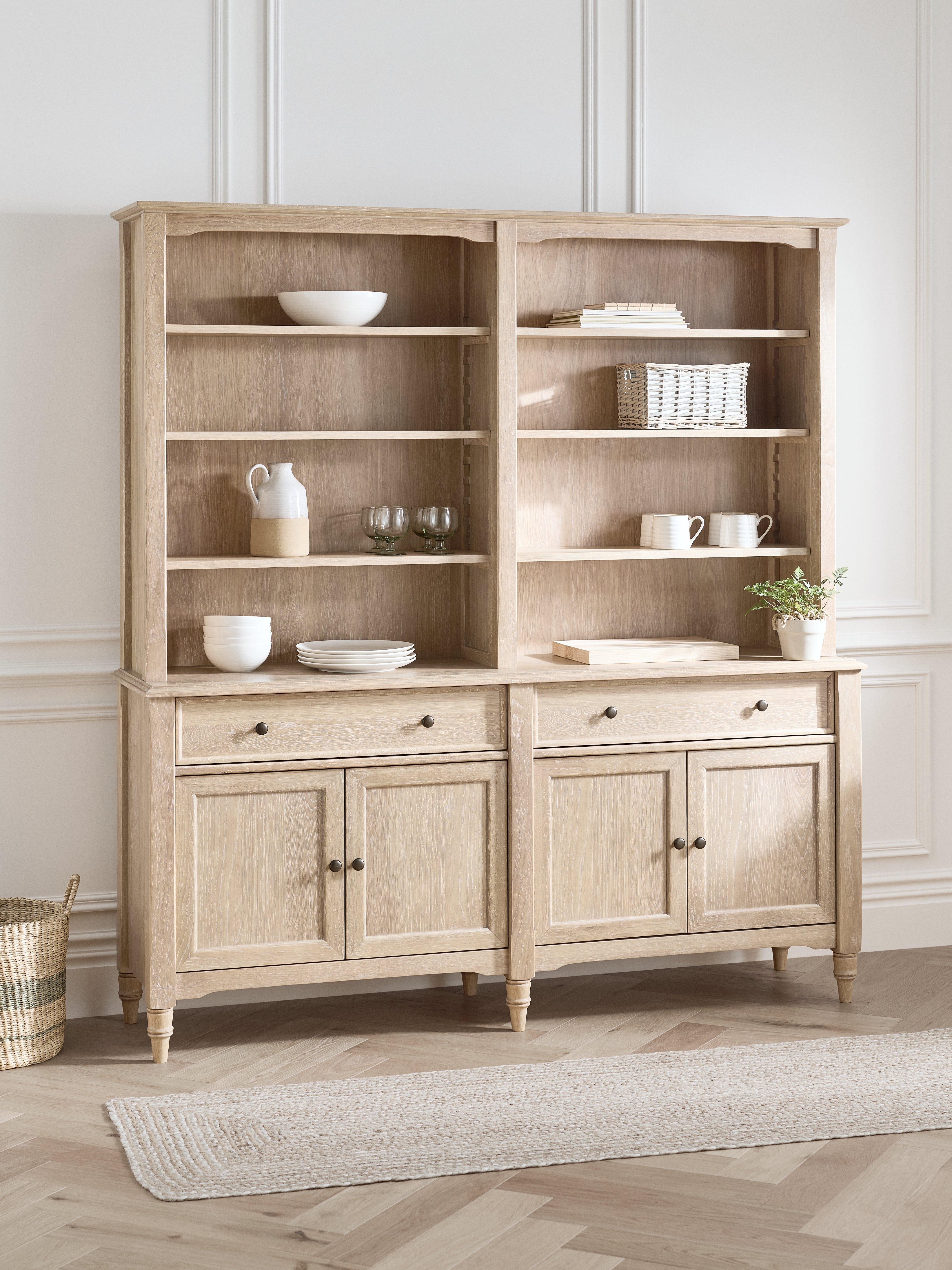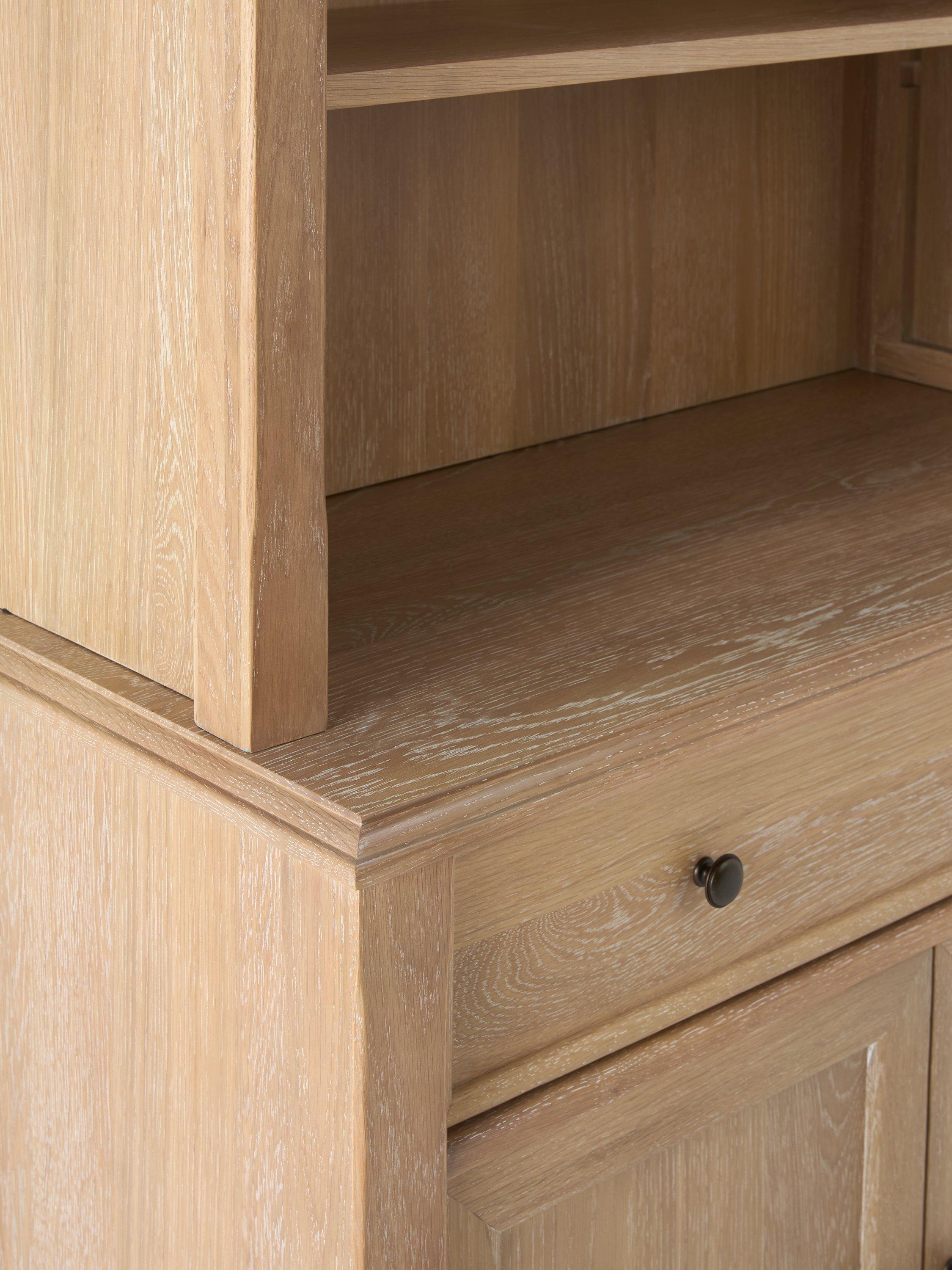 With its light wash finish, this piece effortlessly brings a sense of airy elegance to any room, while the classic detailing ensures it remains a standout in both traditional and contemporary interiors. The versatile shelving offers ample storage, perfect for displaying decor or stowing away essentials, all while maintaining a refined aesthetic that enhances your home's charm.