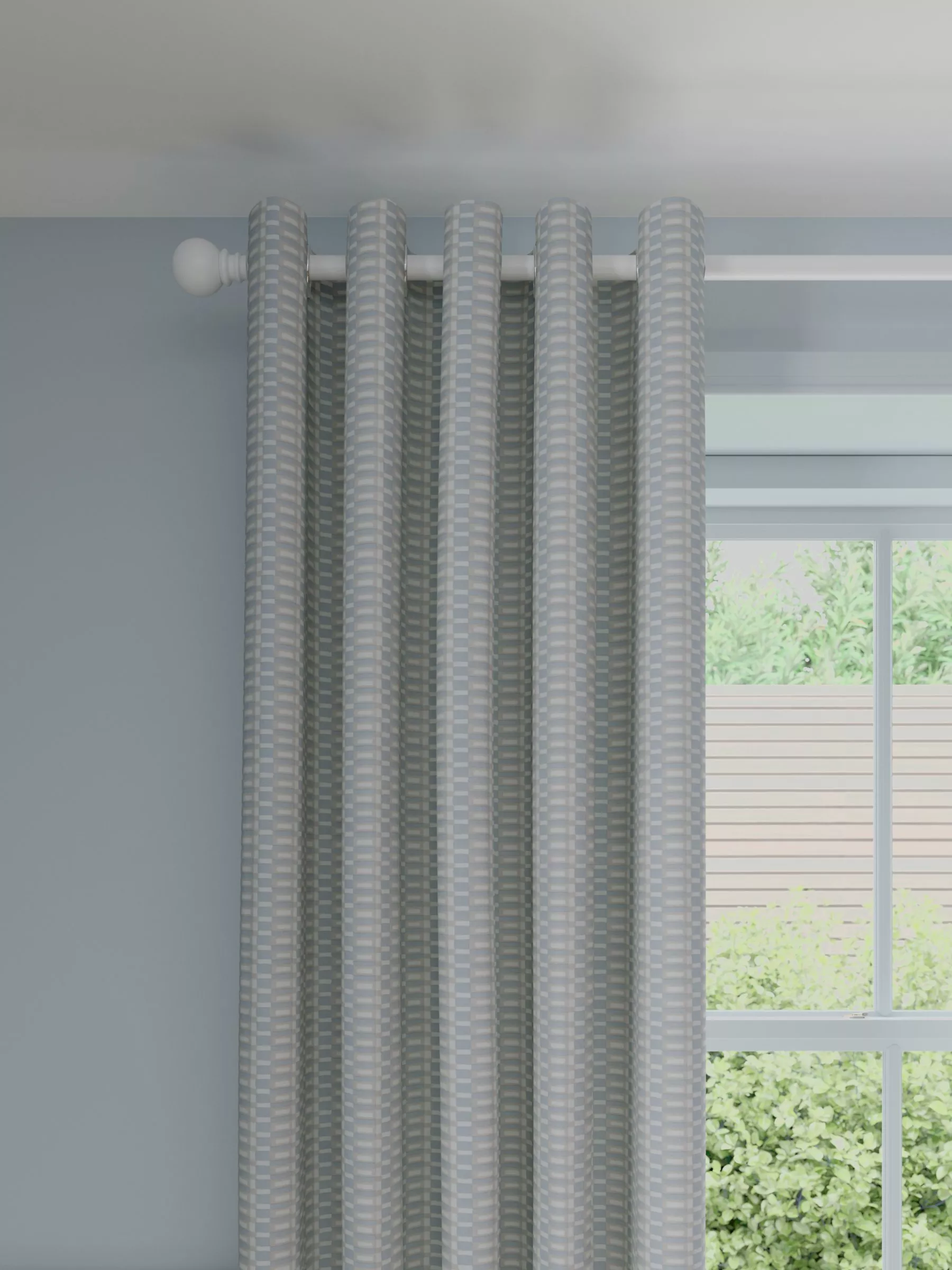 John LewisMini Blocks Print Pair Lined Eyelet Curtains, Chalk Blue, W228 x Drop 137cm