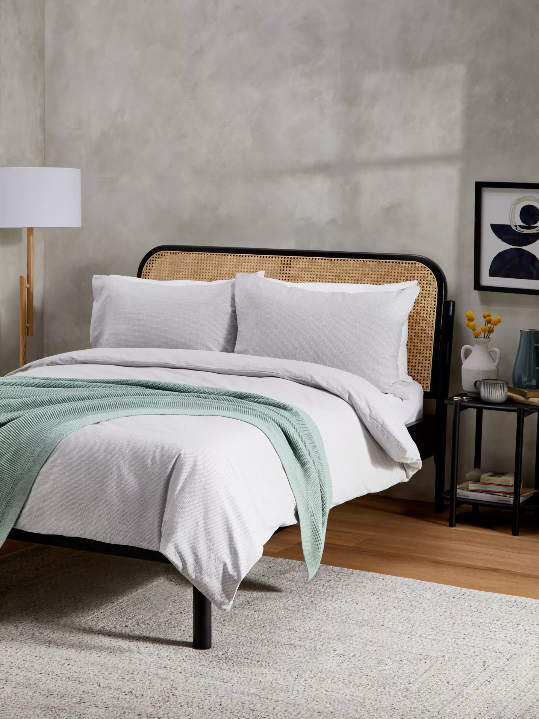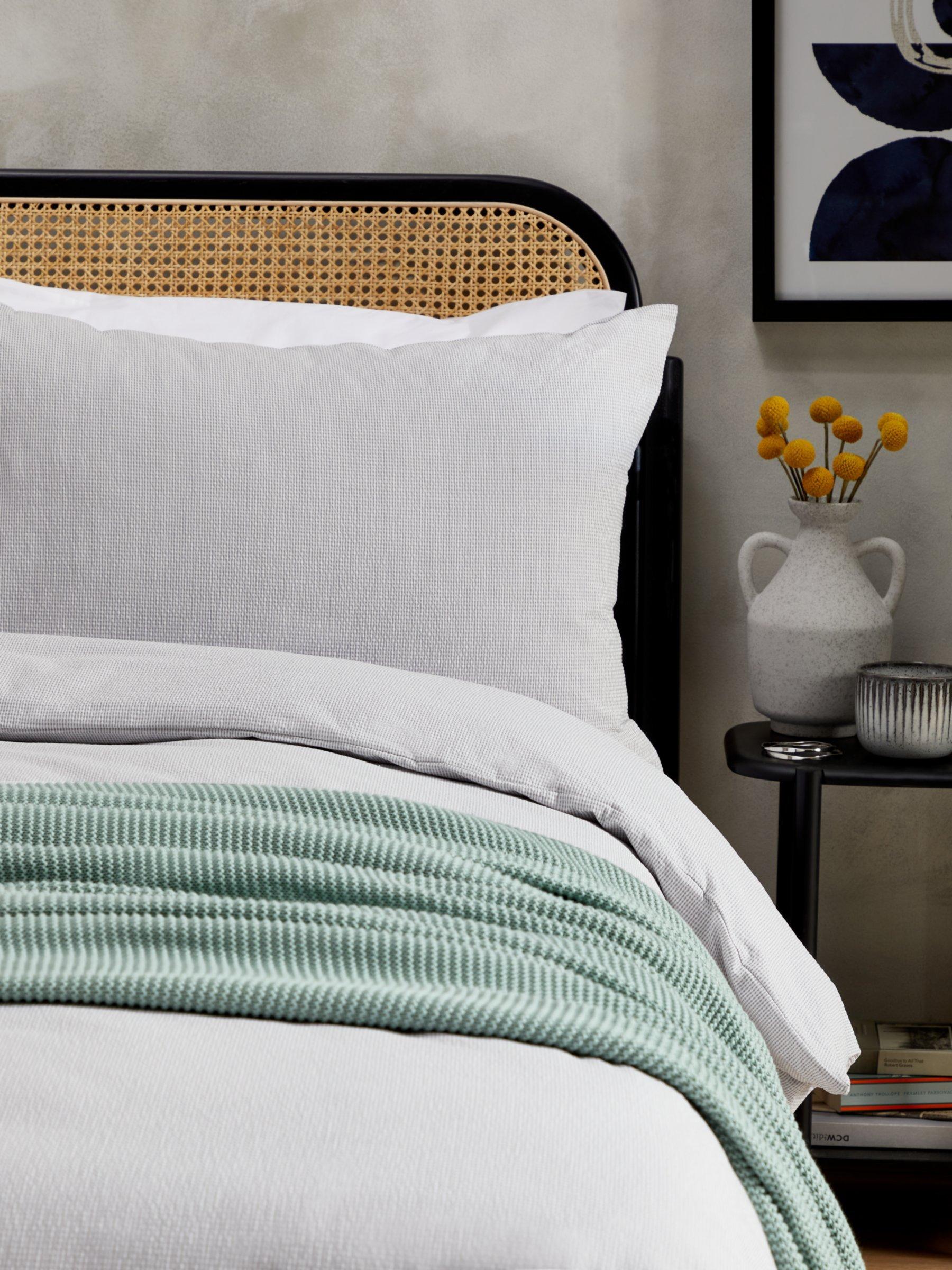 This seersucker bed linen is made by weaving the yarns at different tensions, which creates the signature crimped texture and light, cool feel.