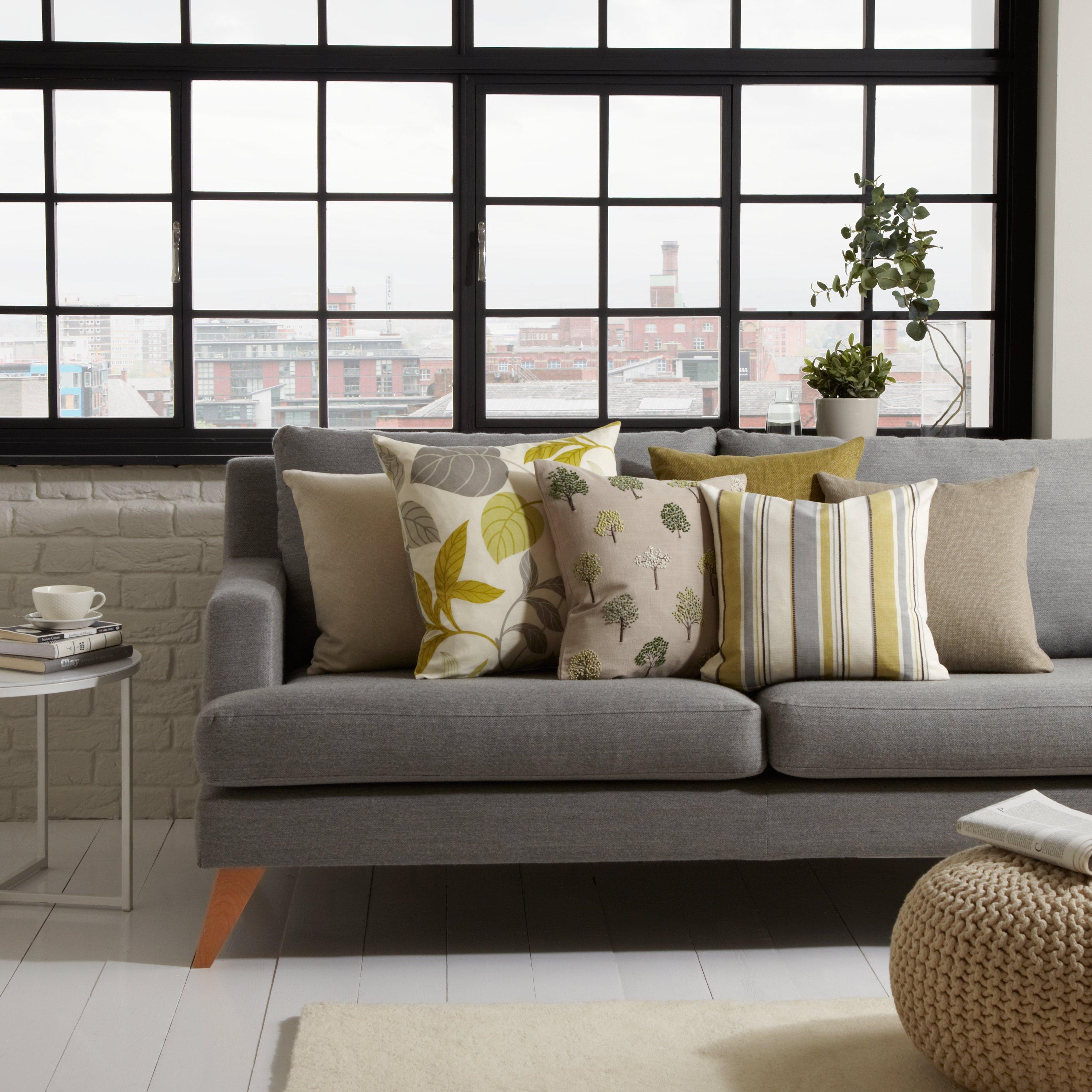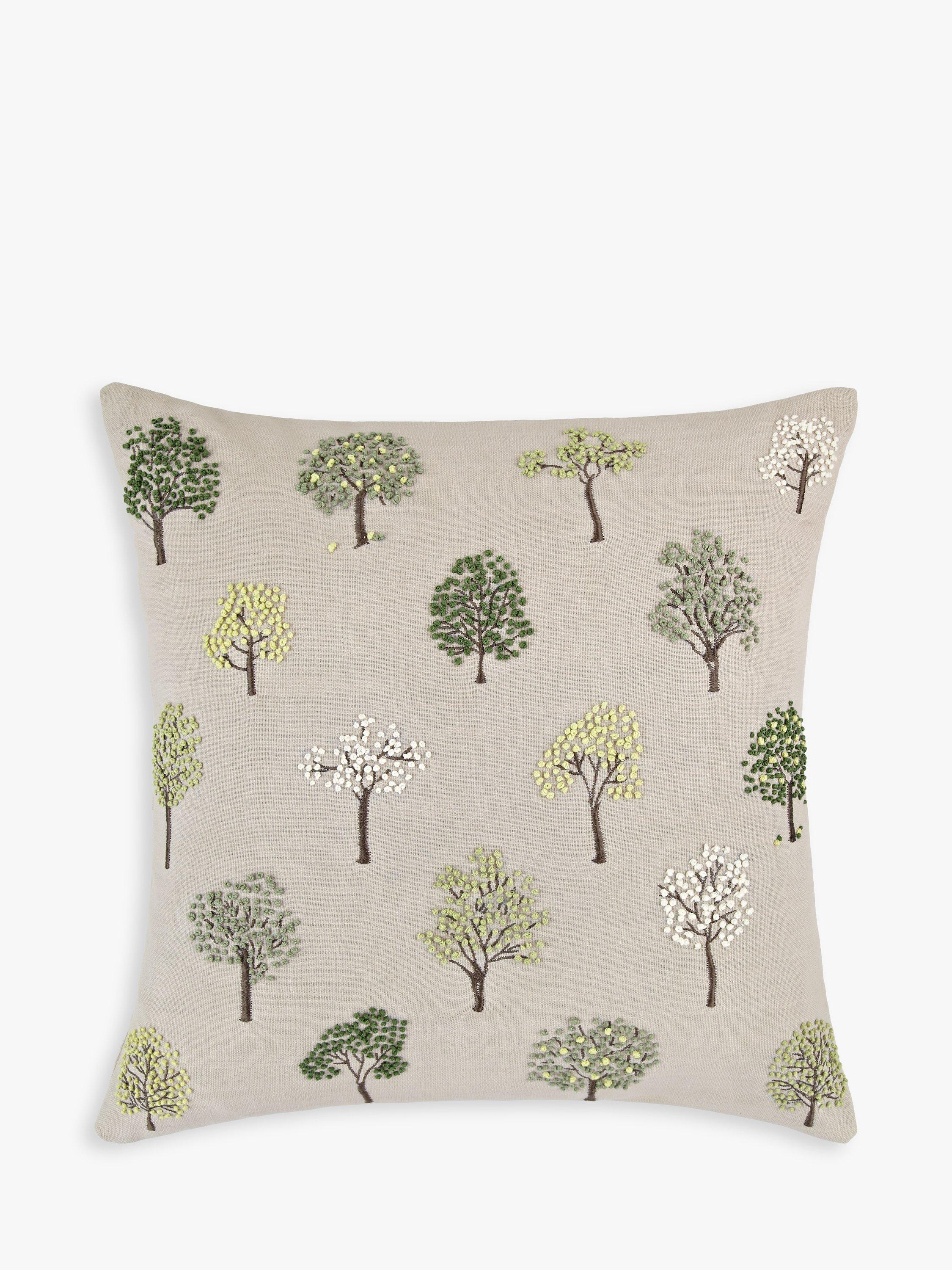 A beautiful cushion, scattered with embroidered trees which give a lovely 3D effect against the cotton background.