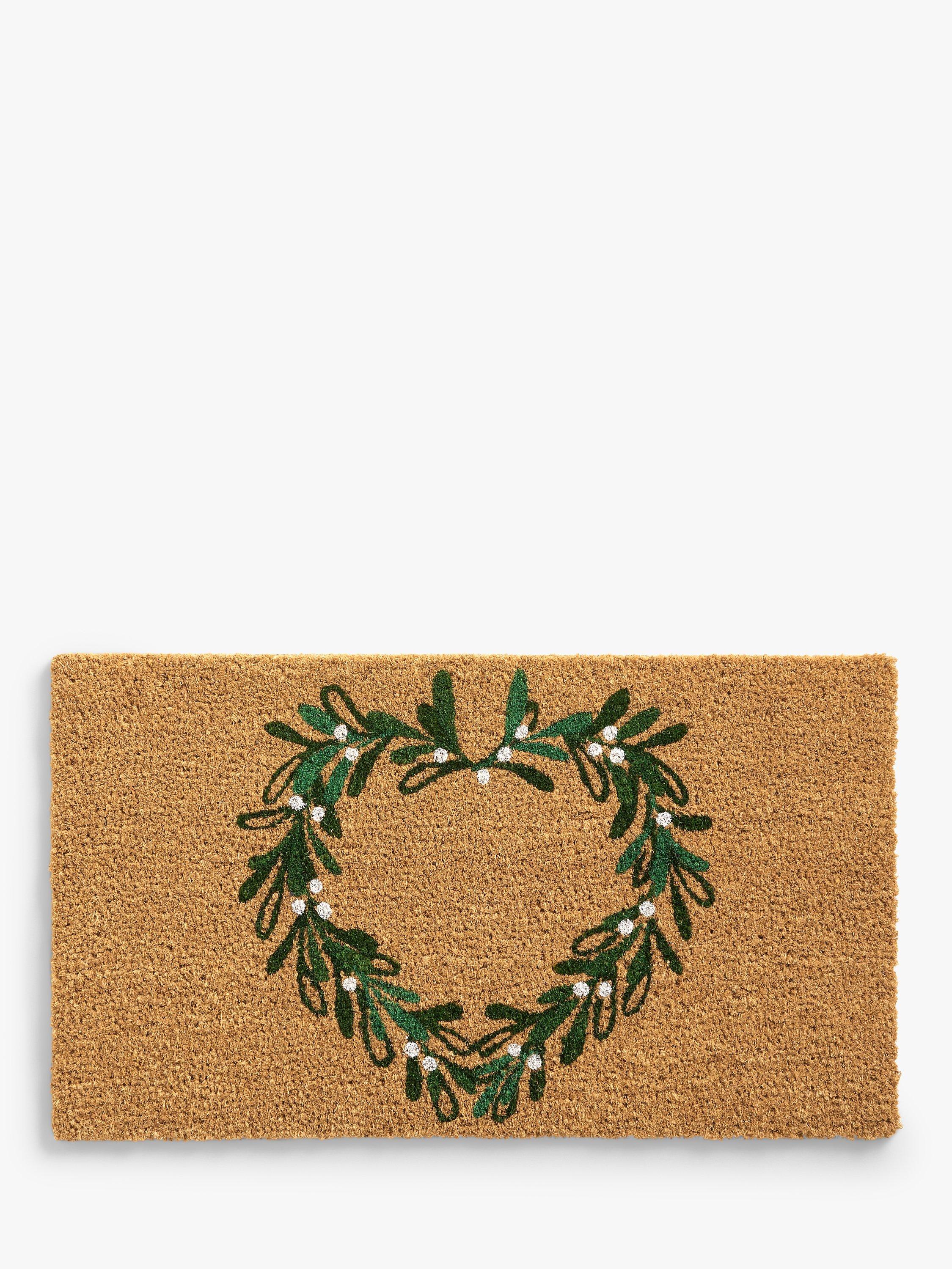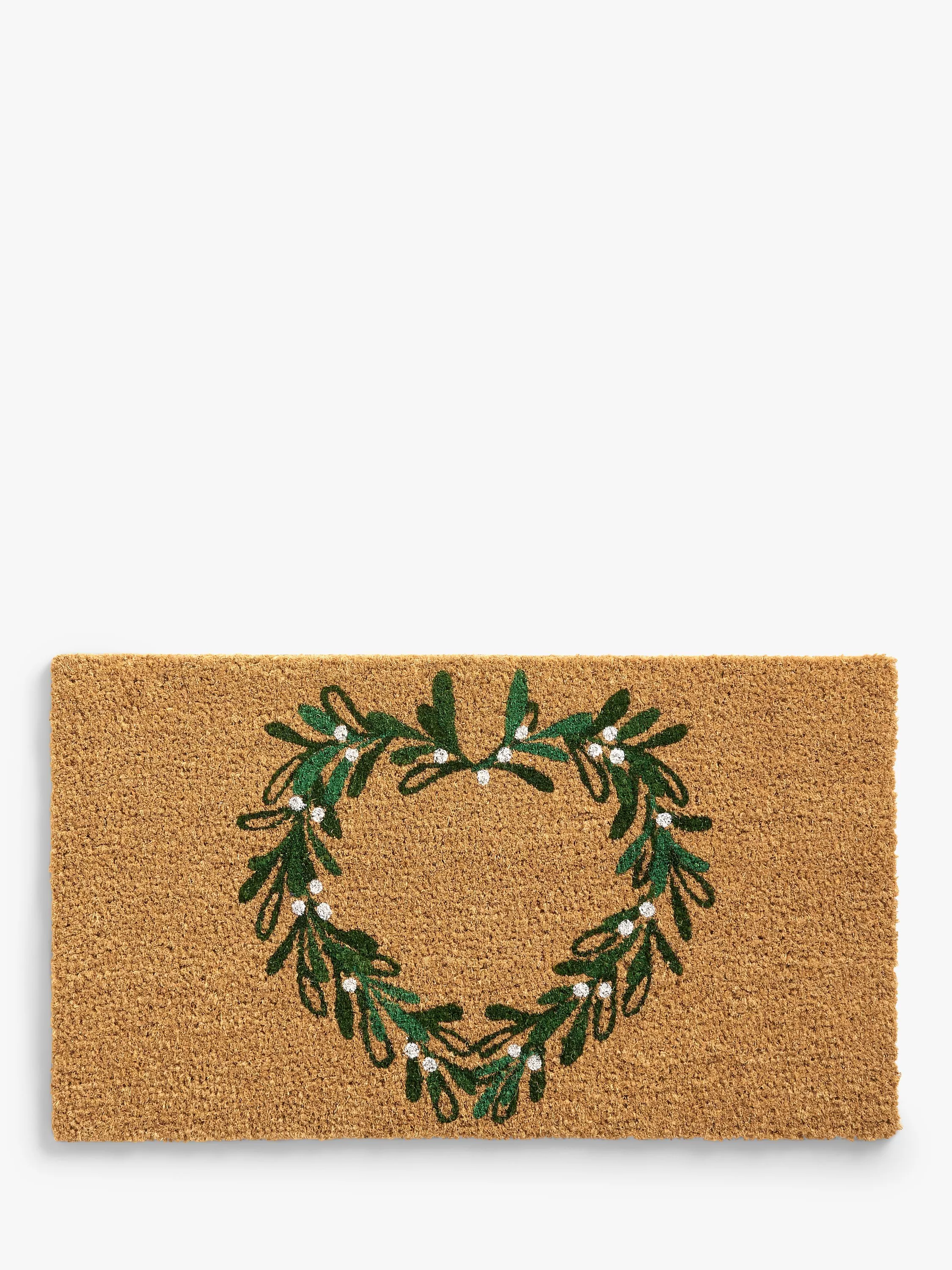 Add some romantic and festive charm to your porch or front door this Christmas with our charming mistletoe heart door mat.