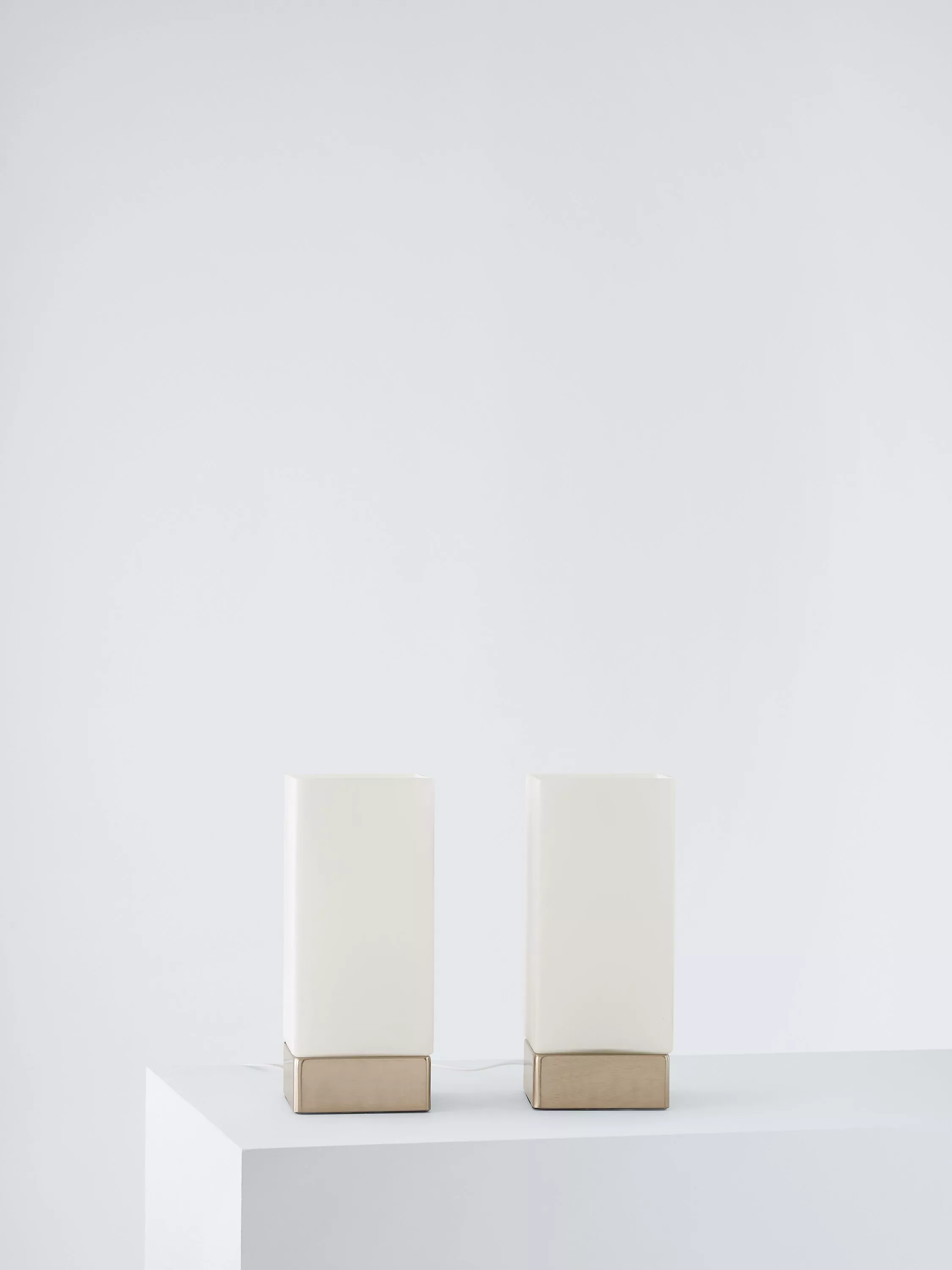 Sold as a convenient set of two, our Mitch column table lamps allow you to choose your preferred level of light. The sturdy steel base boasts a three-stage touch functionality. Tap once to turn it on, then again to make it brighter, and tap one more time to turn it off. Ideal for your bedside, the opal glass construction enhances a warm wash of light.