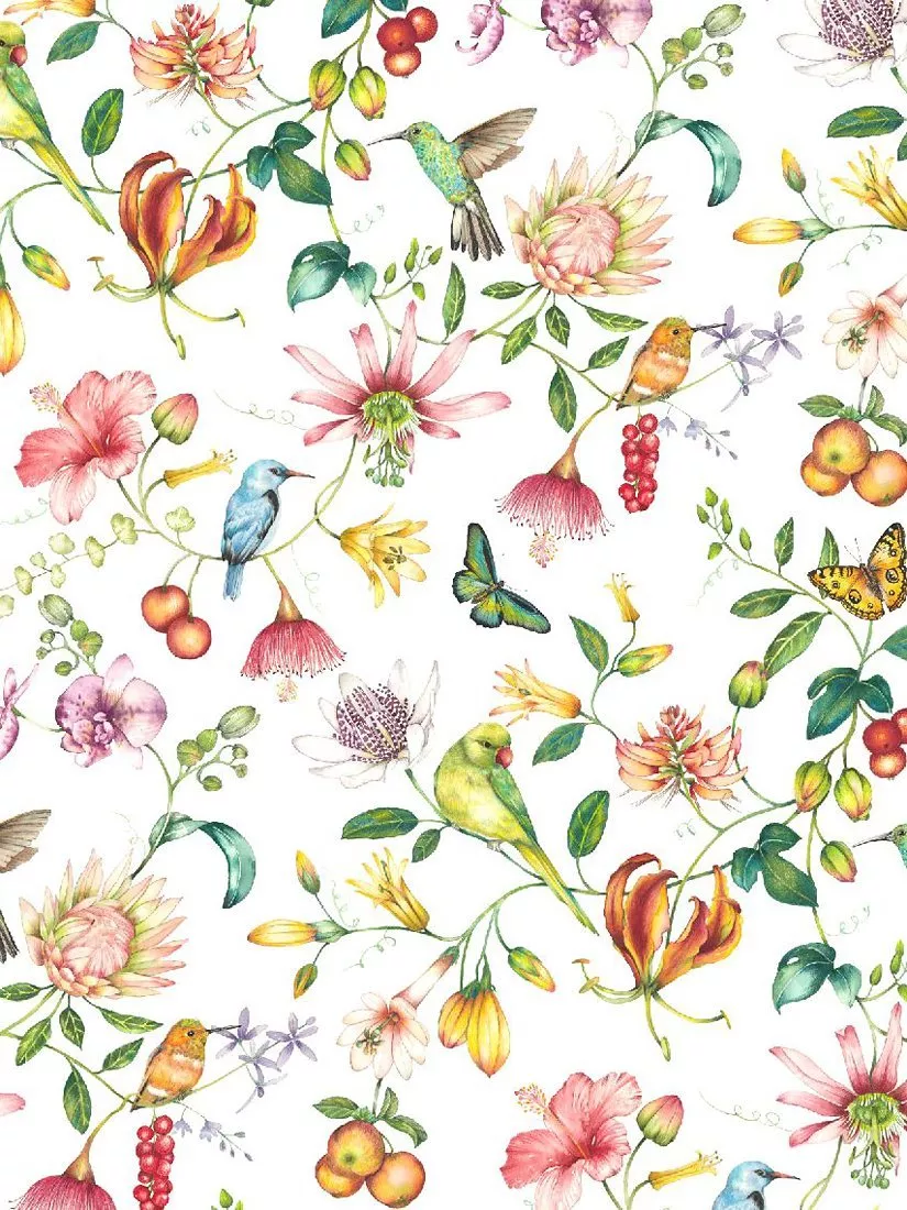Made from pure cotton for a quality finish, this fabric makes a statement with its beautiful birds and flowers print and can be used for dressmaking and craft projects.
