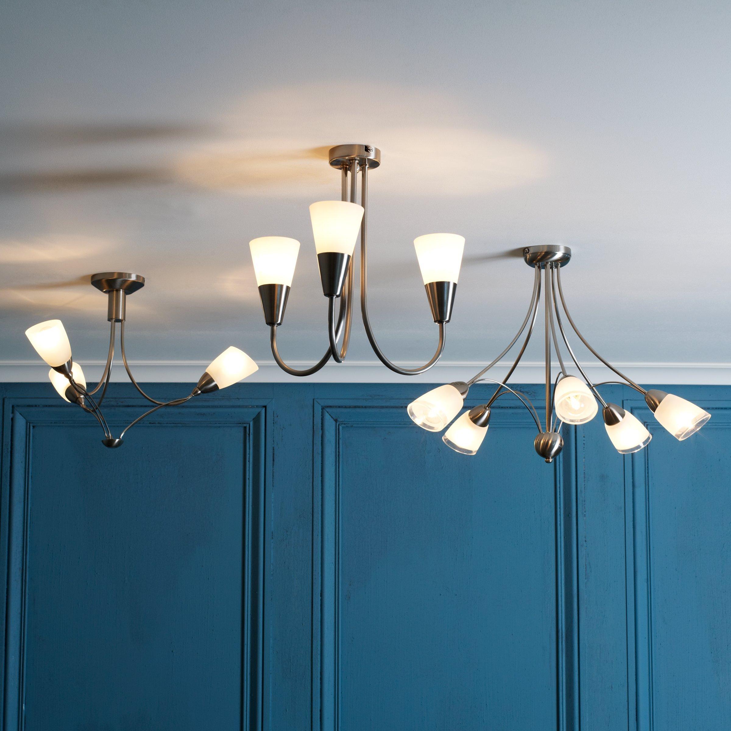 Thanks to five arms that fan out from the centre, this sculptural ceiling light will spread light around your room. It's made from metal with opal glass shades and available in a choice of finishes.