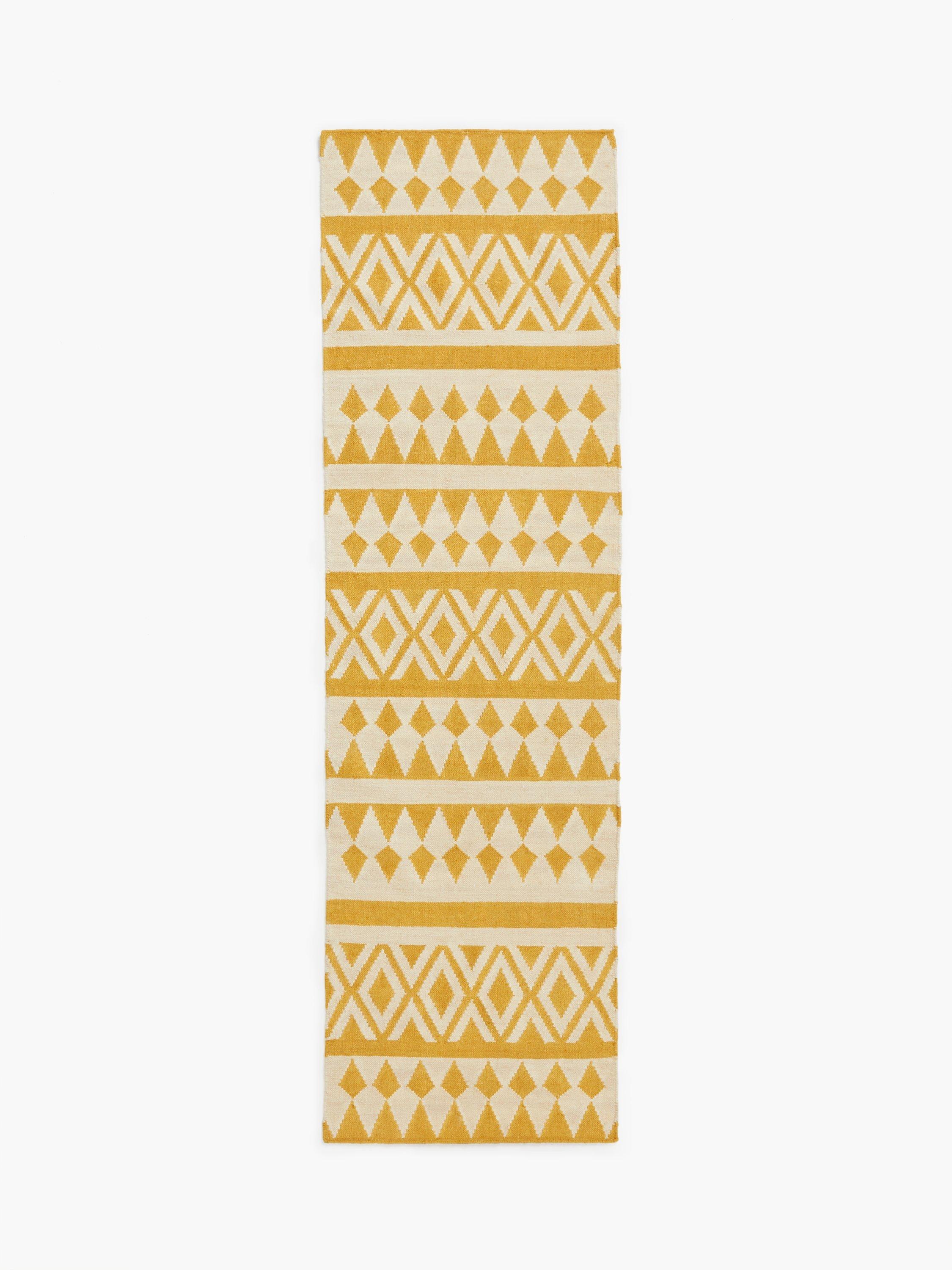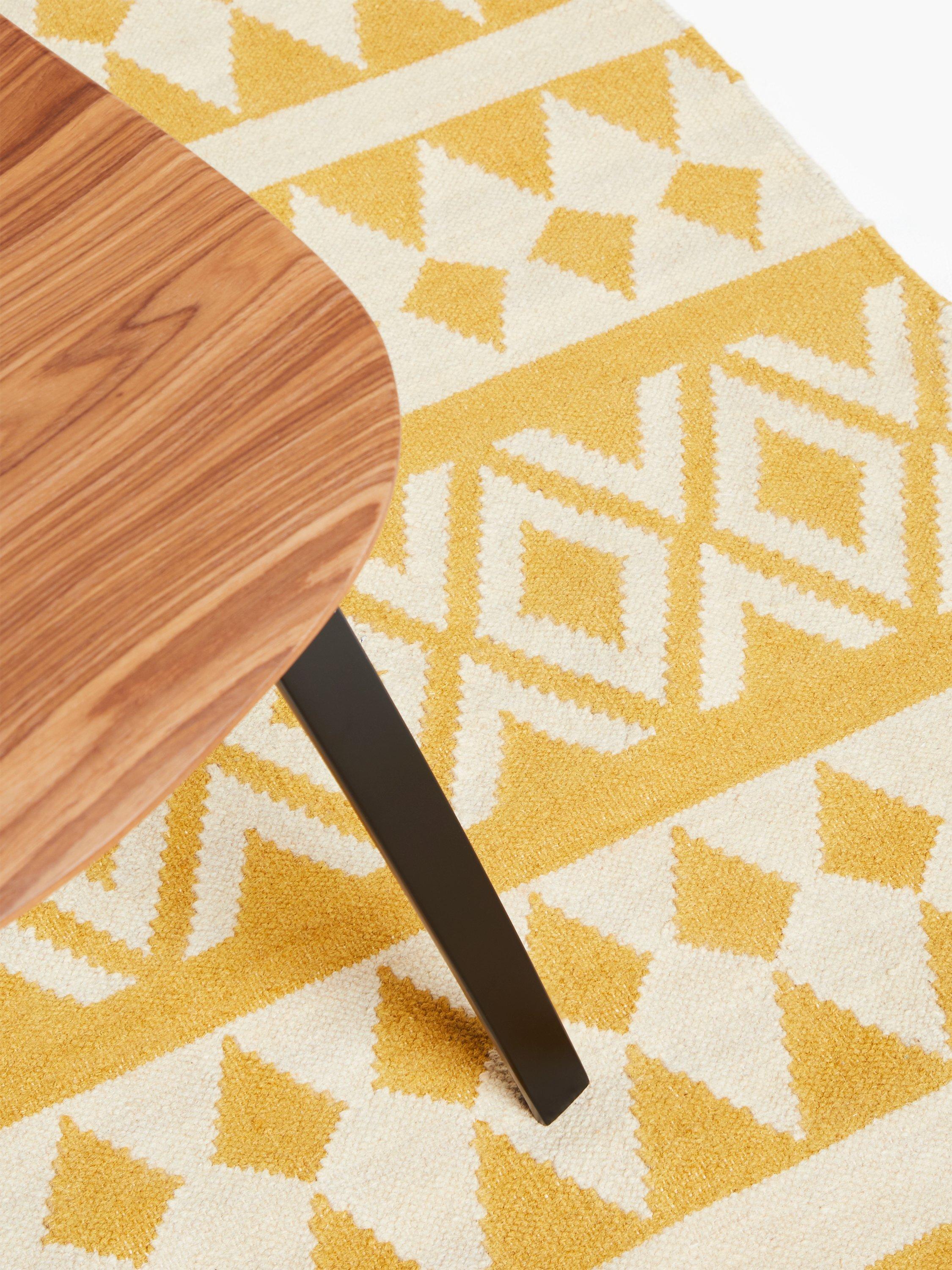 Inspired by geometric patterns, this rug is hand-woven using a wool-rich blend with a touch of cotton for a soft yet durable finish.