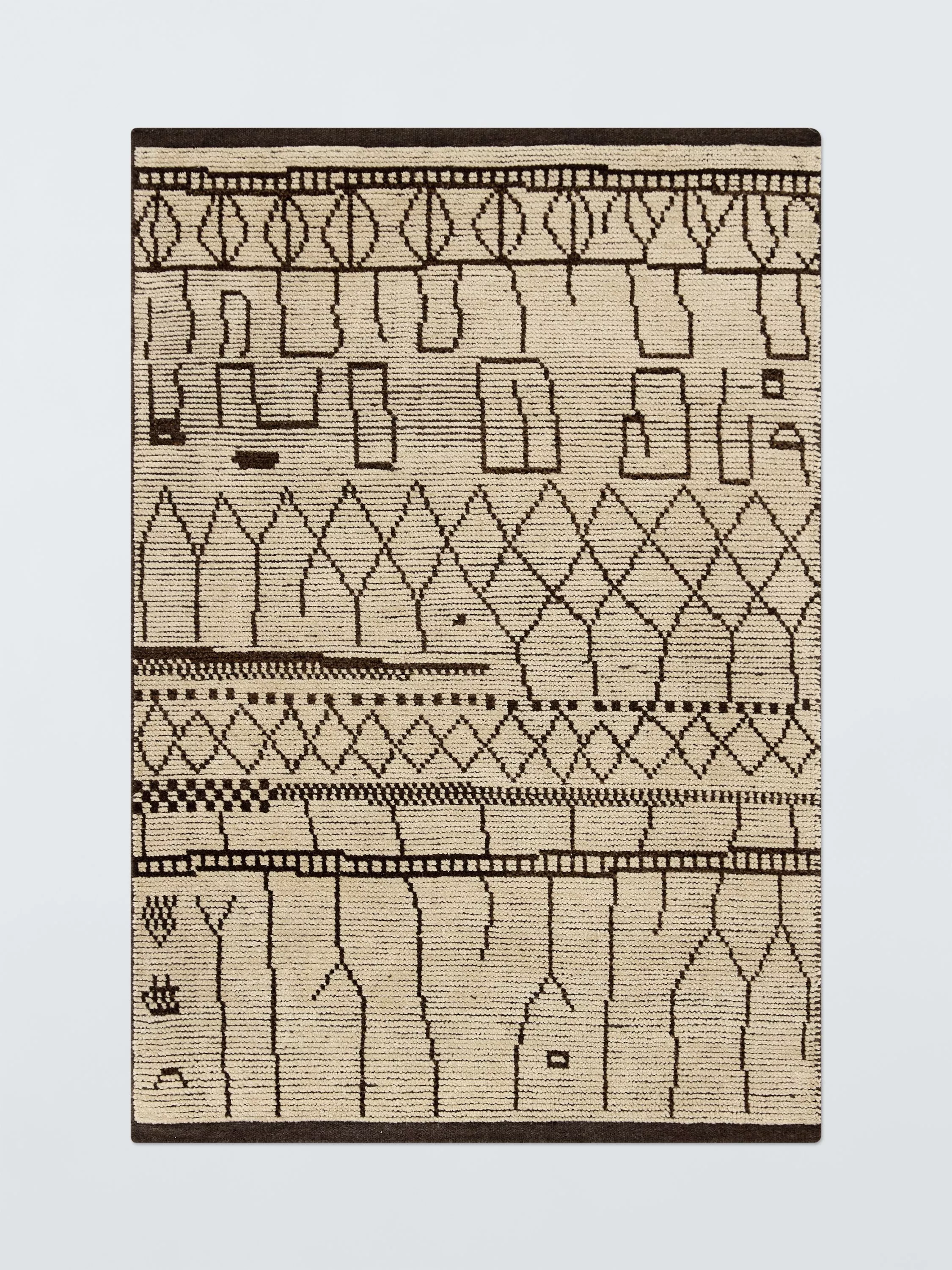 Taking the age-old Berber design and creating an abstract interpretation makes this rug a beautiful blend of tradition and artistry. Knotted by hand, the wool-rich pile feels soft yet strong.