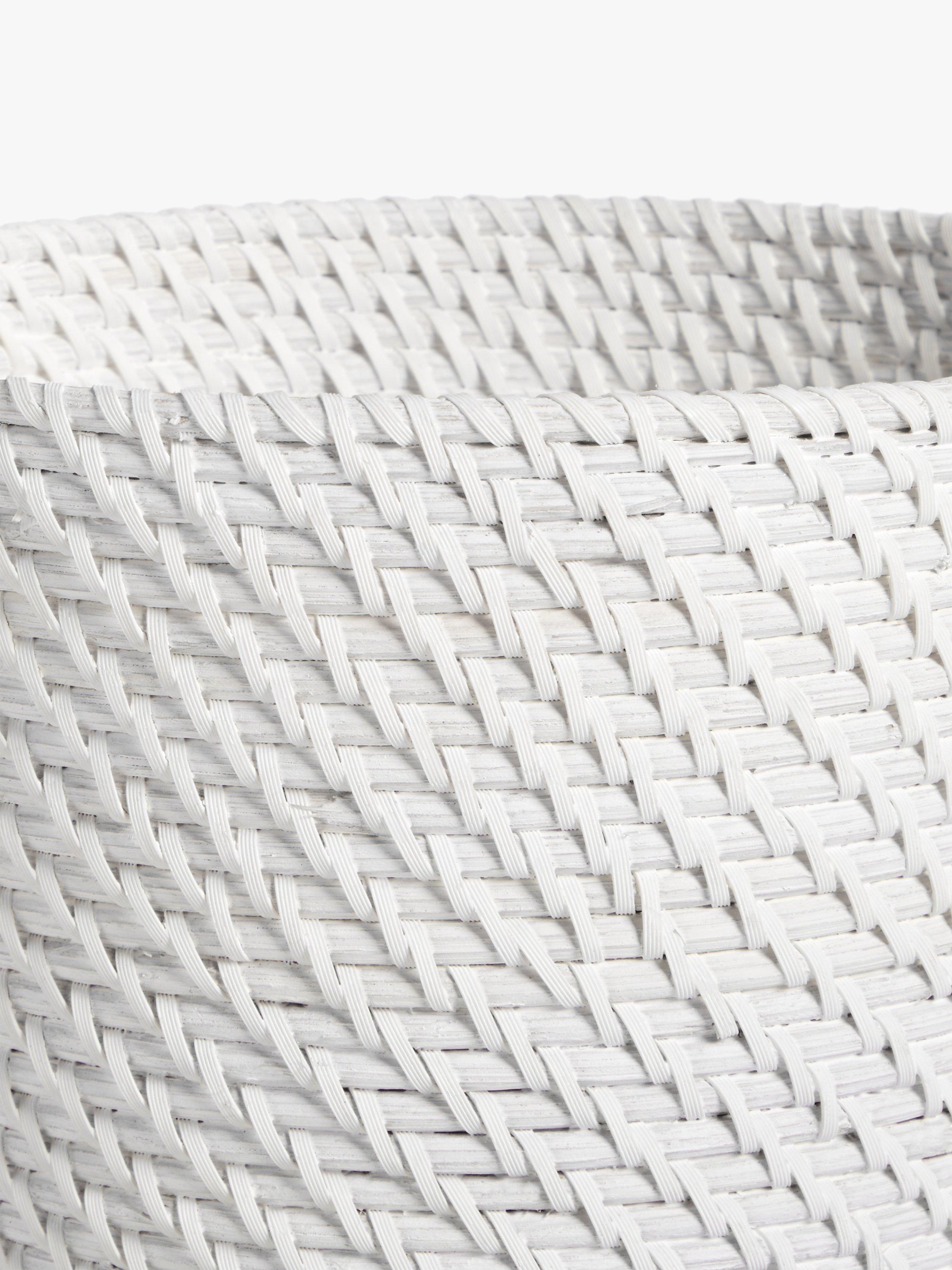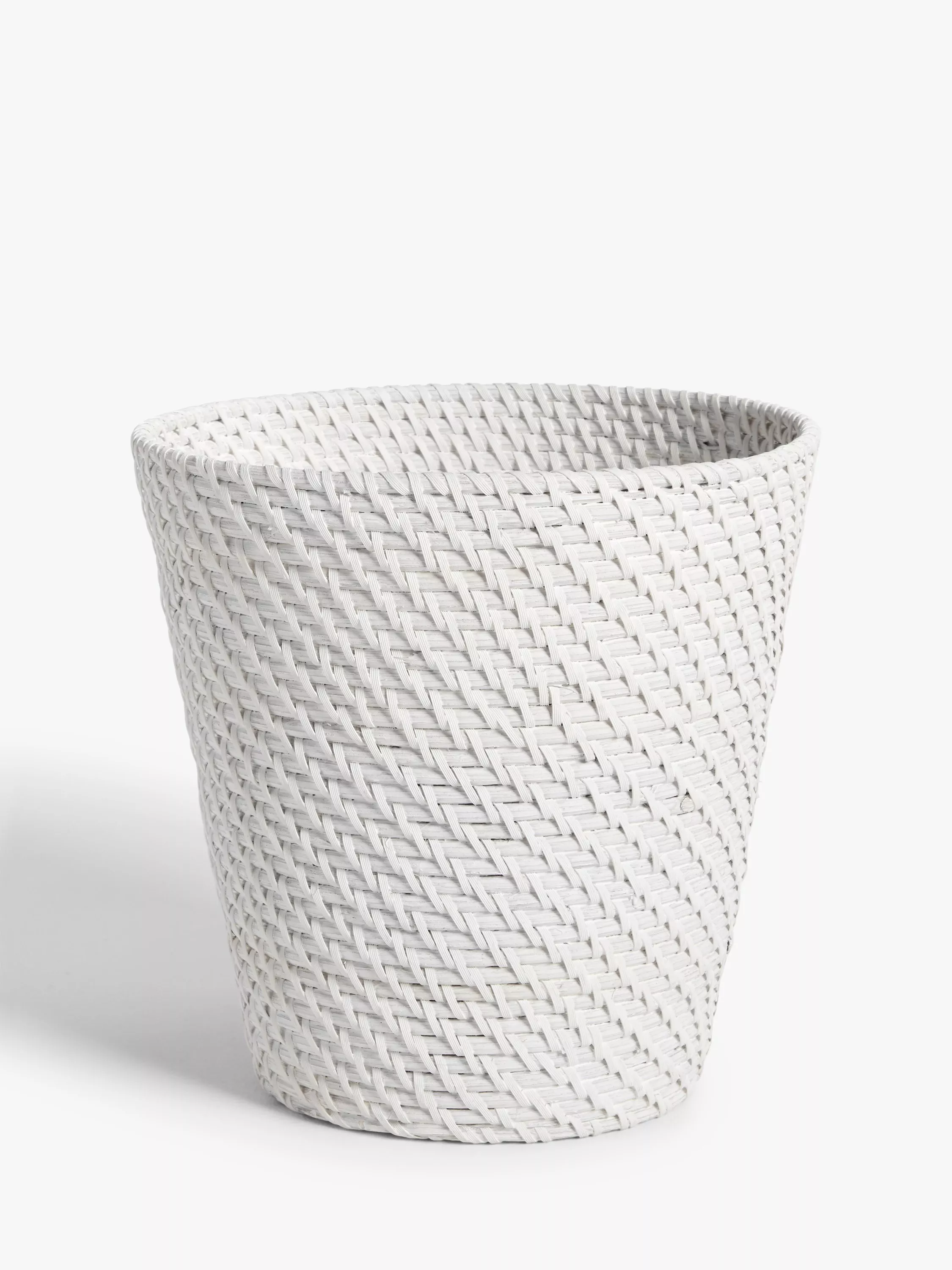 This white rattan waste paper bin will look chic and stylish in most settings from bathrooms to bedrooms.