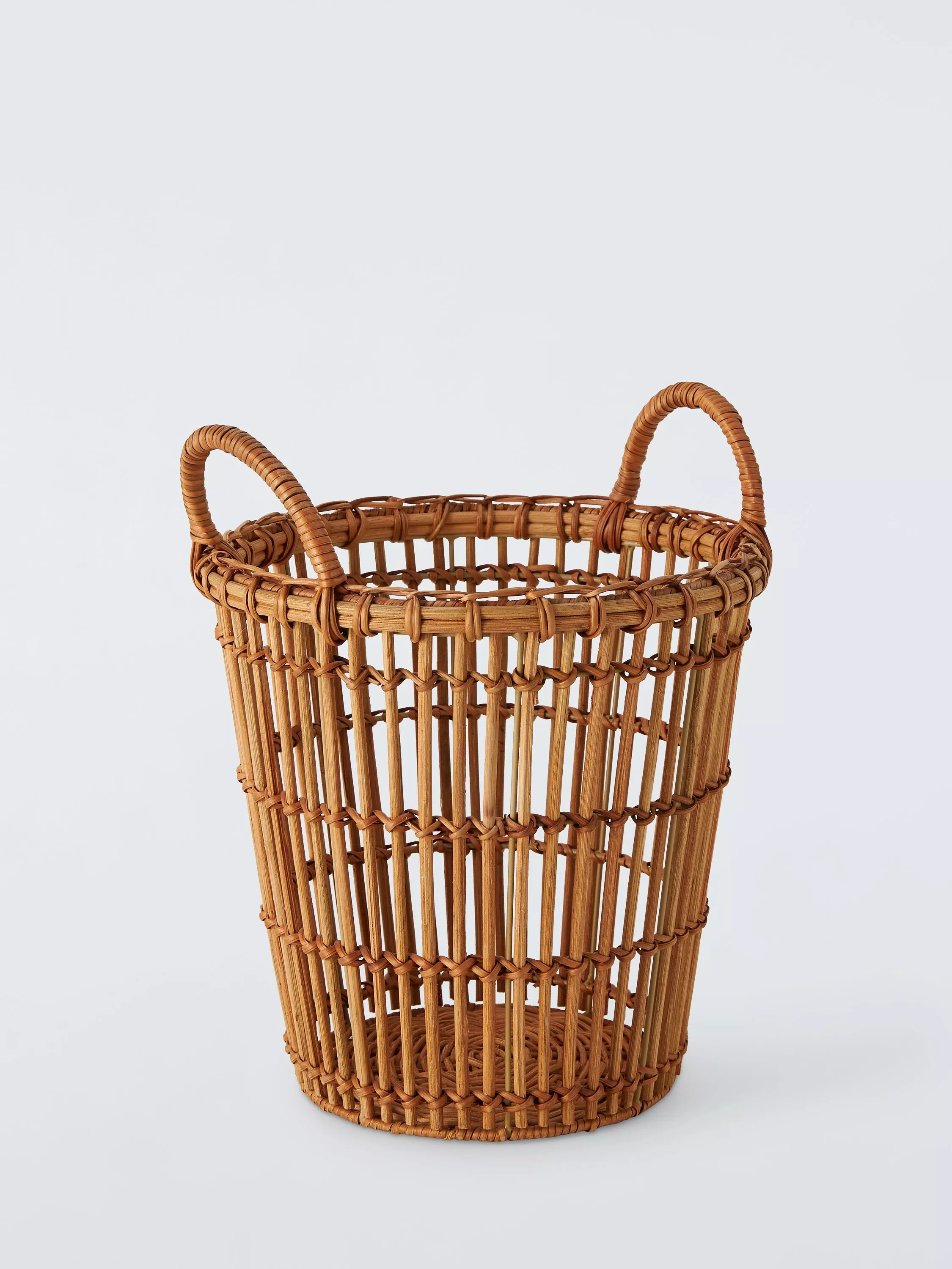This rattan waste paper bin has an open weave design and makes a useful addition to the bedroom, bathroom or home office.