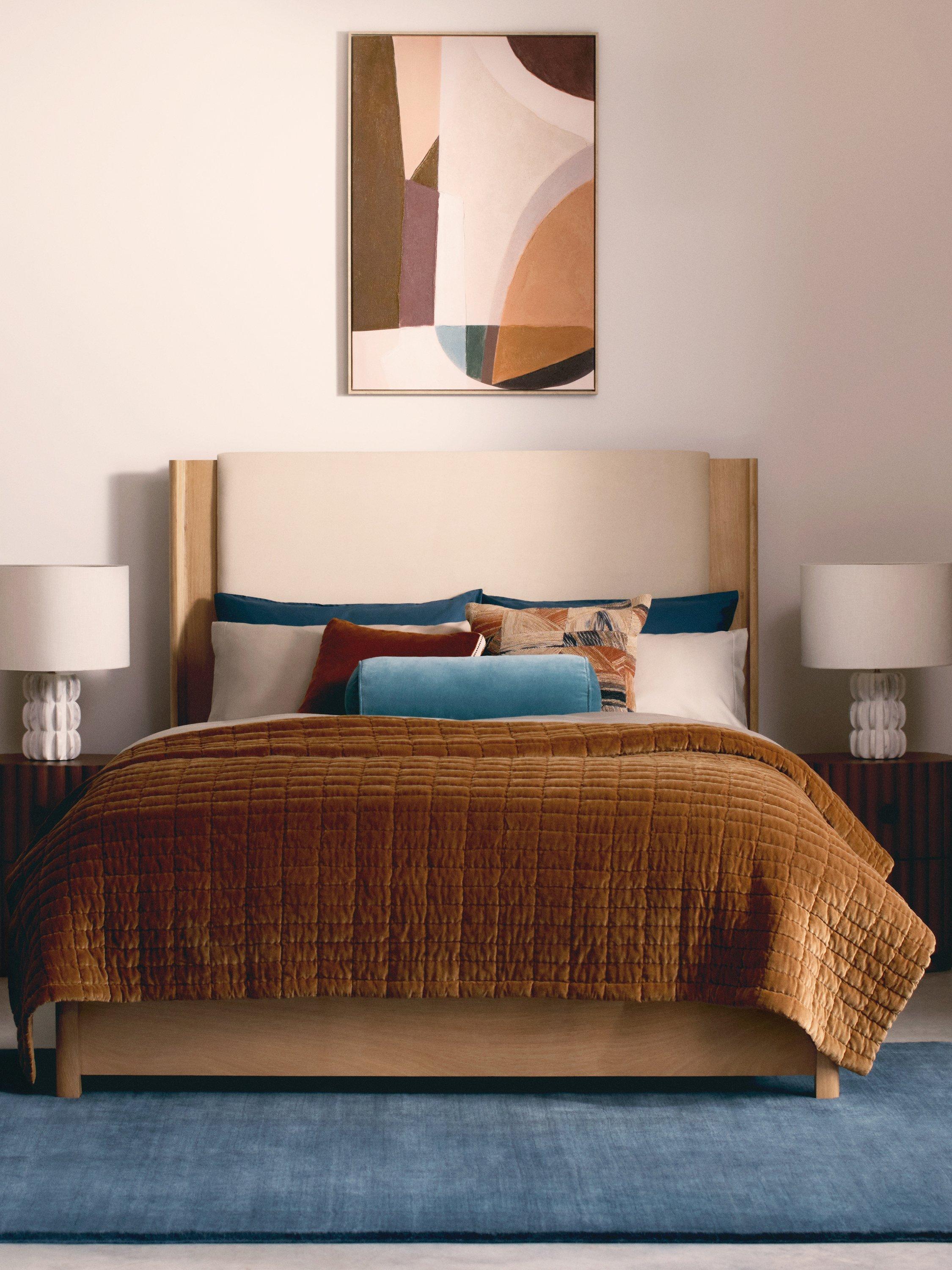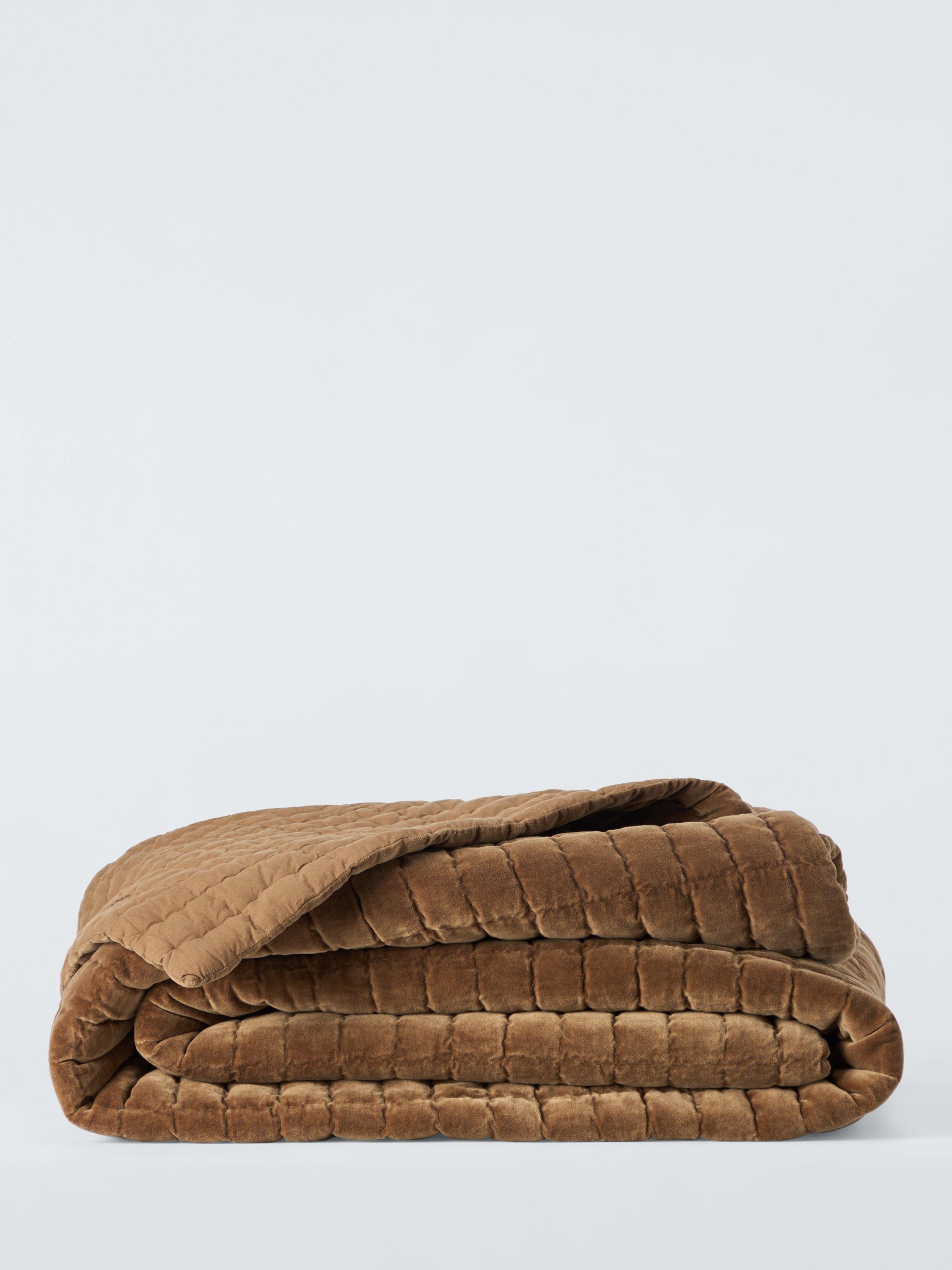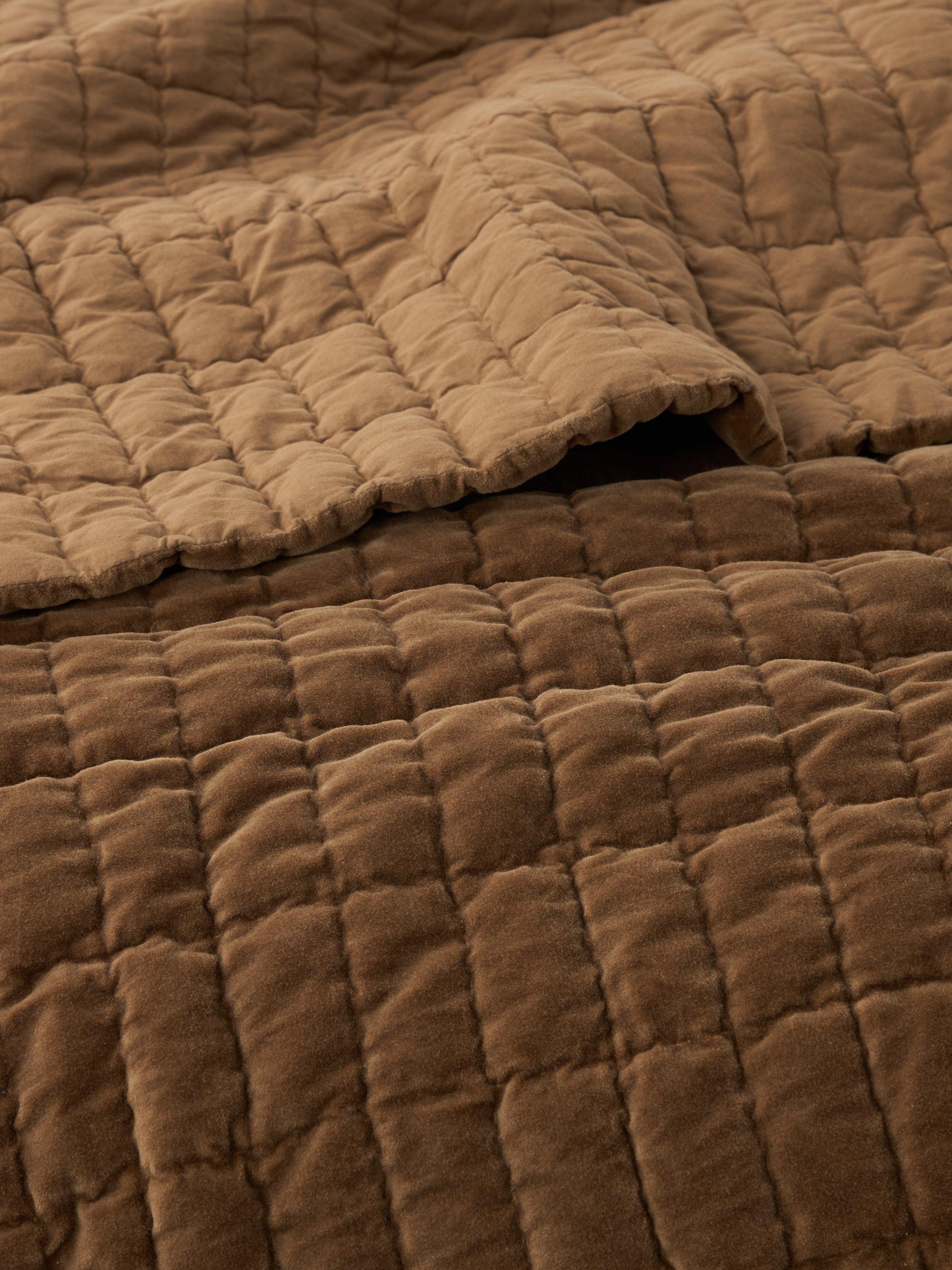 An extra later for those chilly autumn nights, this quilted bedspread is polyester filled with a cotton velvet face in a rich copper tone.