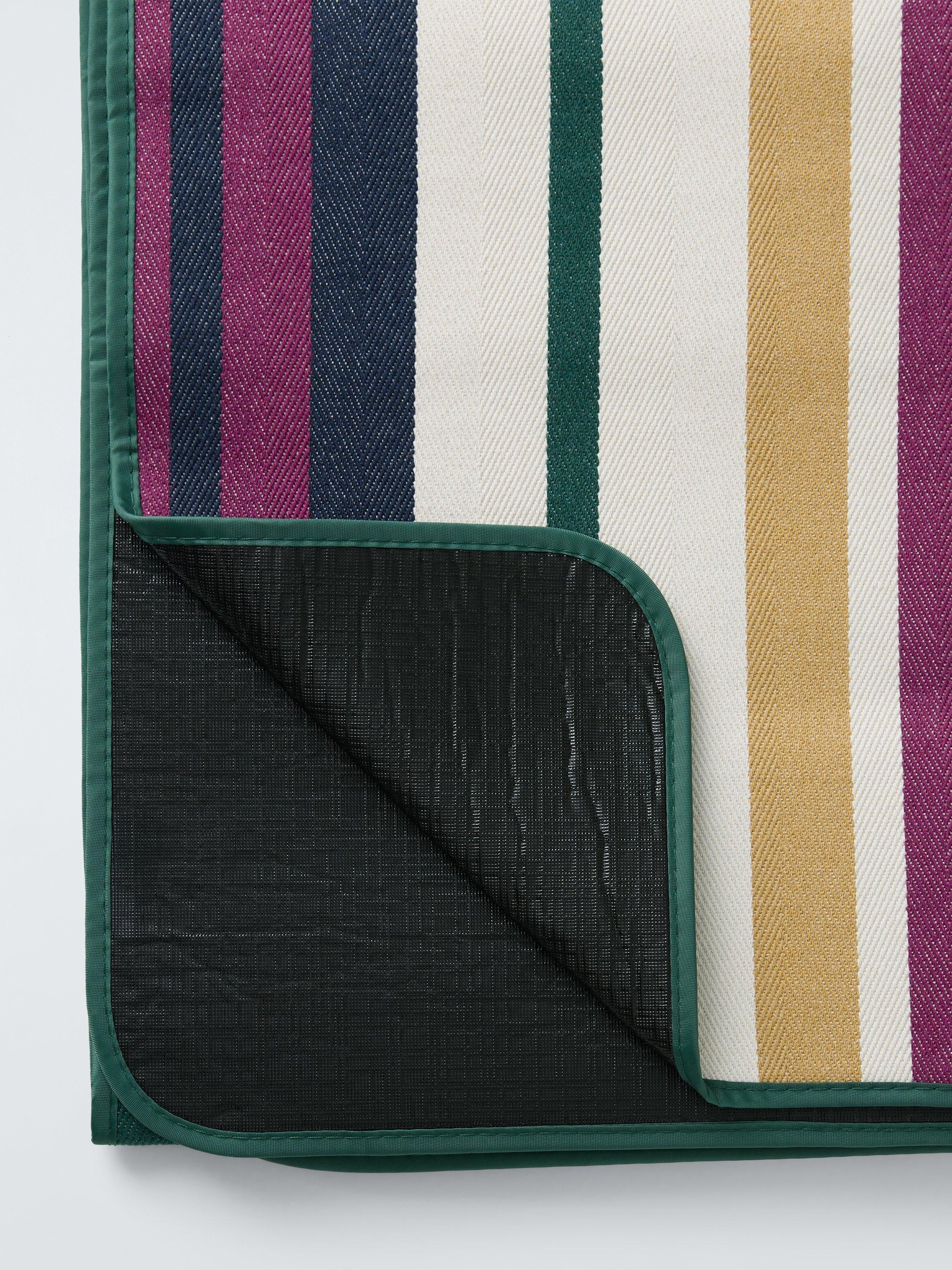 Take it with you for garden parties, festivals, picnics in the park or family days out at the beach. Woven with a modern stripe pattern, this extra-large rug rolls up neatly with a strap and has a grab handle for easy carrying.
