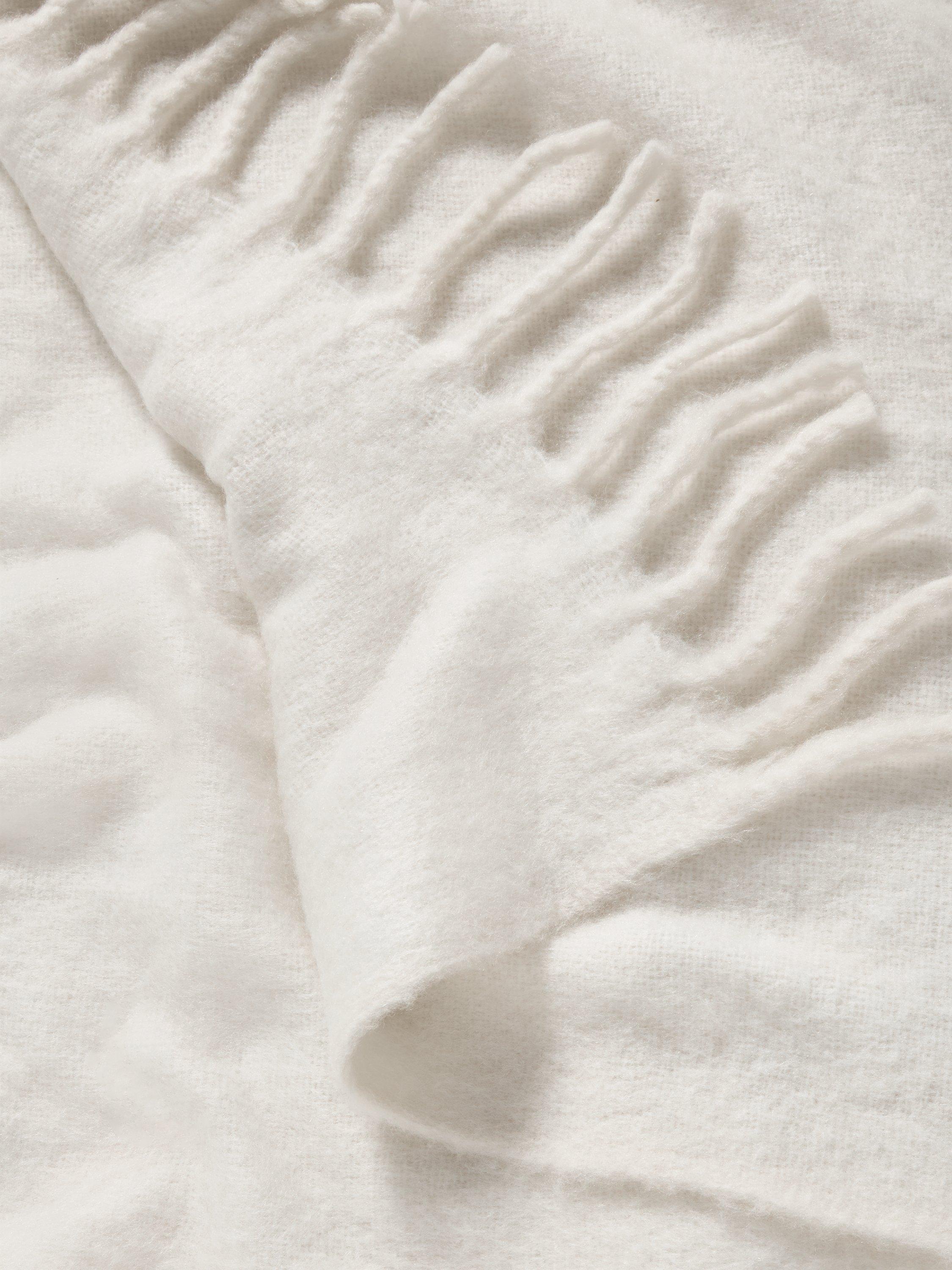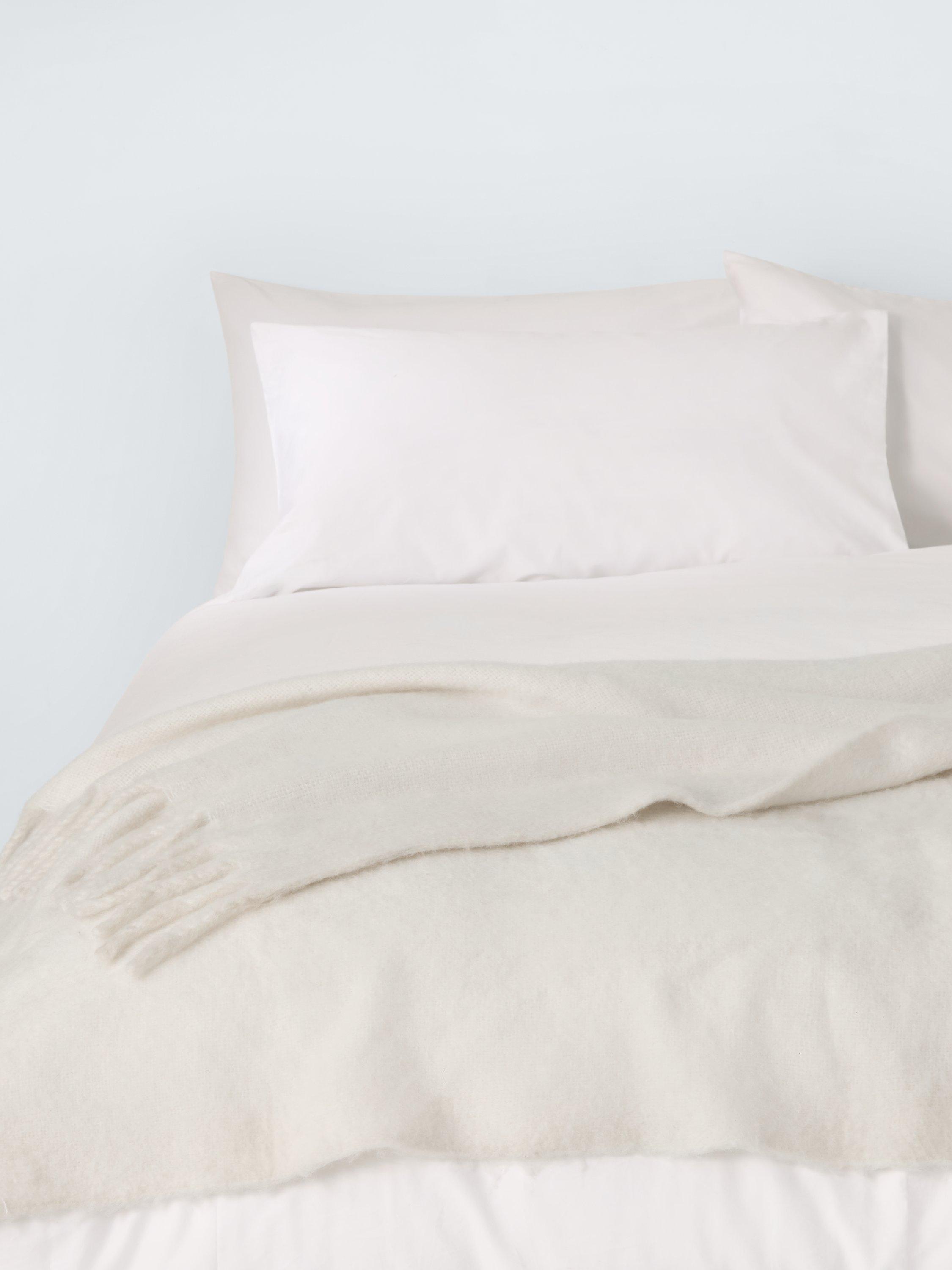 This plain-coloured throw is made with a blend of wool, polyester and hardwearing acrylic with a mohair effect and fringed edge.