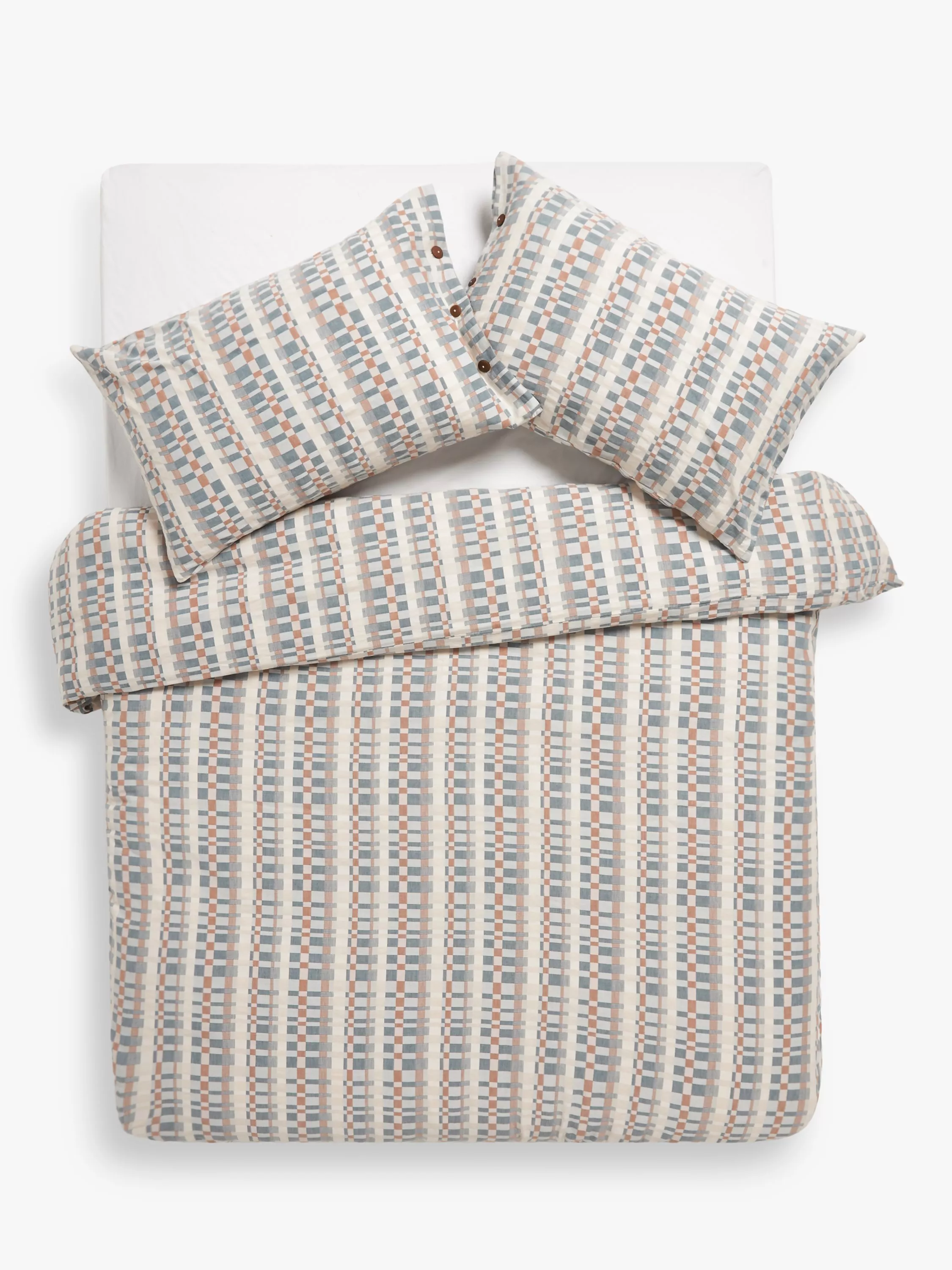 Moment Check is a moquette-inspired weave in soft, muted shades that give a restful and relaxed look to a modern bedroom. The pillowcases have wooden button fastenings for added interest.
