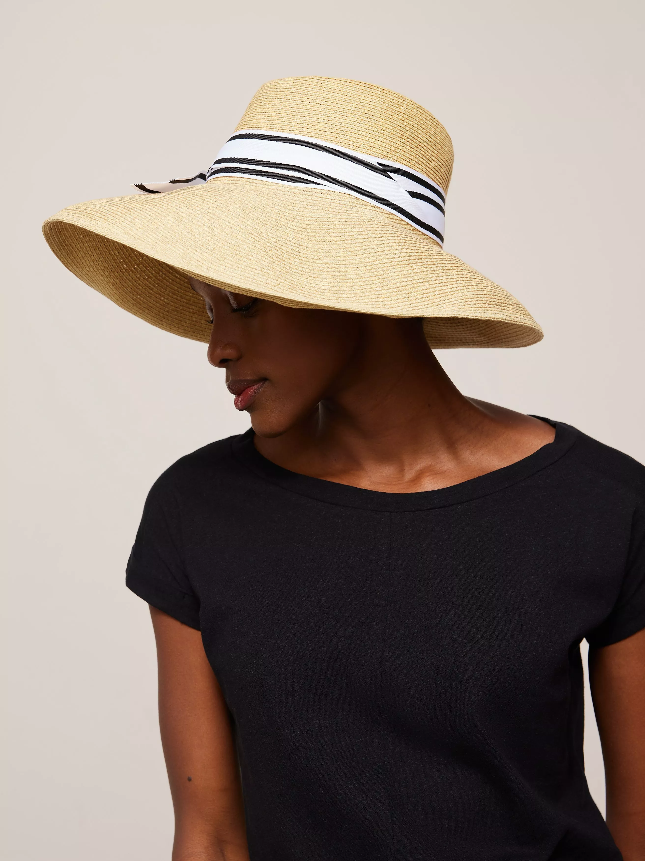 The accessory your summer styles have been calling out for, this season our floppy hat is finished with subtle stripe ribbon detailing in a lightweight straw design.