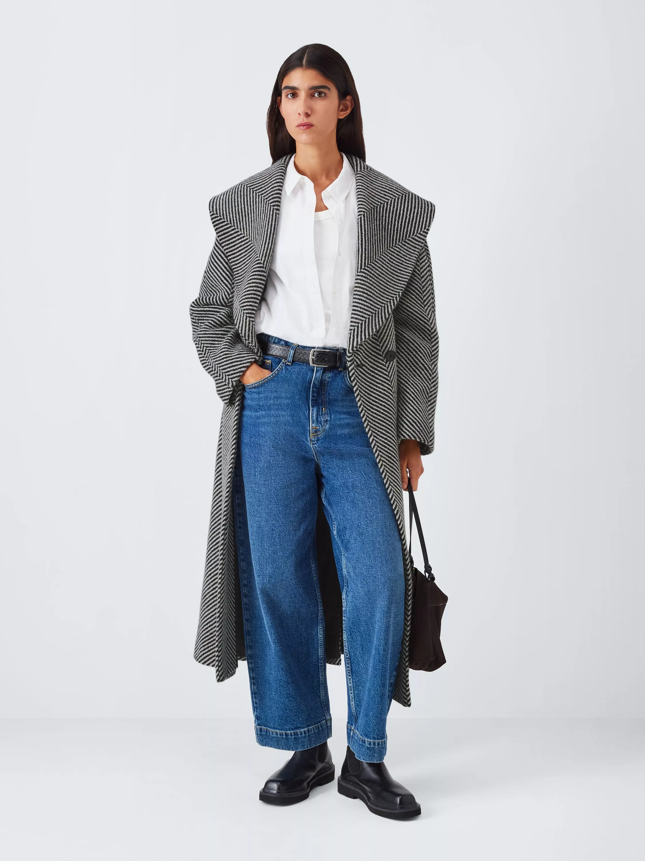 Experience classic sophistication with this John Lewis wool blend coat, featuring a striking stripe pattern.