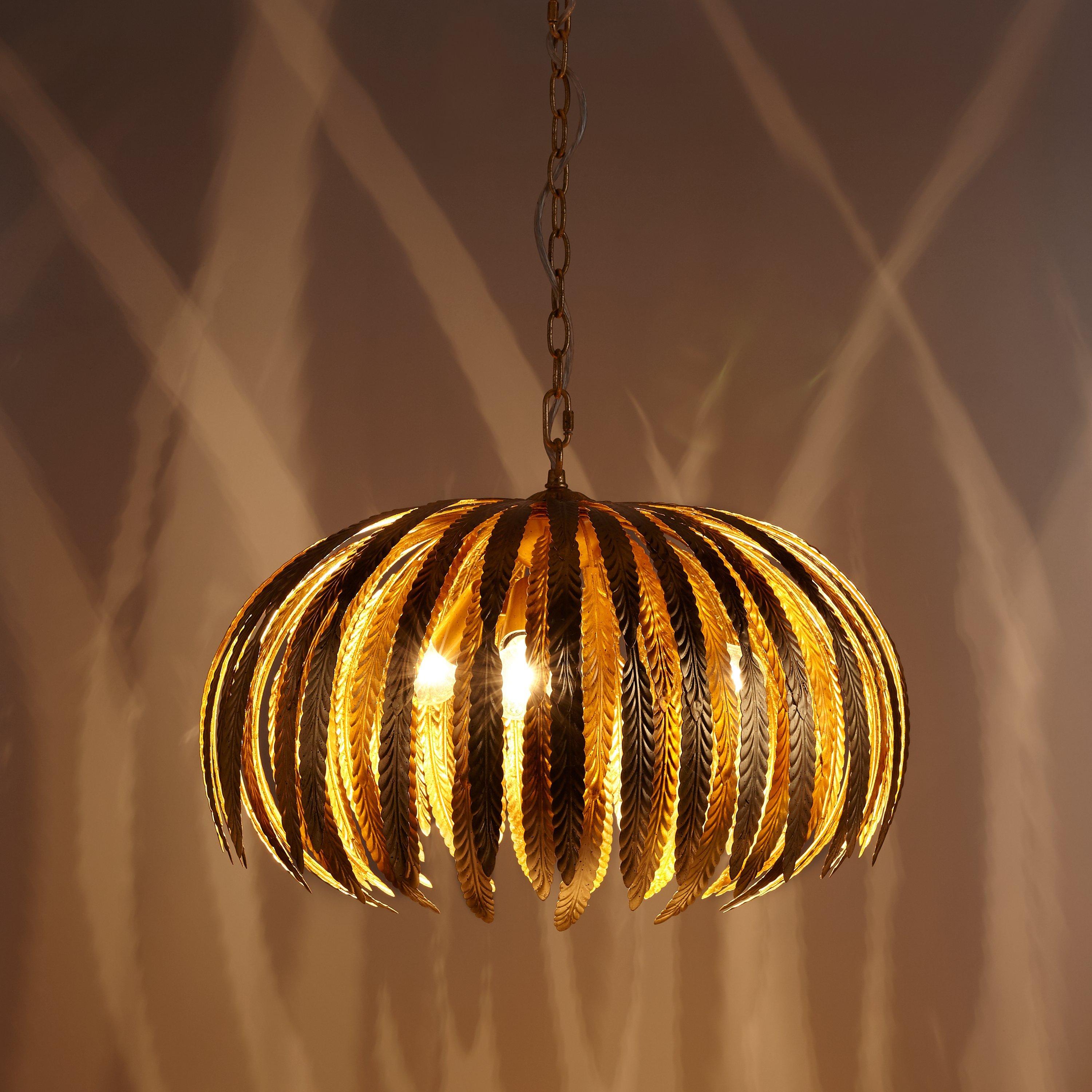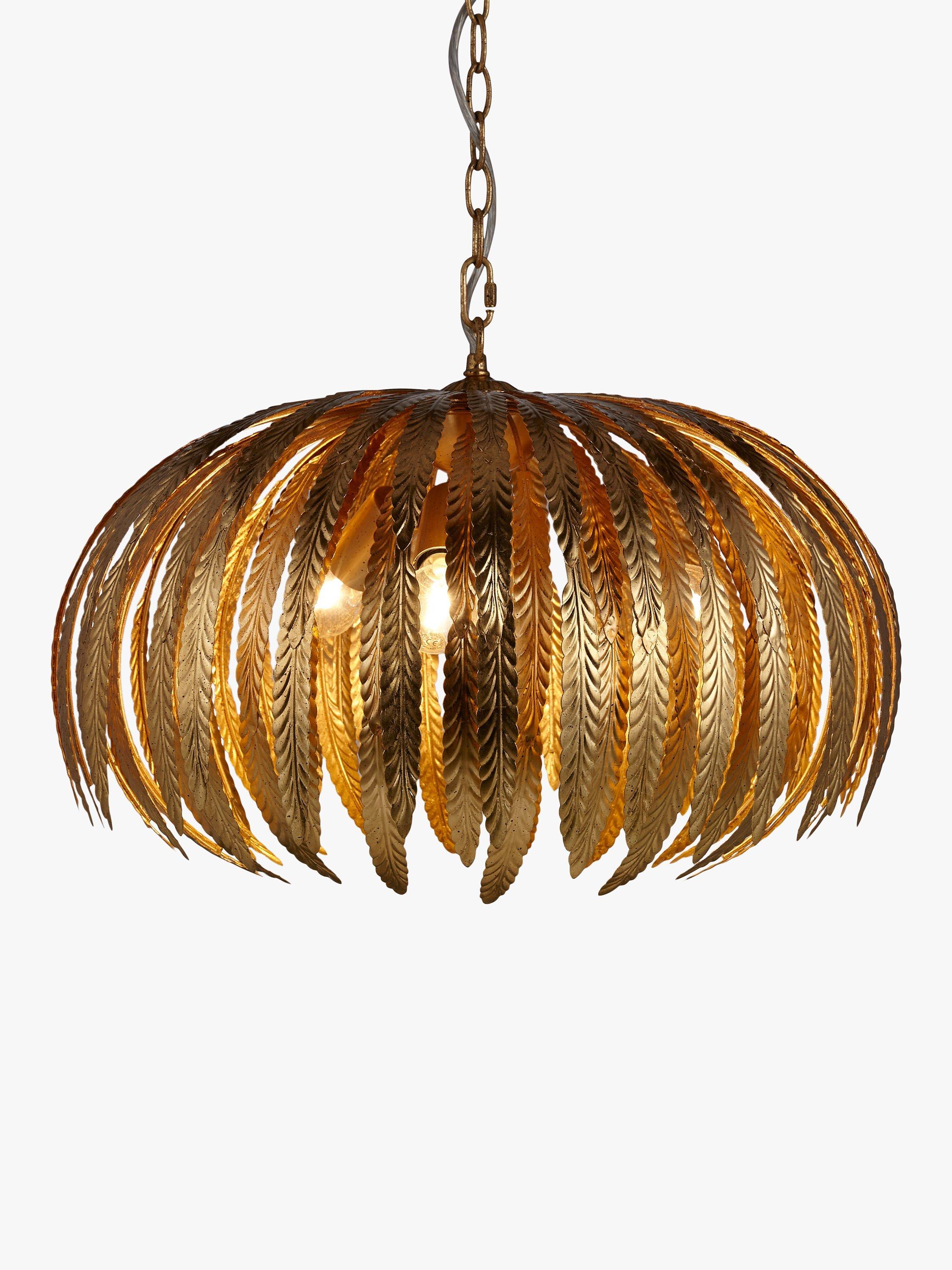 This statement, gold-effect pendant has a detailed leaf design that allows the light to shine through the gaps, creating a stunning light effect.