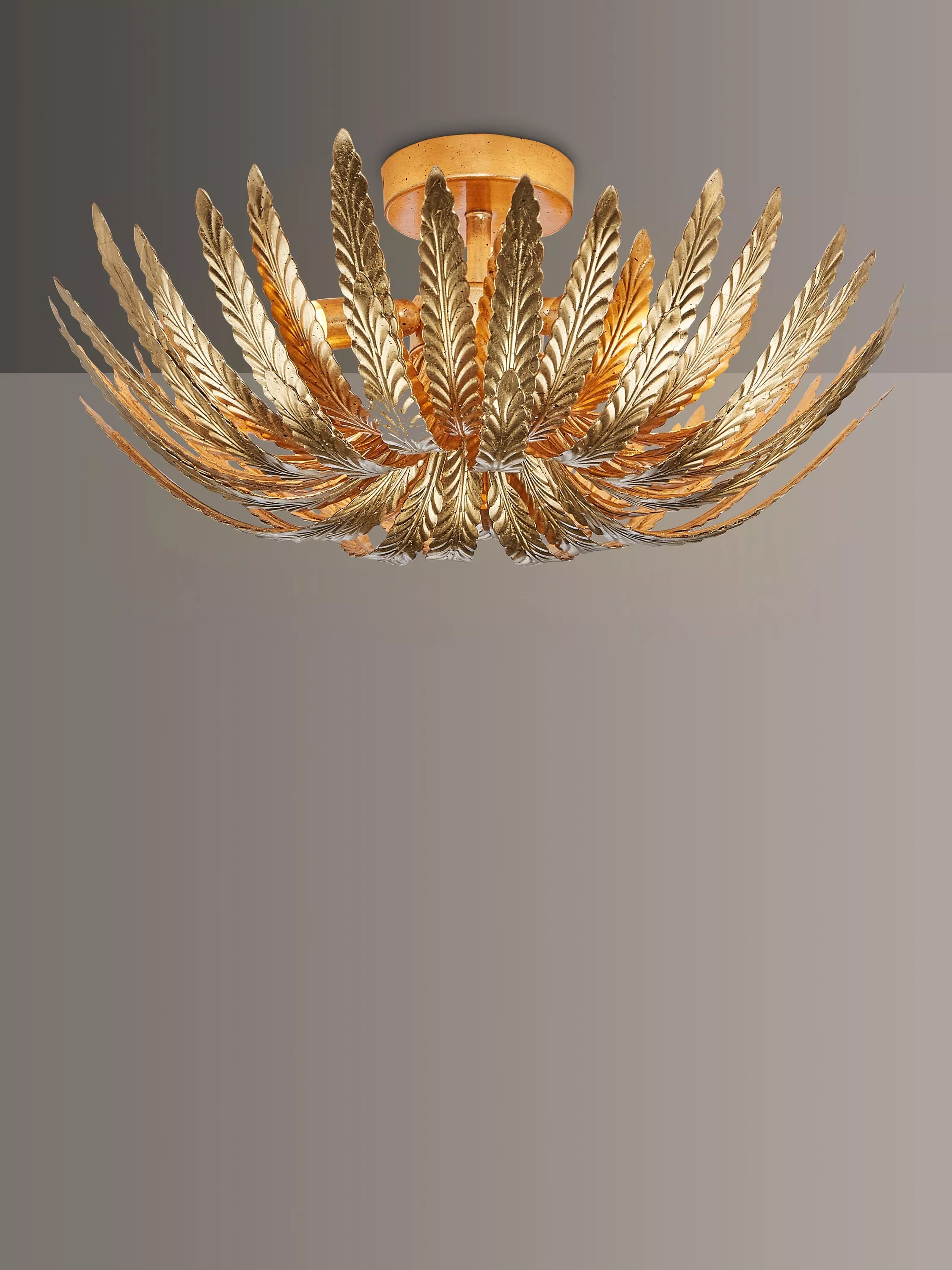 Crafted into a curved semi flush fitting with a striking leaf design, this Montserrat light will give your room a contemporary accent. Light is cast from the centre and shines through the leaves to provide a warm and impressive light effect in your space.