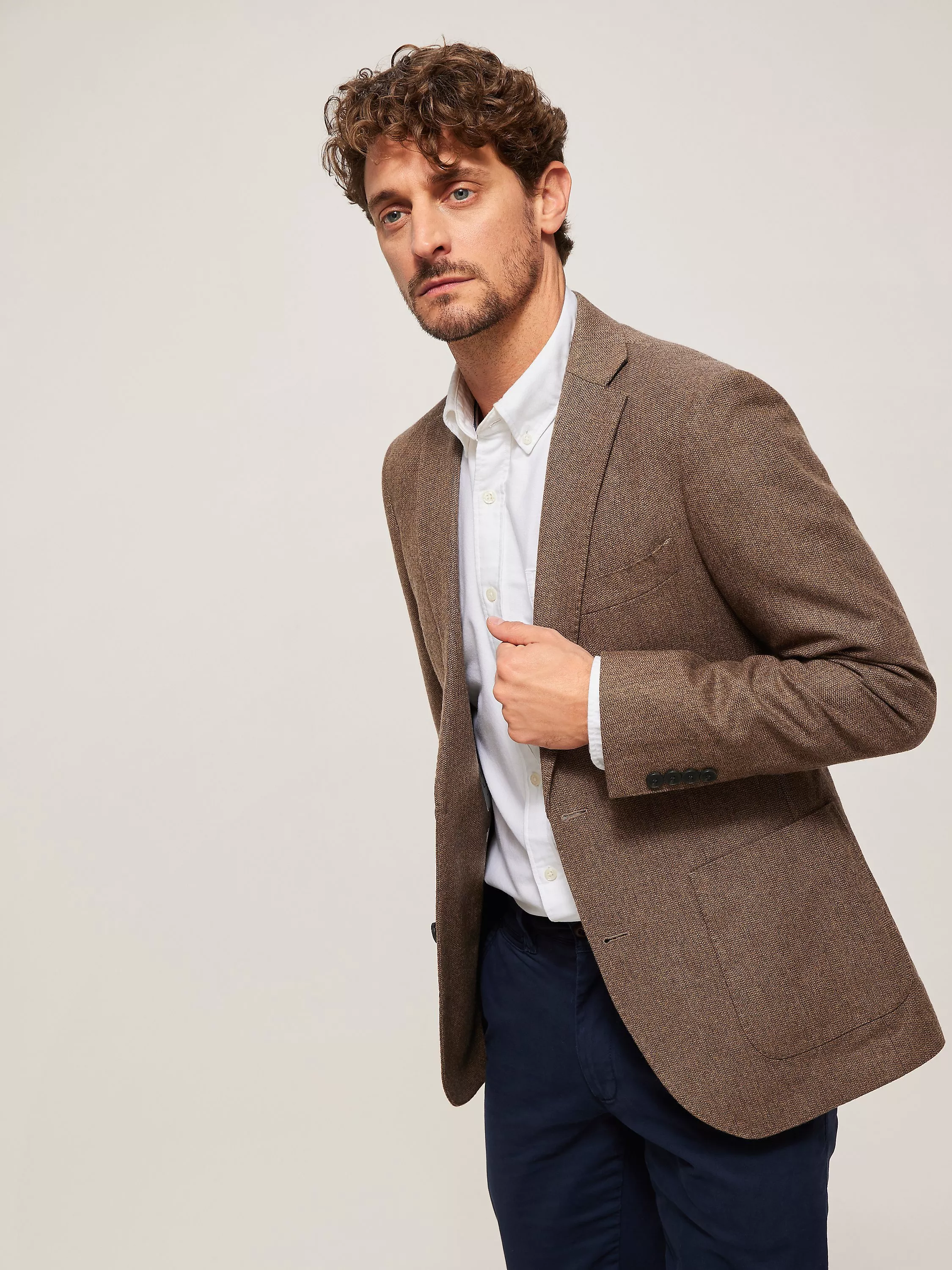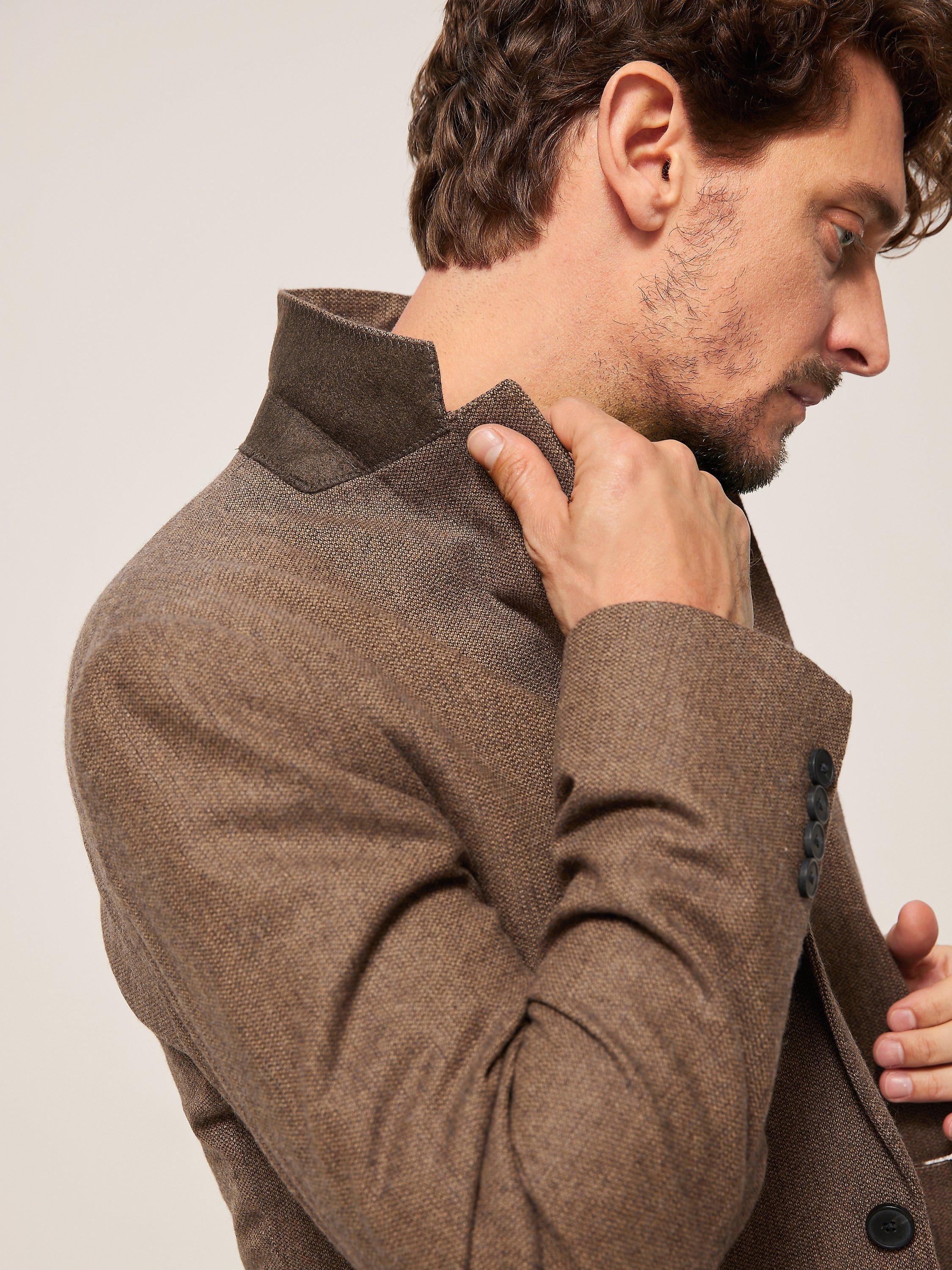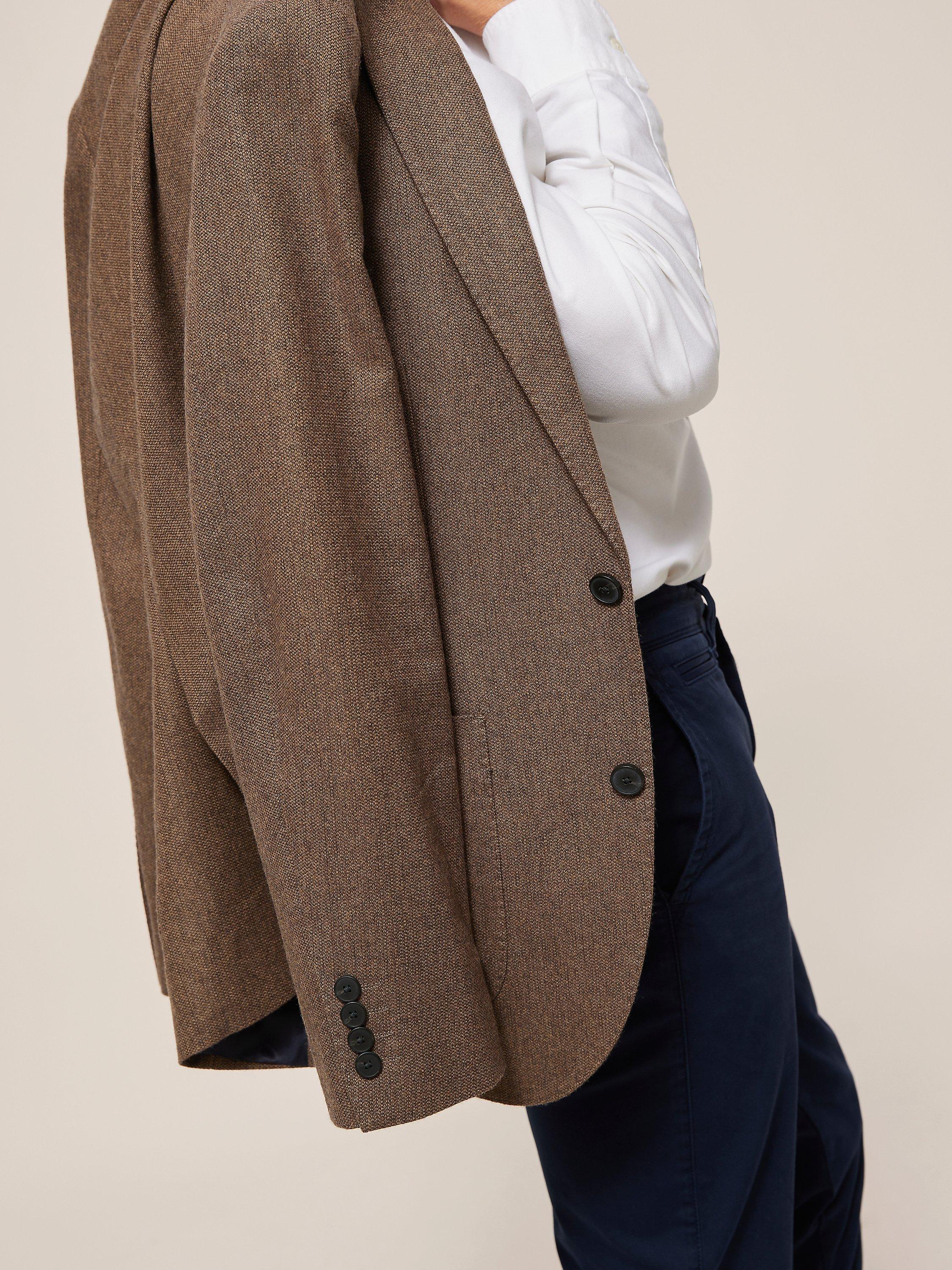 With two front patch pockets, AMF stitching on the lapel and centre back seam and an outer chest welt, this easy-wear piece is completed with four buttons on the cuff and a double back vent.