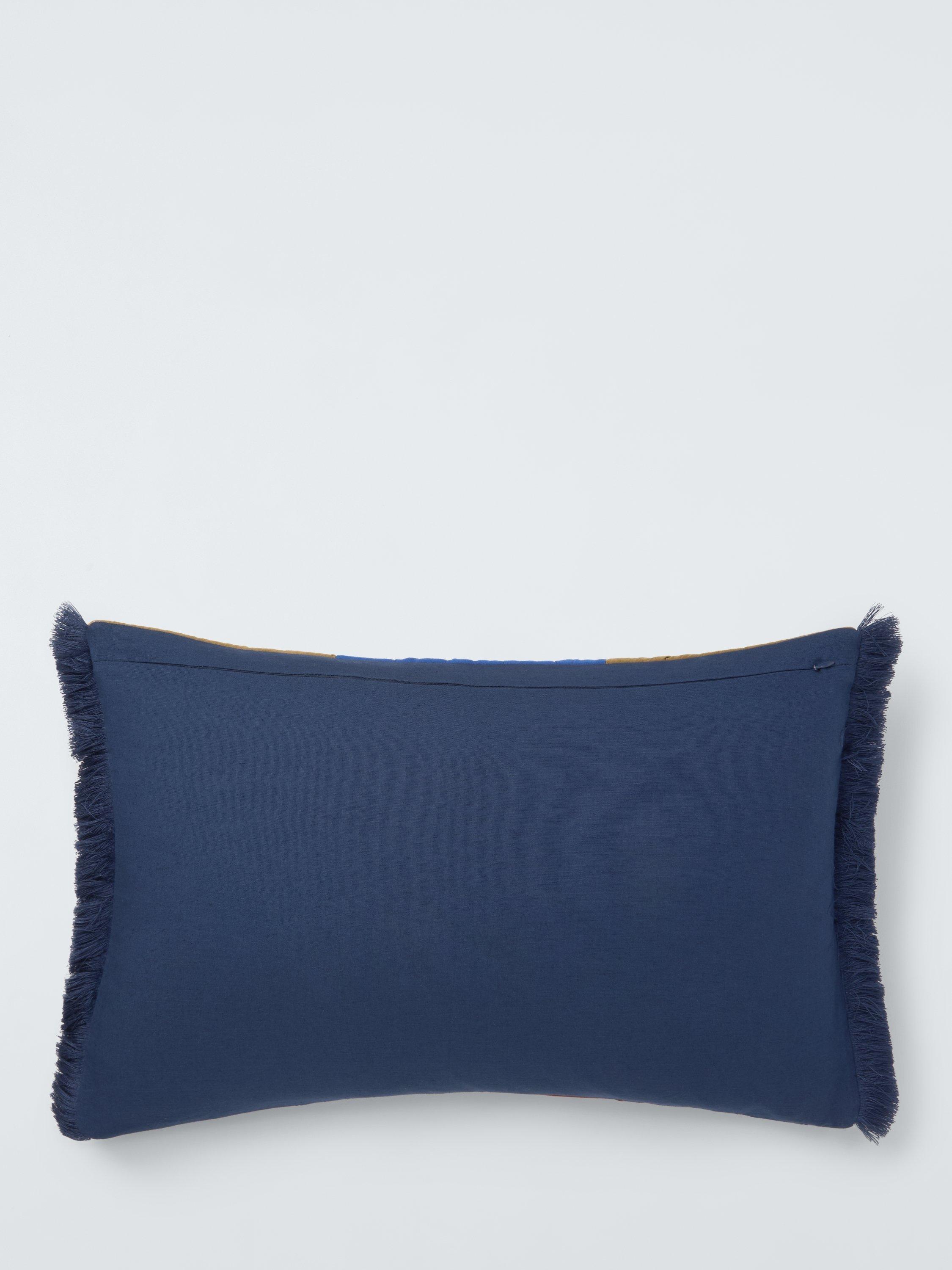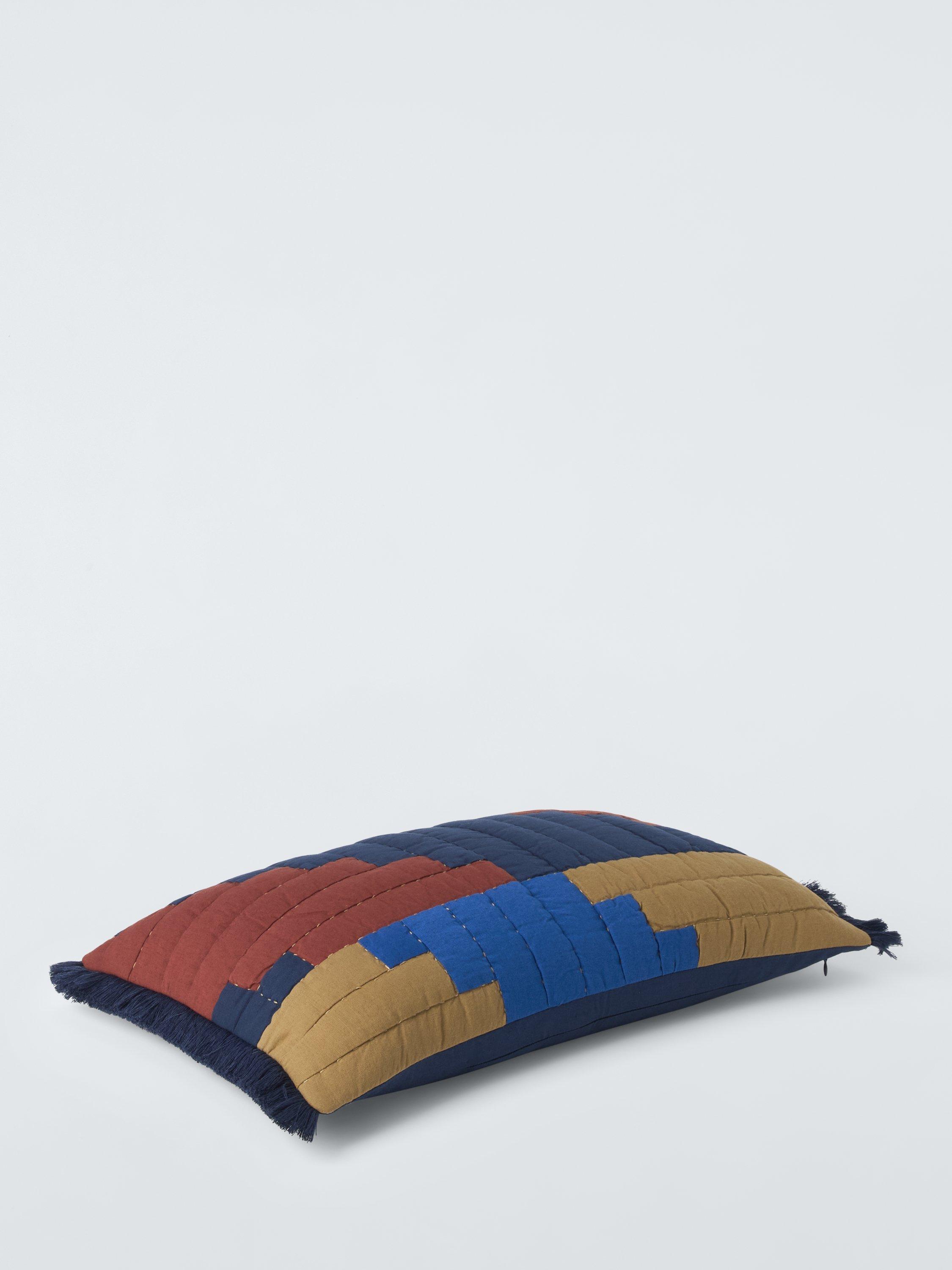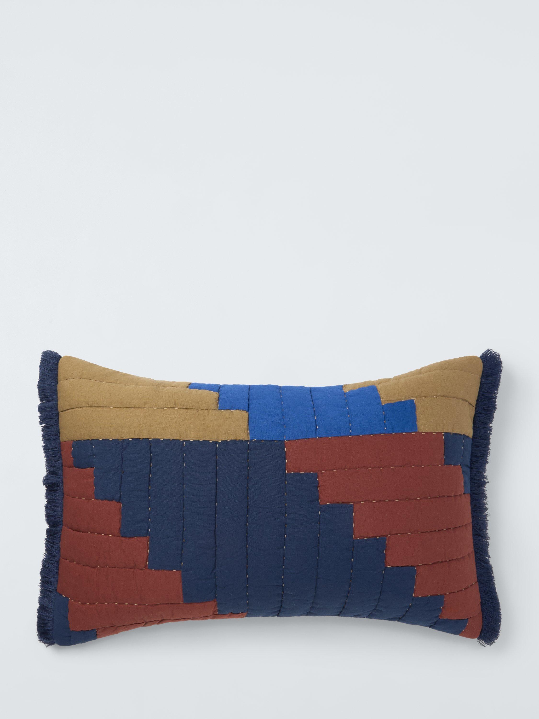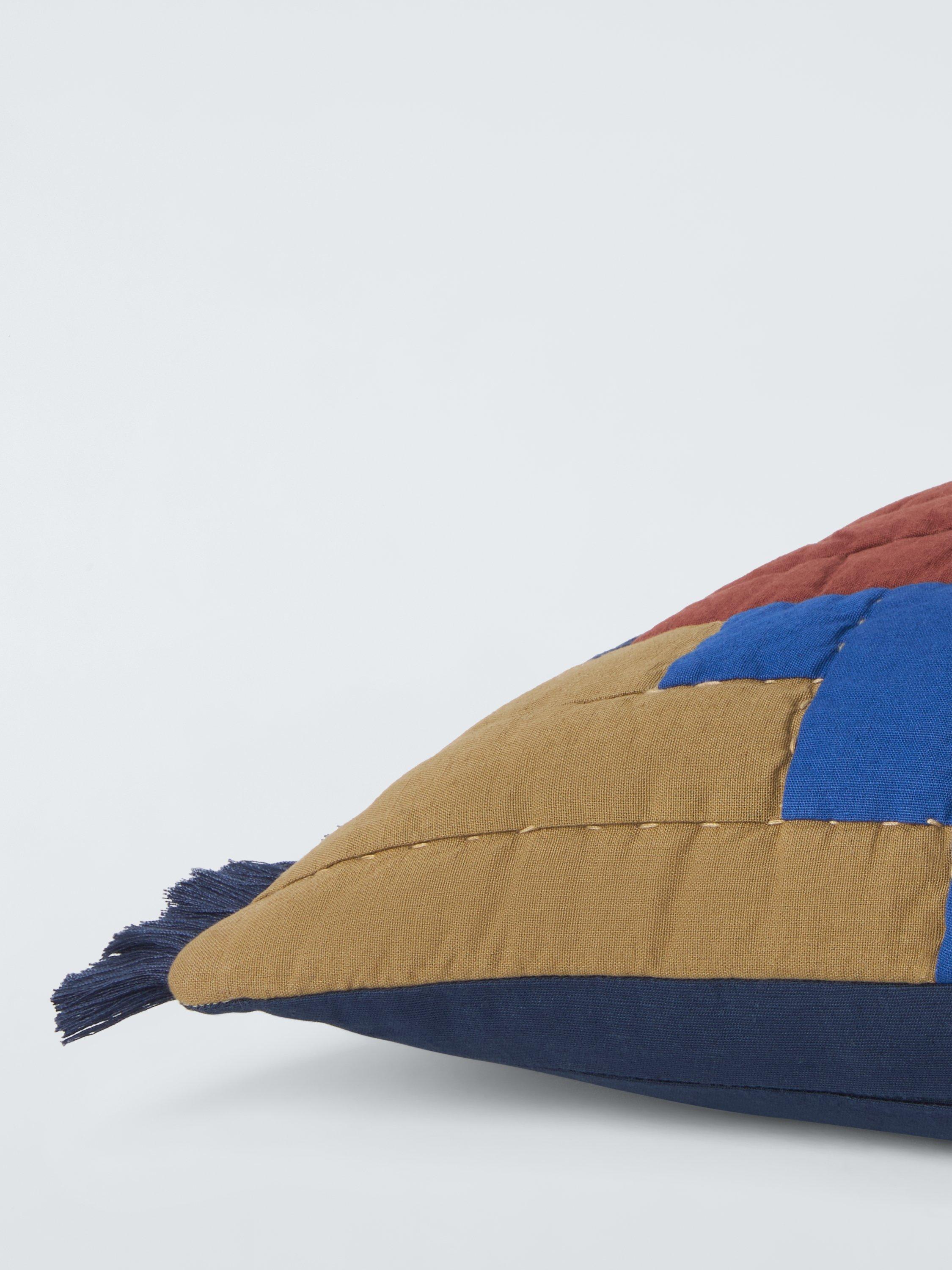 A vibrant patchwork-look cushion with blocks of co-ordinating colour.